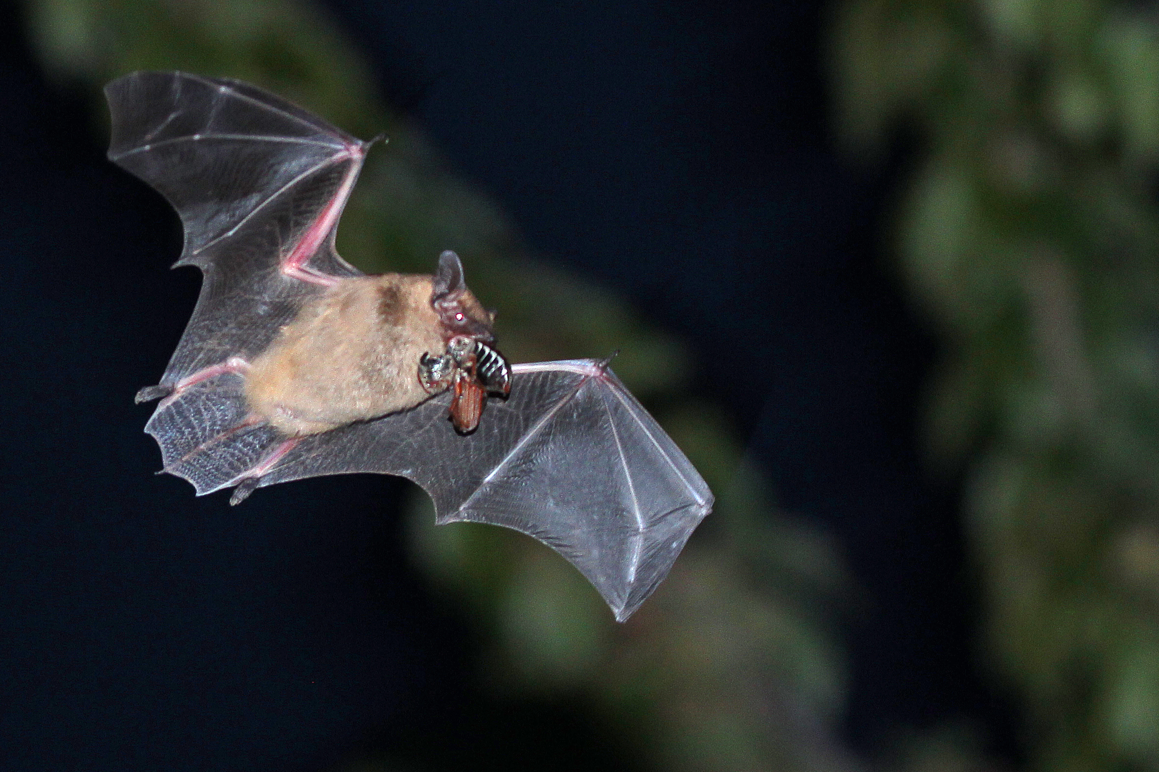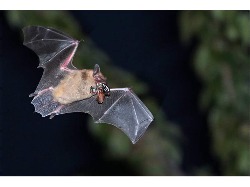 Breitflügelfledermaus mit erbeutetem Feldmaikäfer (Otterwisch, Mai 2017) (© Sven Möhring)( Bild vergrößern)