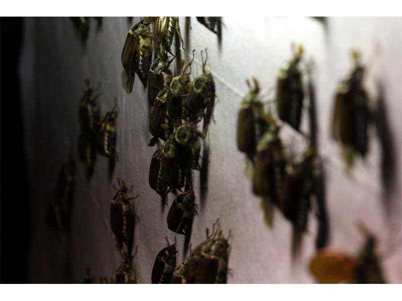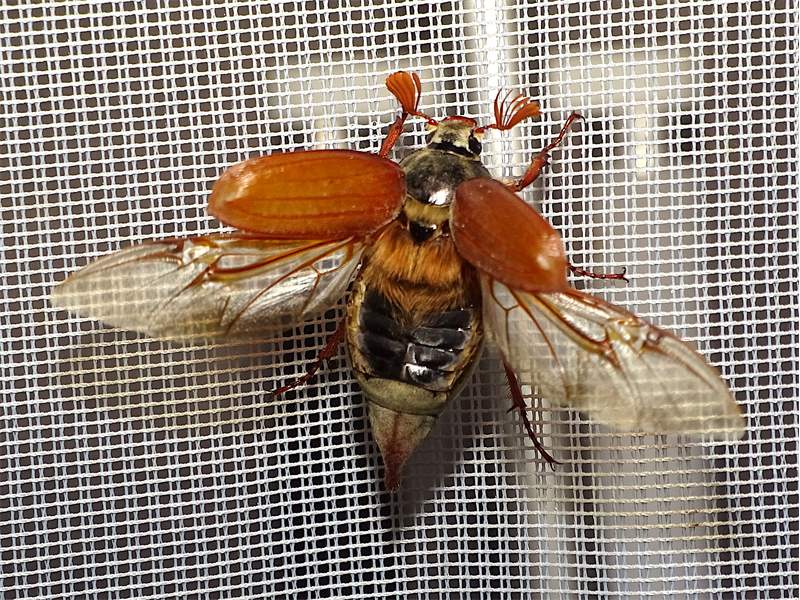 Etwa 100 Feldmaikäfer wurden nachts vom Kunstlicht angelockt. Eichert nördlich Pulsnitz, 31. Mai 2021 (© Gert Schulze)( Bild vergrößern)