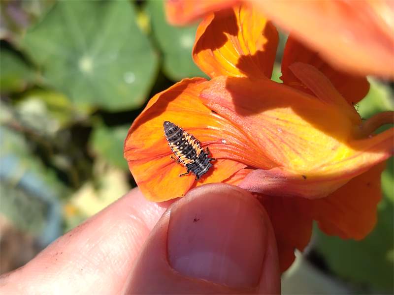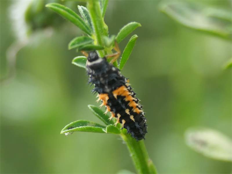 Larve des Asiatischen marienkäfers (Harmonia axyridis) in Chemnitz-Adelsberg, Anfang Juni 2017