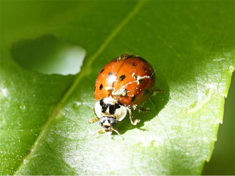 Ein frisch geschlüpfter, noch nicht ausgefärbter Asiatischer Marienkäfer im Glashütter Prießnitztal, 28.09.2011