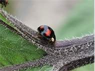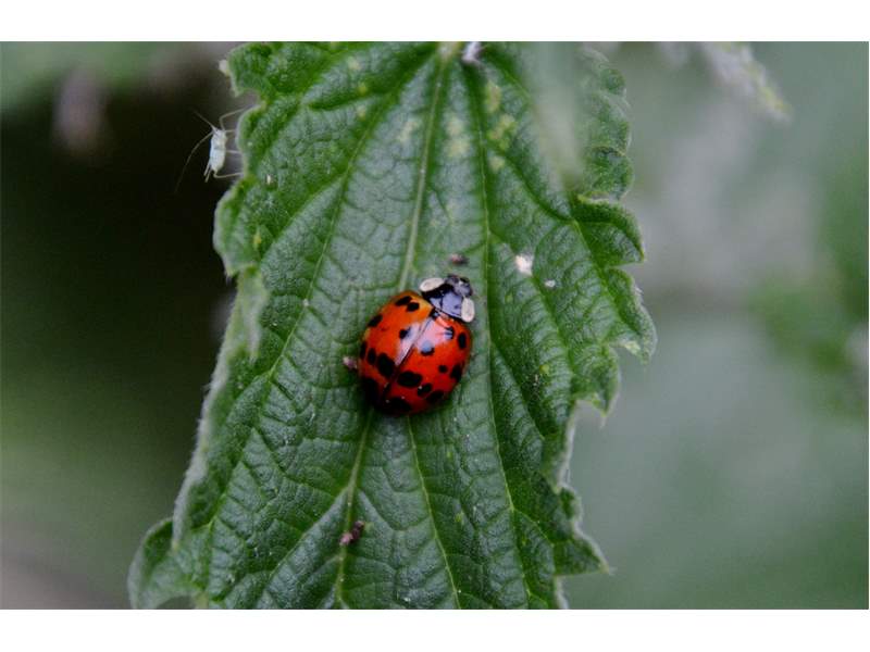Asiatischer Marienkäfer bei der Jagd auf Blattläuse. Radeberg, Juni 2008