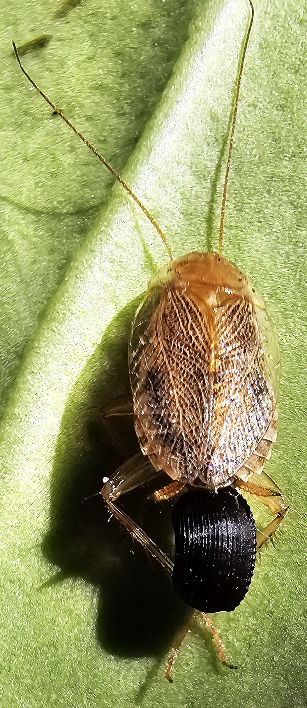 Tanger-Waldschabe Weibchen mit Eipaket (Oothek) Hausgartenfund Leipzig-Gohlis-Mitte 20. September 2025