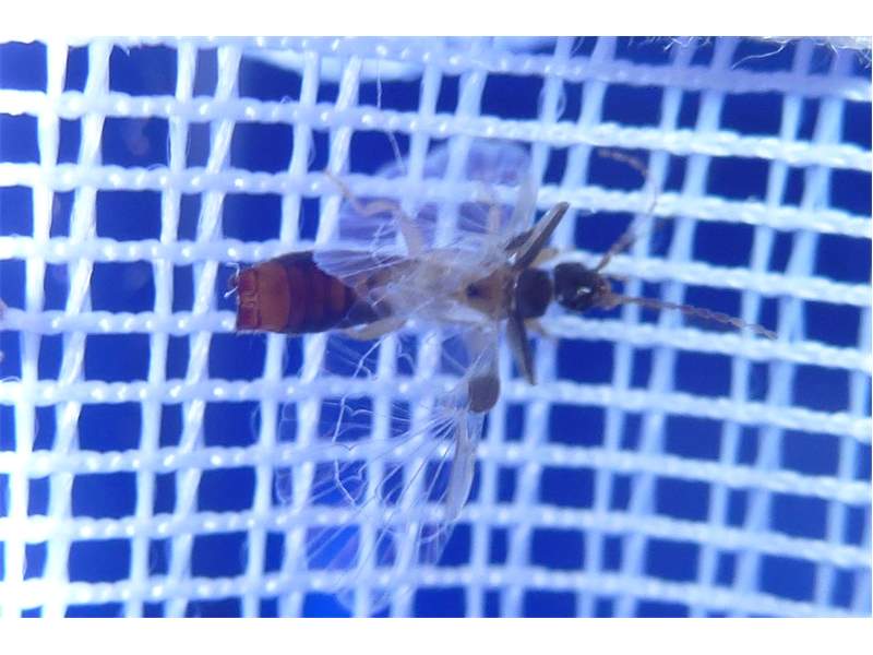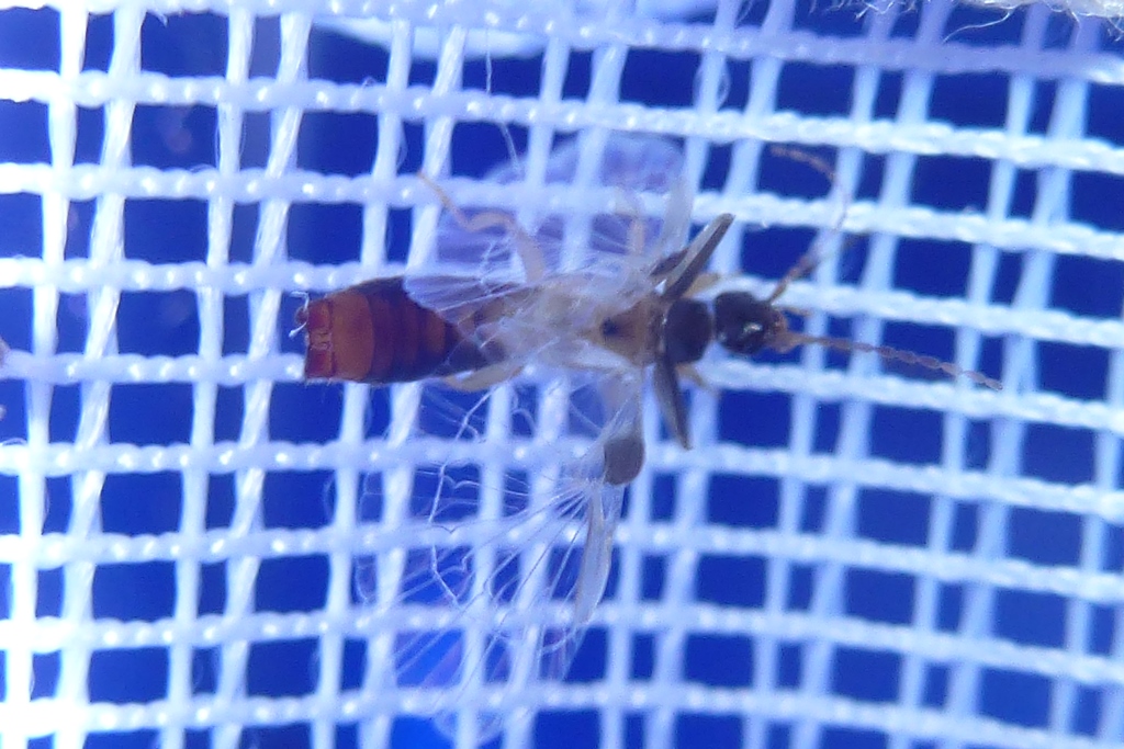 Thorax: dunkelbraun, Beine gelbbraun, beide Geschlechter mit gut ausgebildeten Hinterflügeln, die unter den kurzen Vorderflügeln eingefaltet sein.