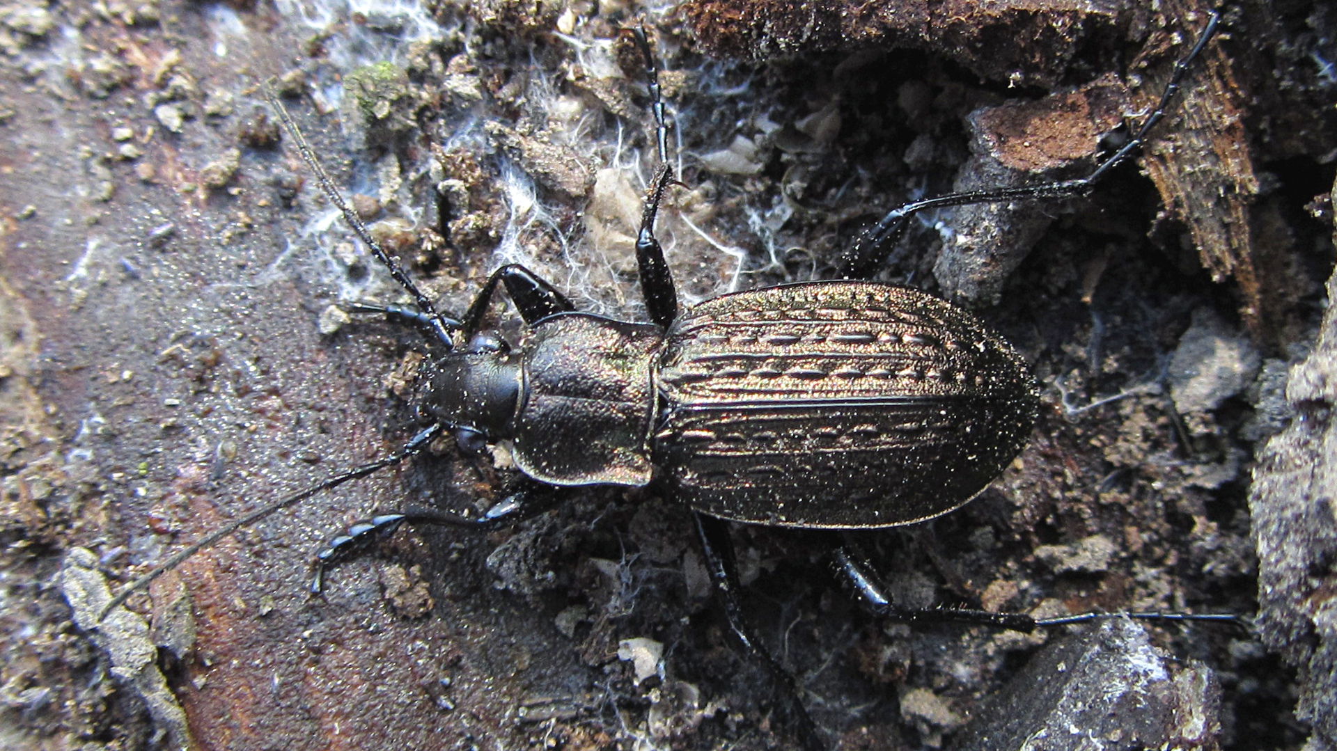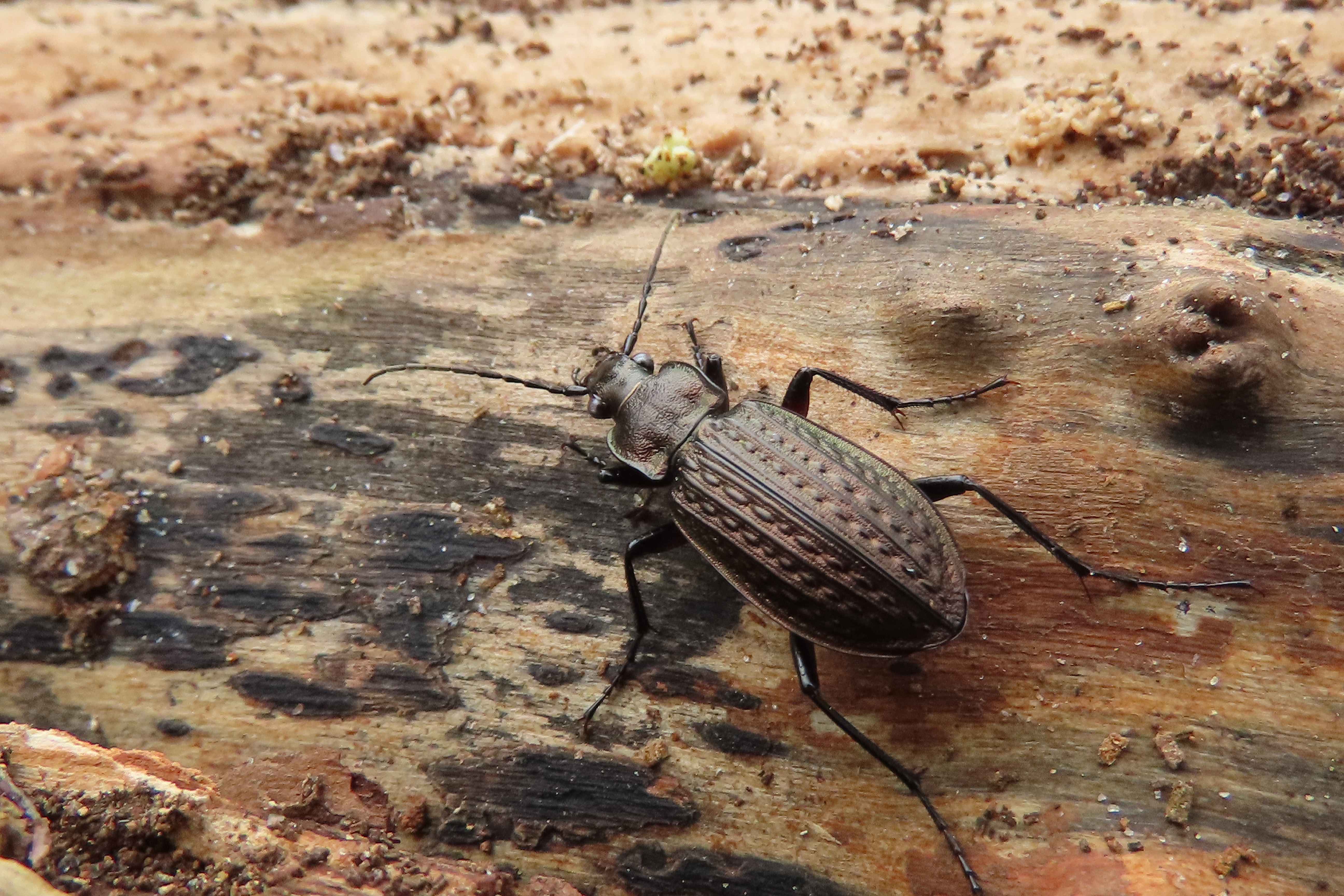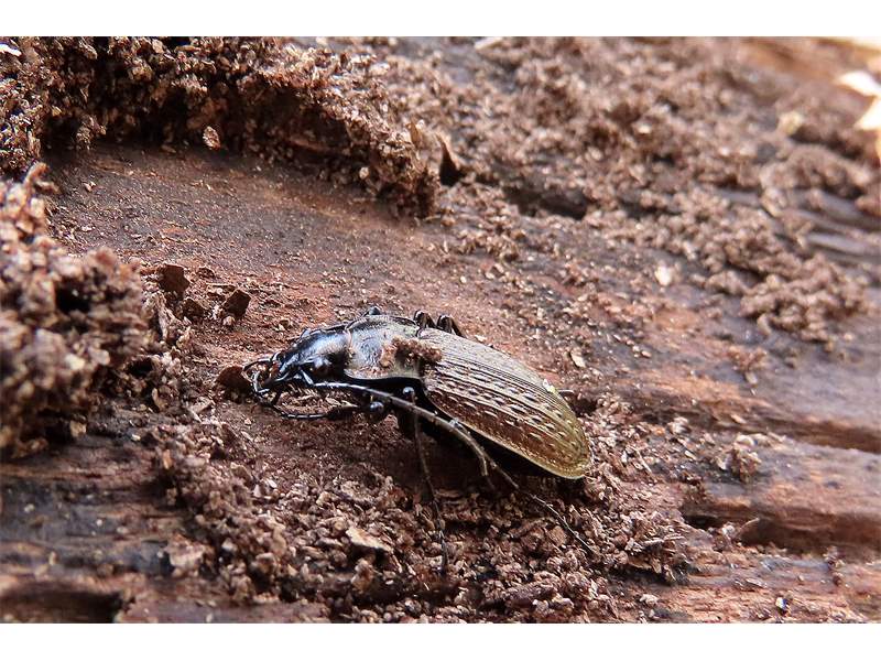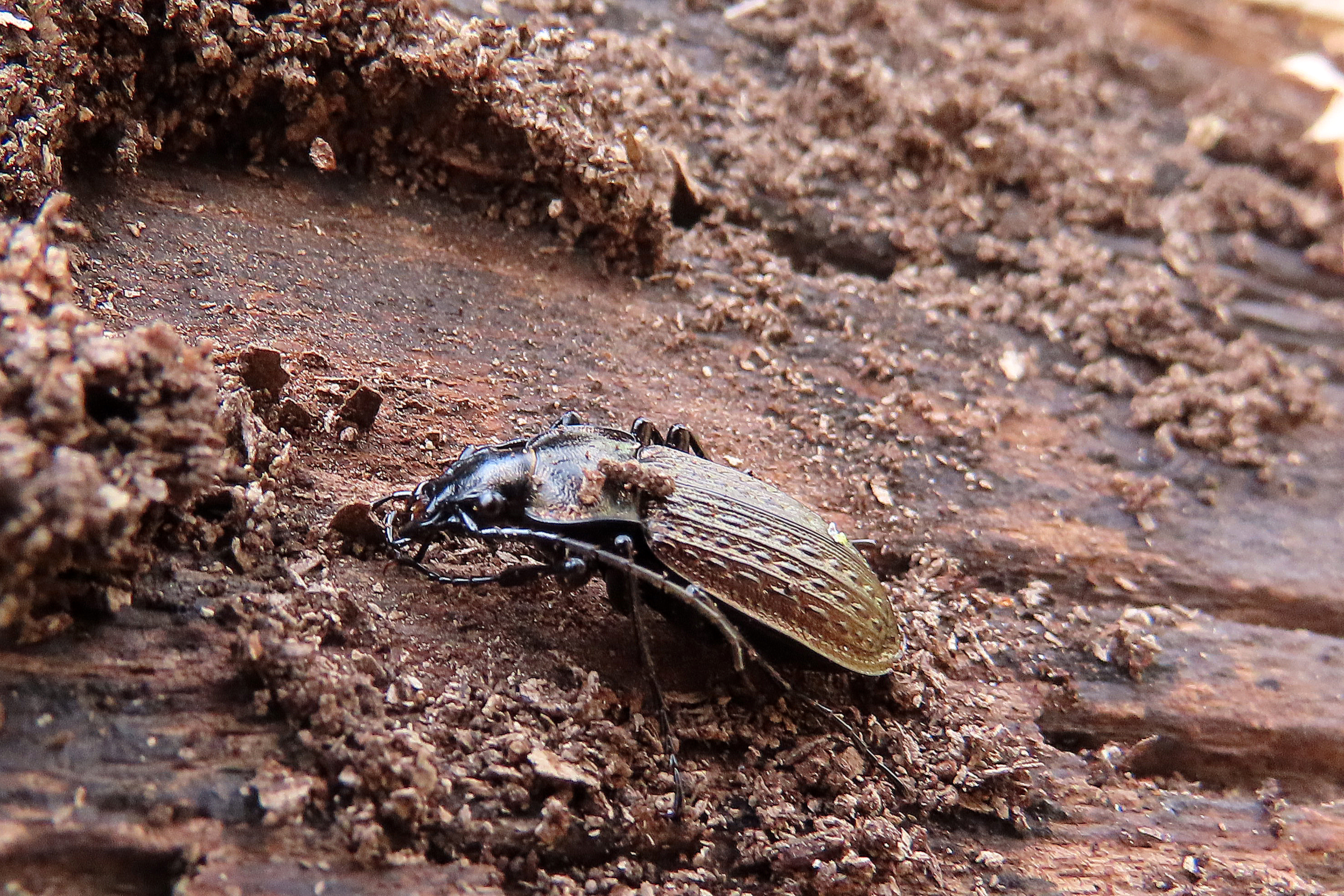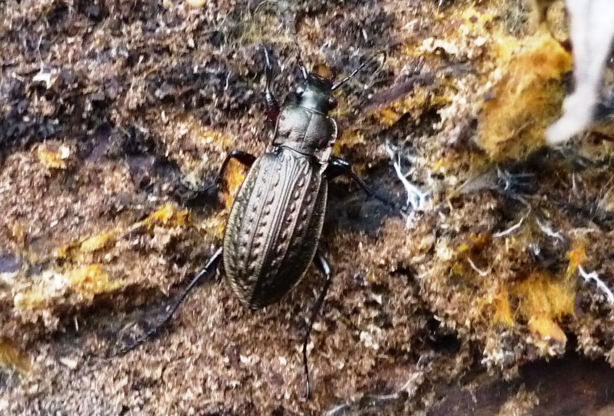 Carabus granulatus in der Gemarkung Hohenprießnitz, Muldeaue, auf vermodernden Stamm einer Flatterulme (Ulmus laevis), März 2014
