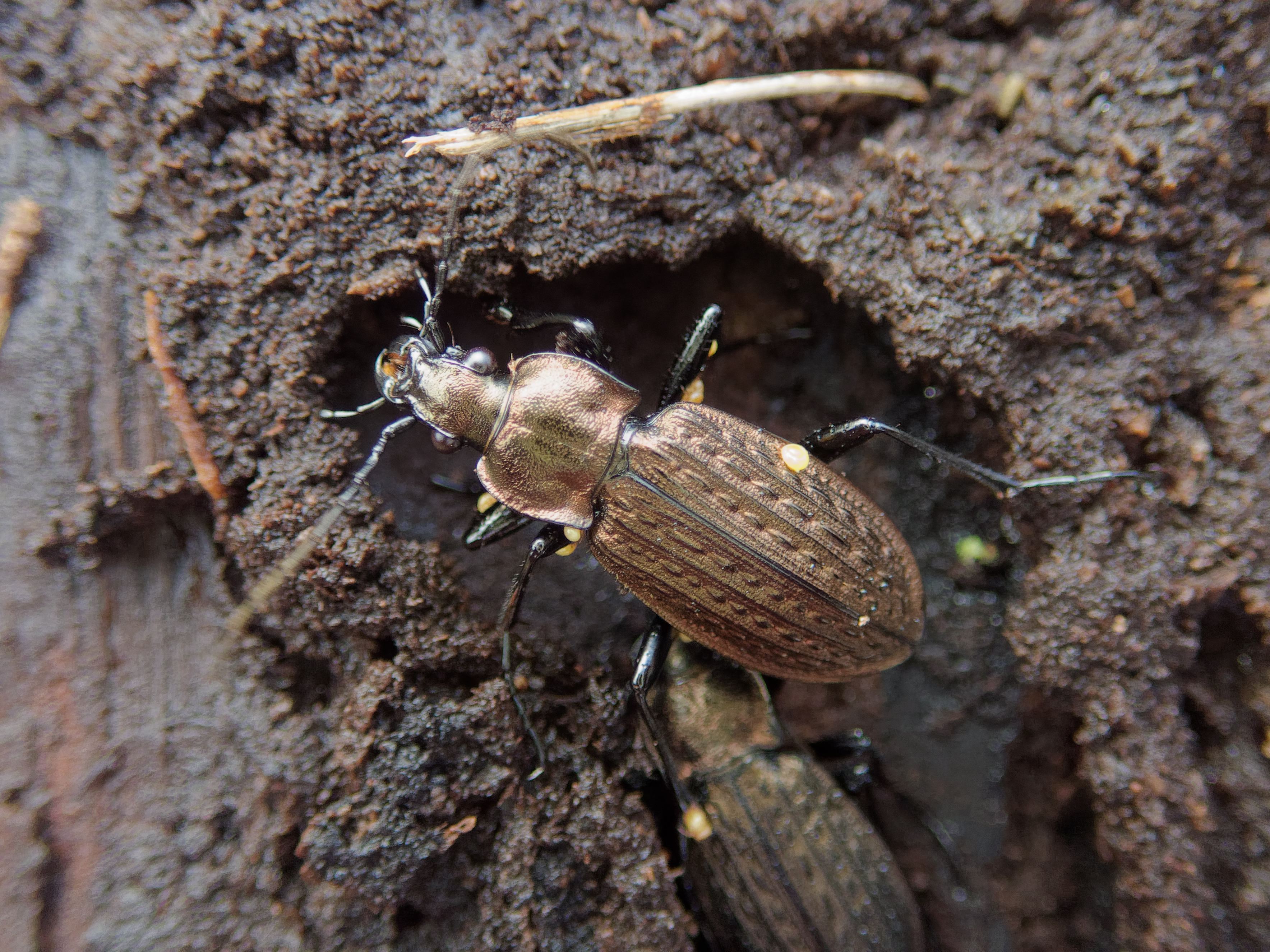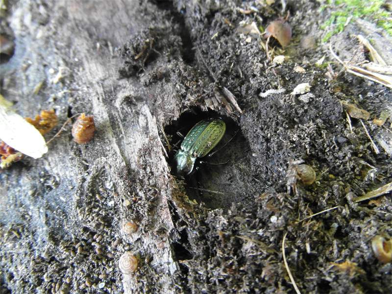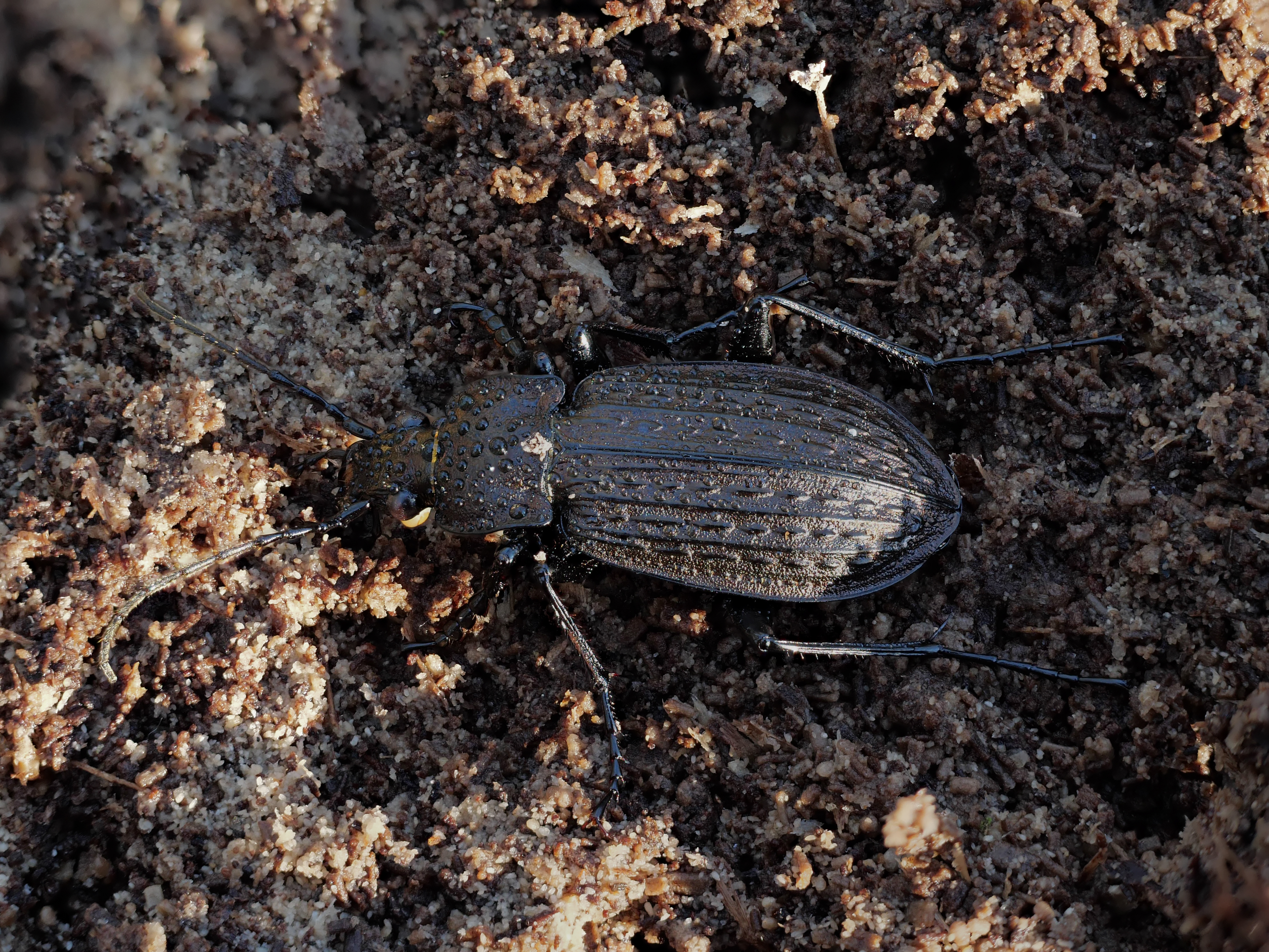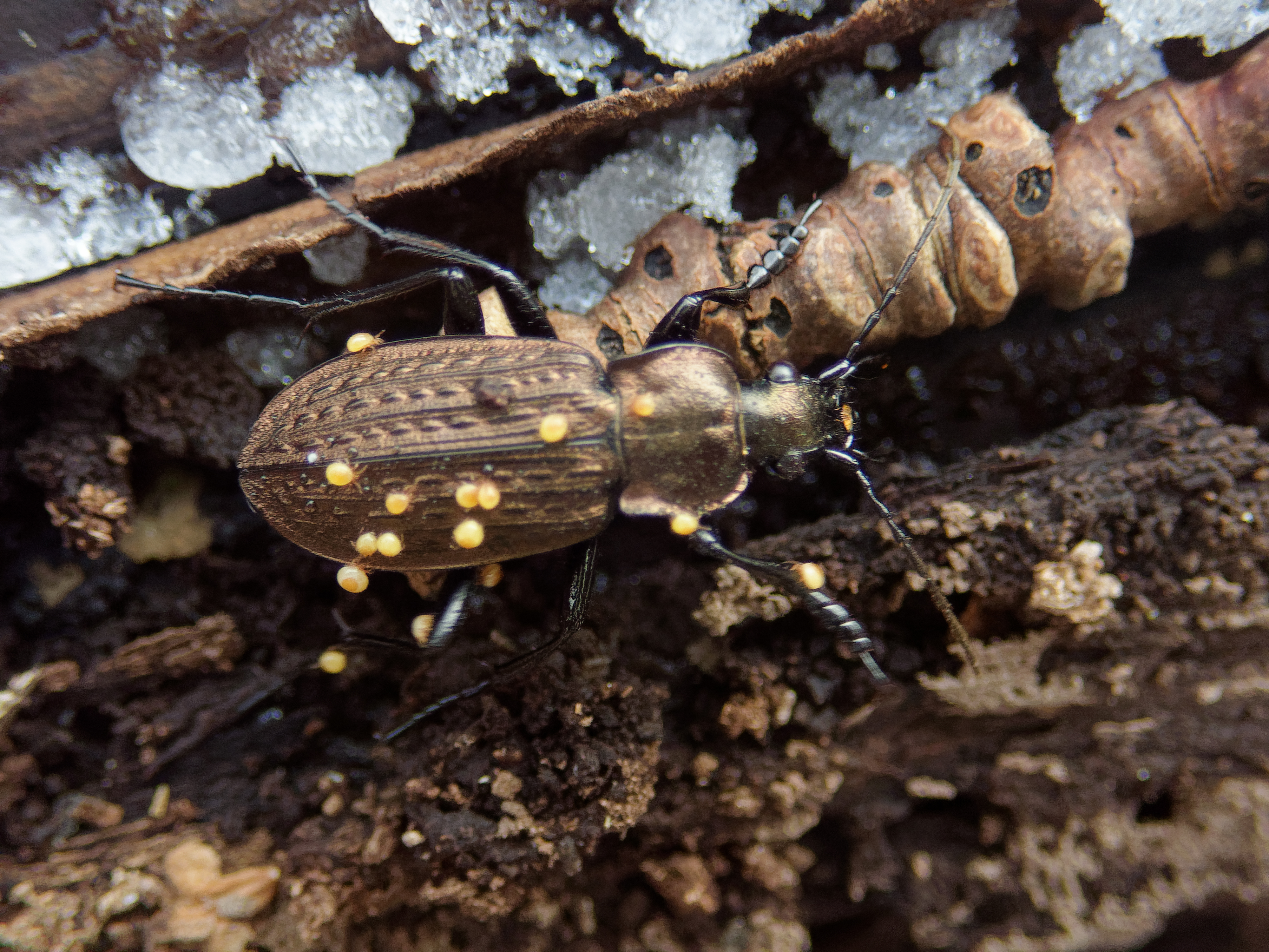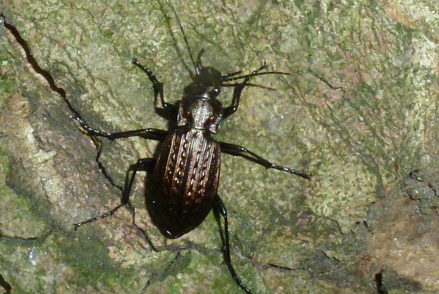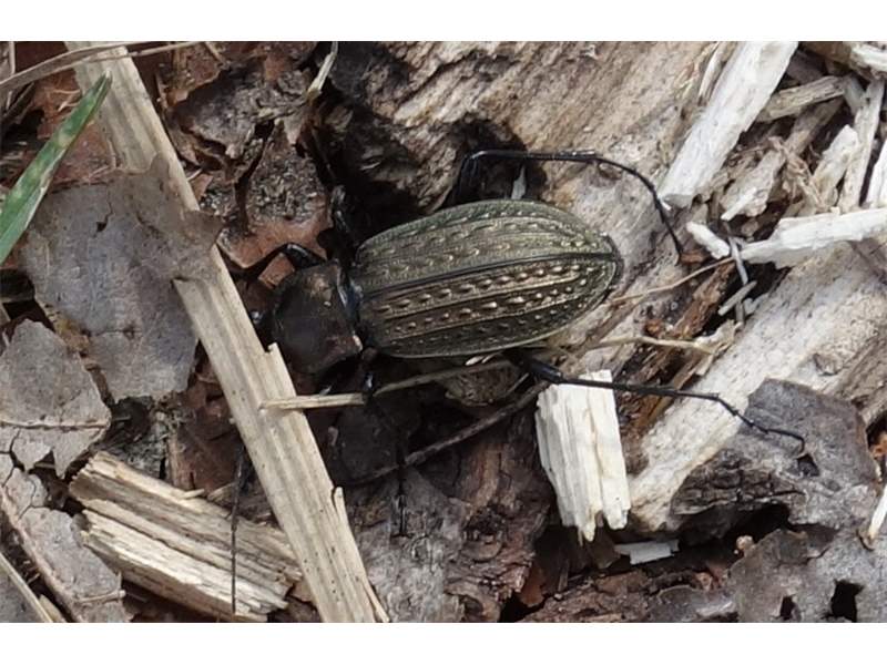 Carabus granulatus in der Gemarkung Hohenprießnitz, Muldeaue, auf vermodernden Stamm einer Flatterulme (Ulmus laevis), März 2014