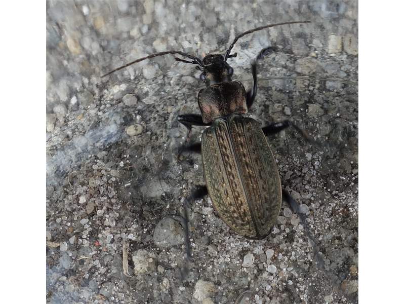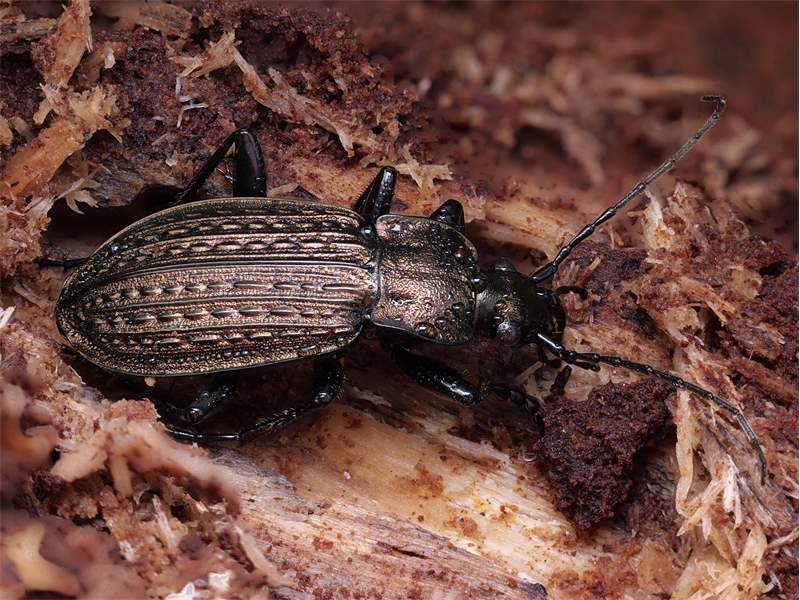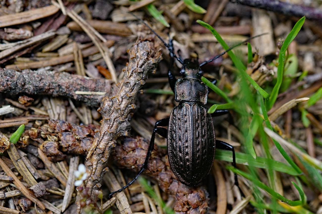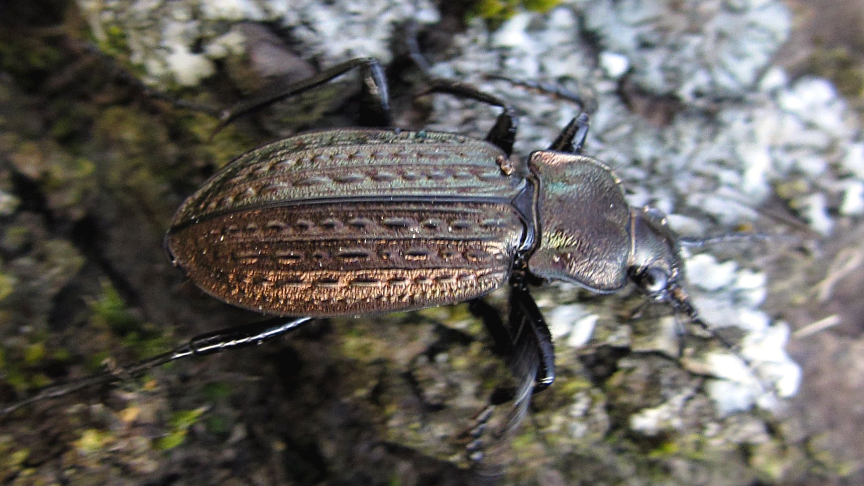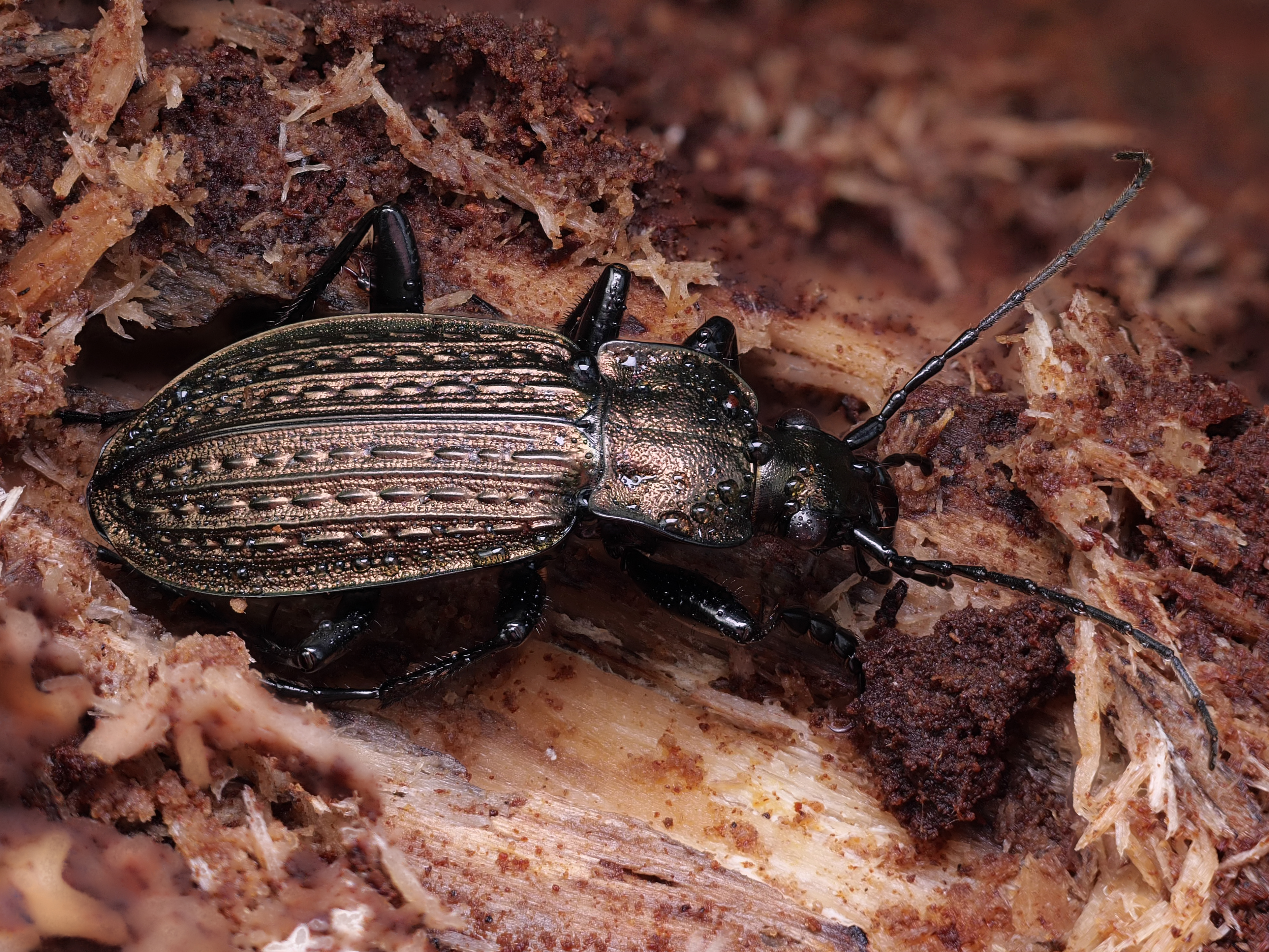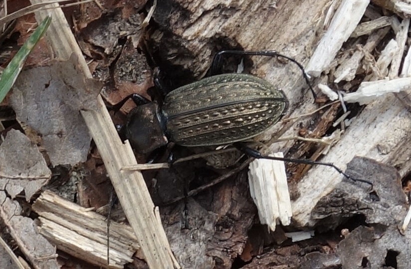 Carabus granulatus in der Gemarkung Hohenprießnitz, Muldeaue, auf vermodernden Stamm einer Flatterulme (Ulmus laevis), März 2014