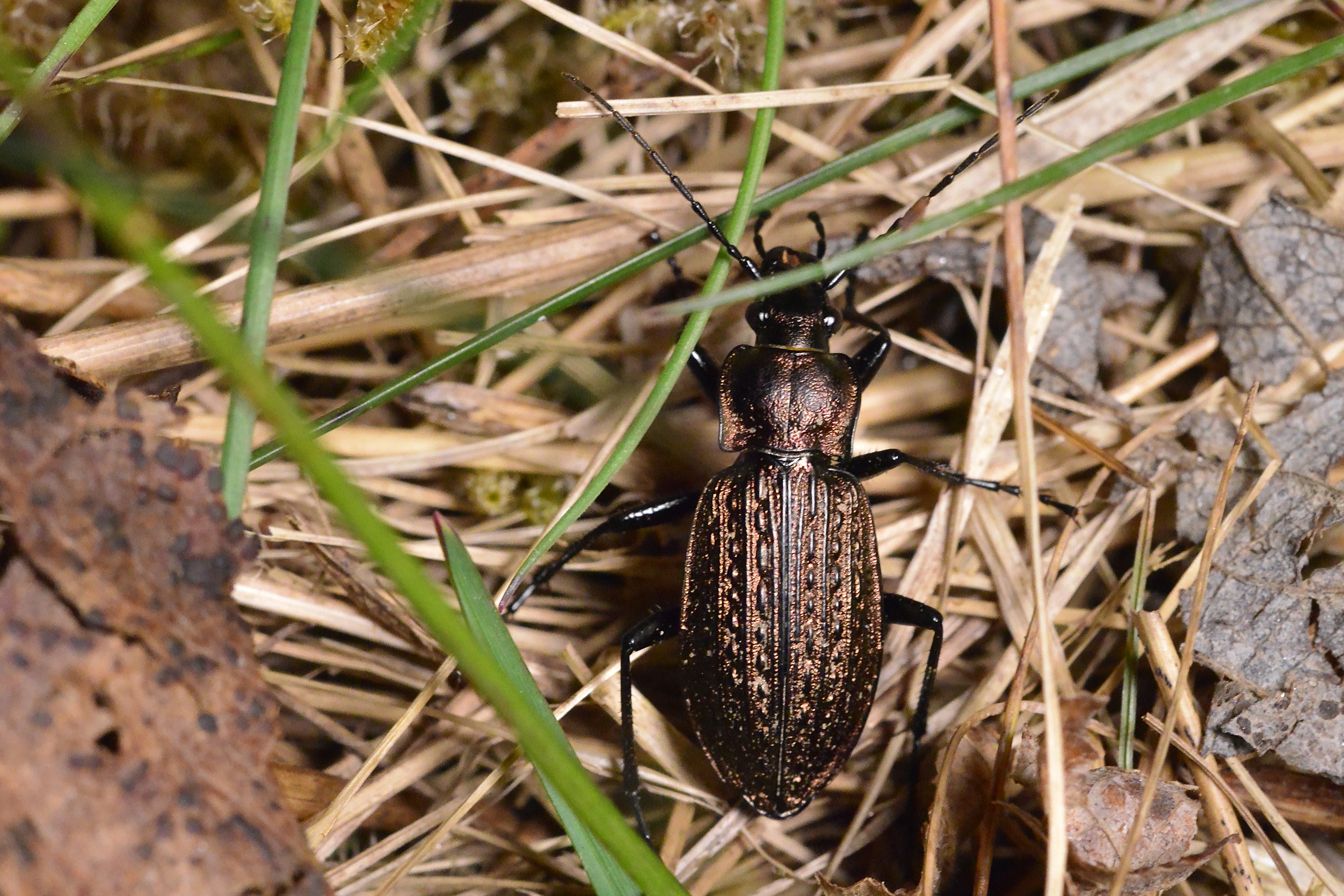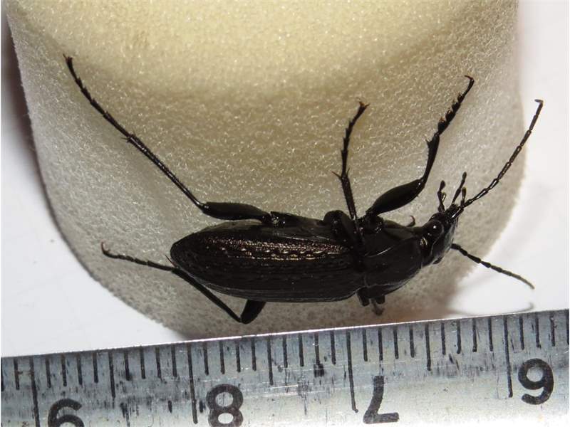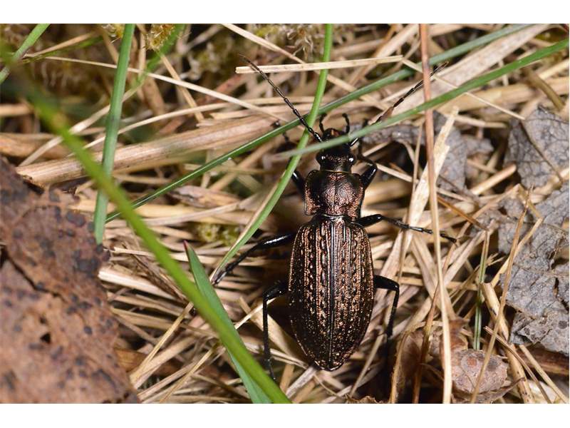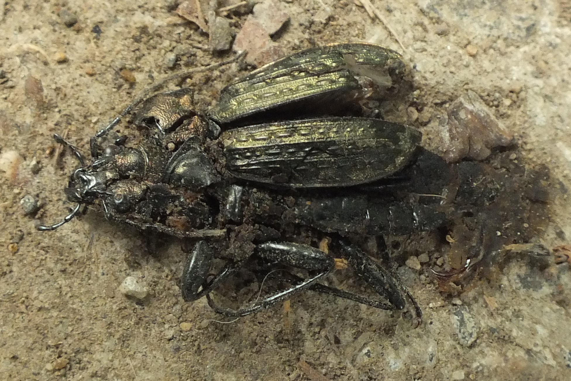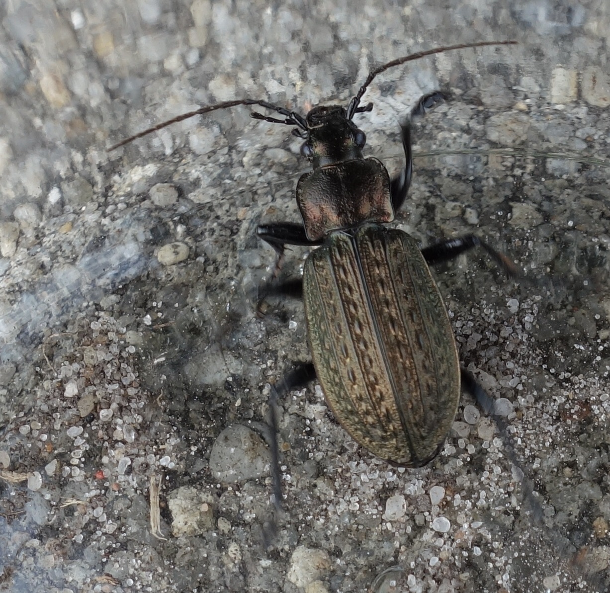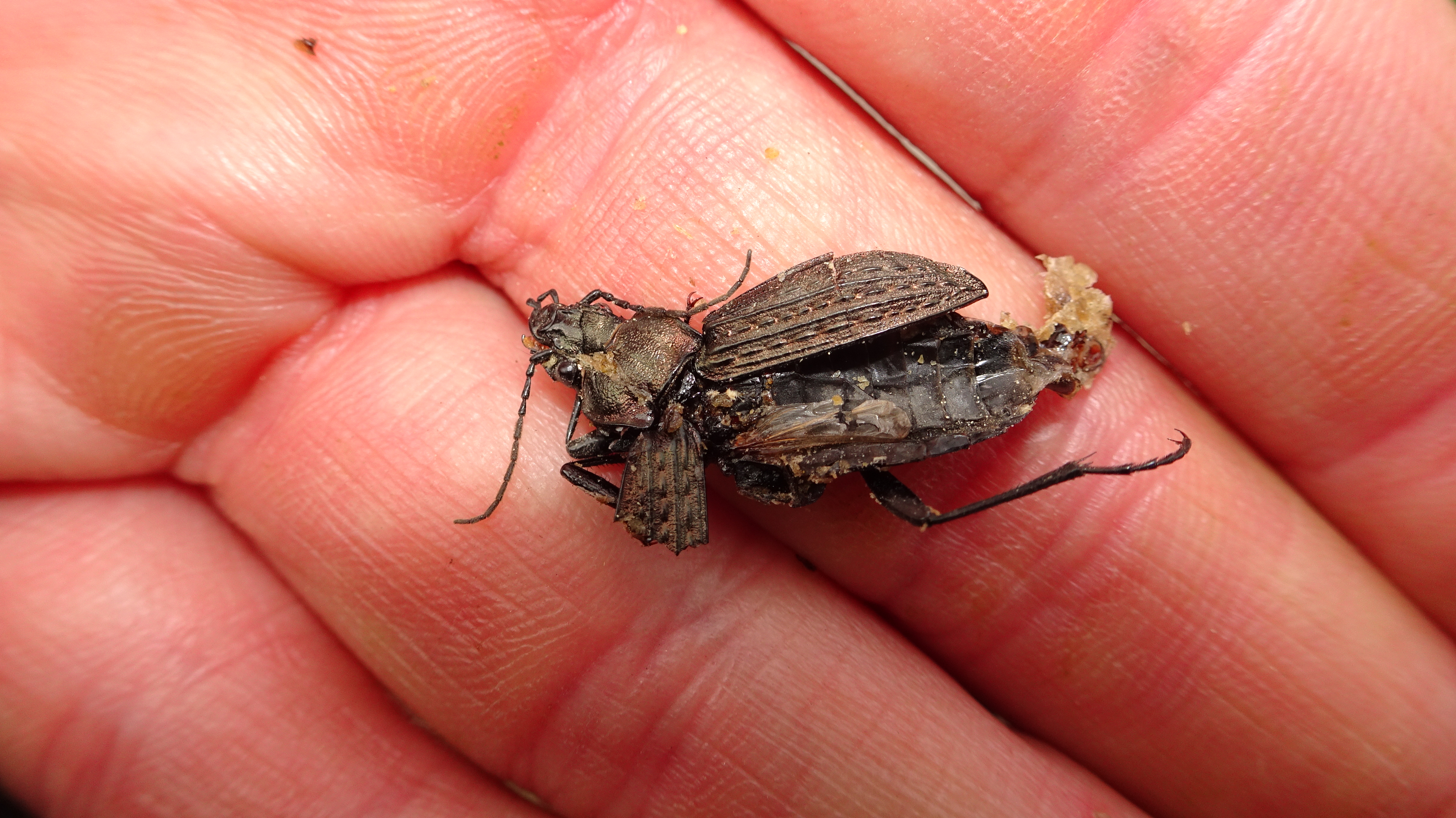 Carabus granulatus in der Gemarkung Hohenprießnitz, Muldeaue, auf vermodernden Stamm einer Flatterulme (Ulmus laevis), März 2014