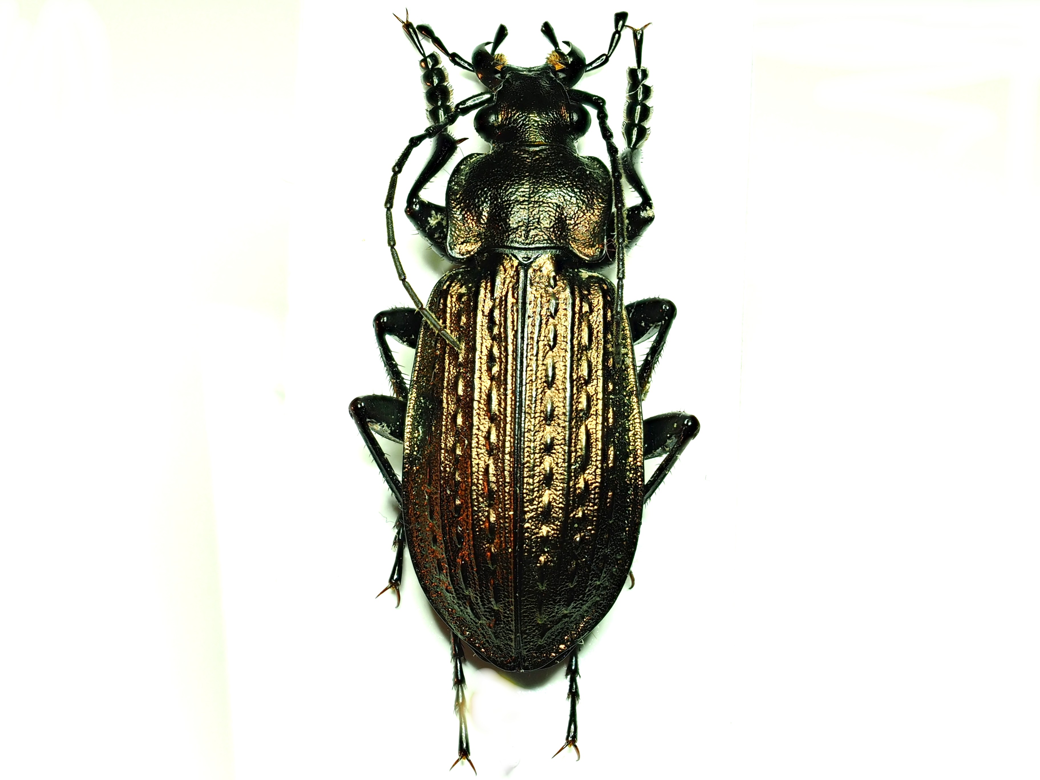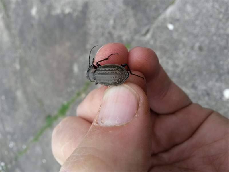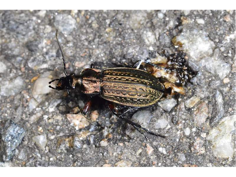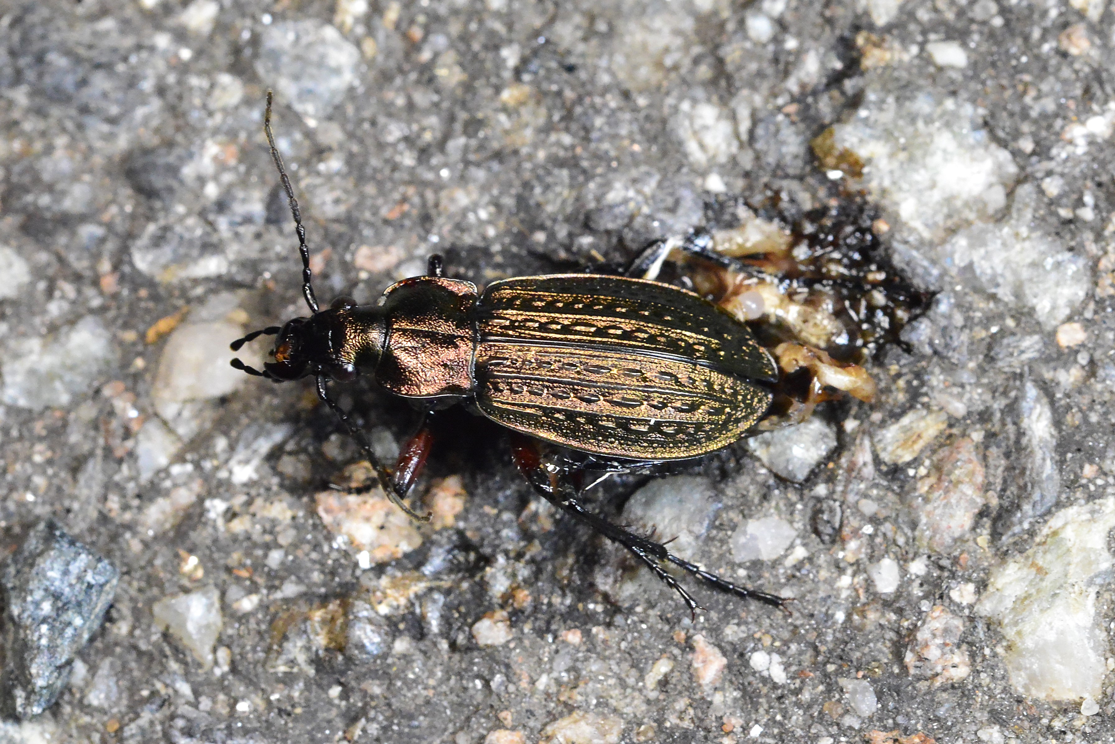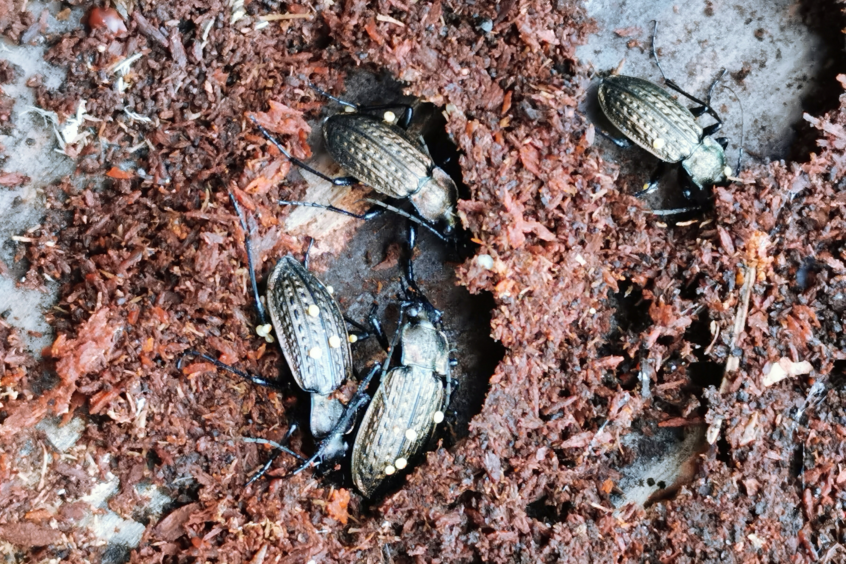 Carabus granulatus in der Gemarkung Hohenprießnitz, Muldeaue, auf vermodernden Stamm einer Flatterulme (Ulmus laevis), März 2014