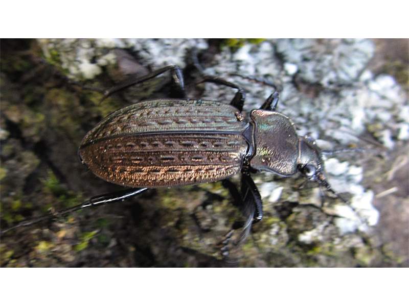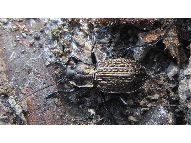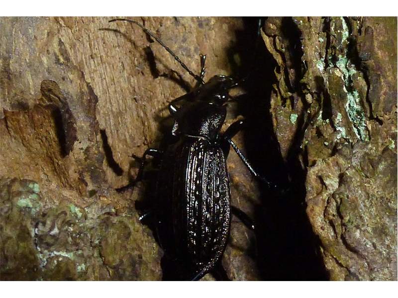 Carabus granulatus in der Gemarkung Hohenprießnitz, Muldeaue, auf vermodernden Stamm einer Flatterulme (Ulmus laevis), März 2014 (© Michael Happ)( Bild vergrößern)