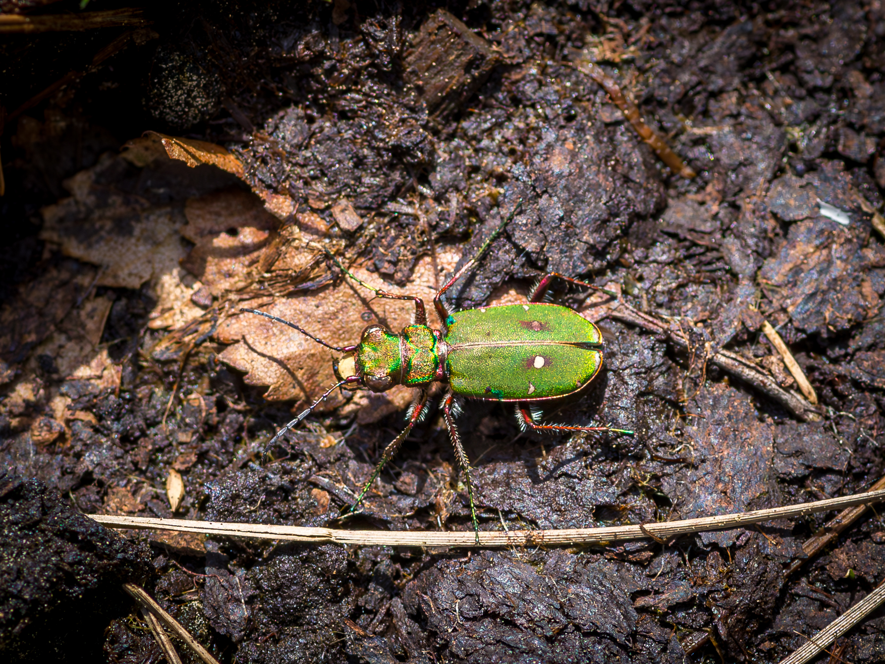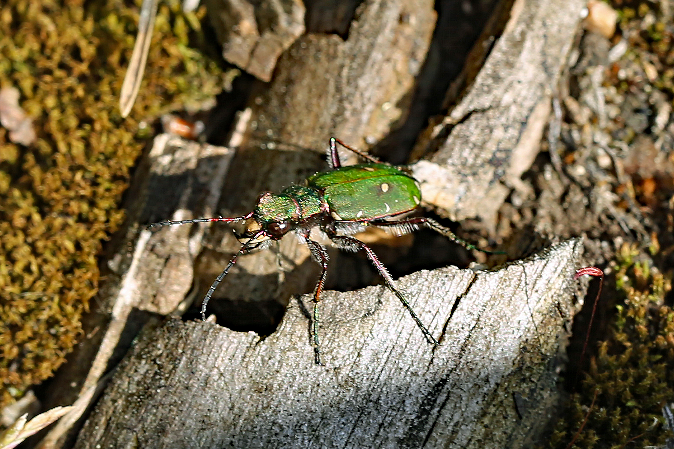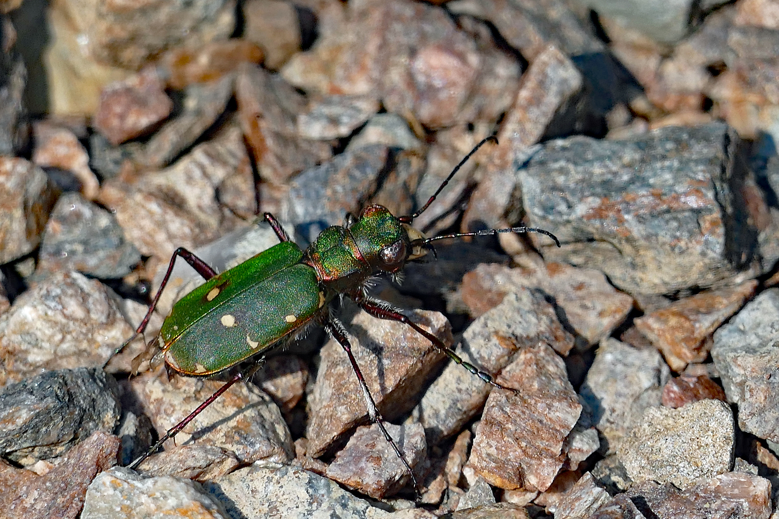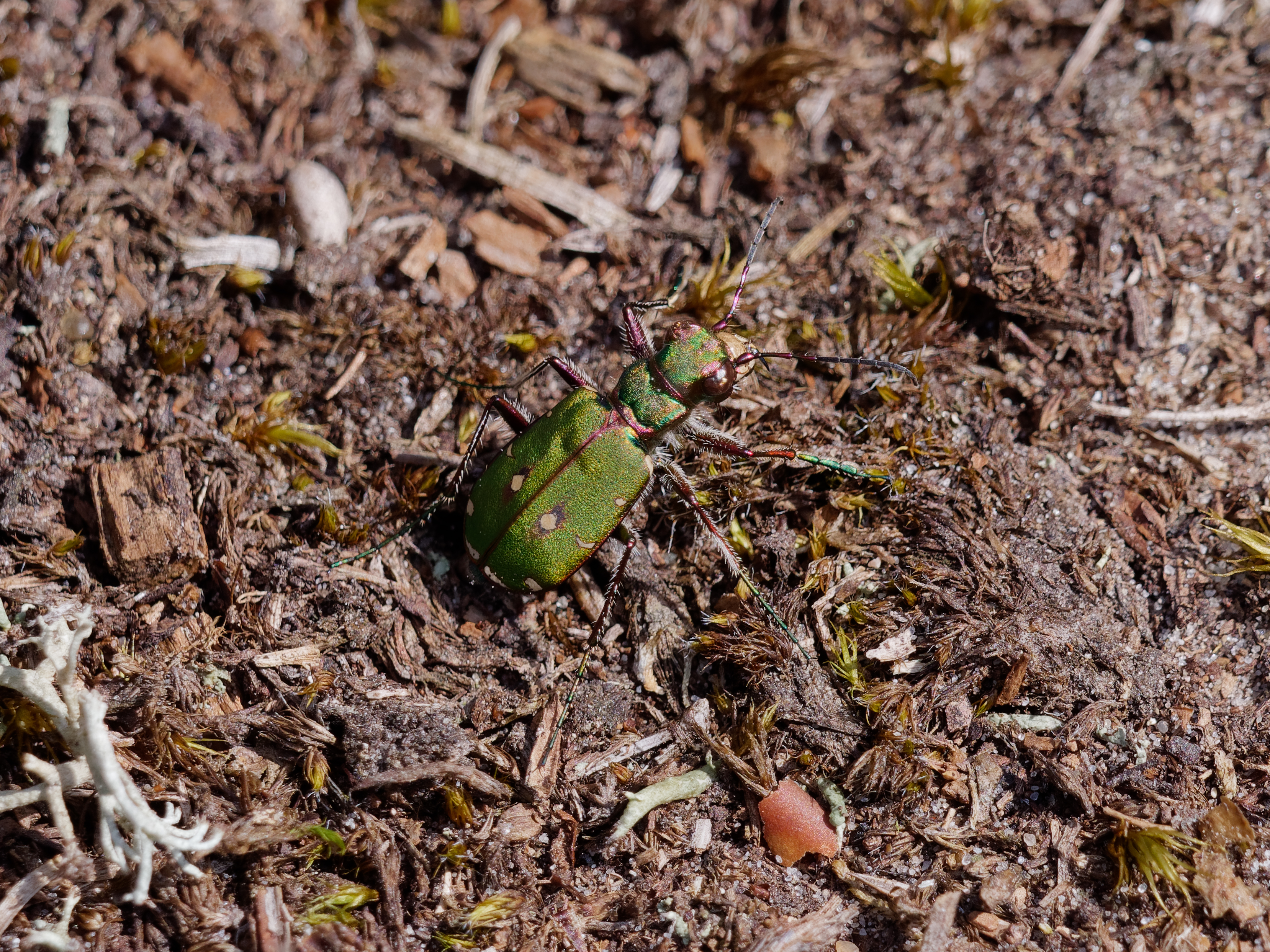 Cicindela campestris in den Pyrenäen, El'Alta Ribagorca, bei Espot, Provinz Lleida, Katalonien, Spanien, Juni 2016, Höhe: 2524