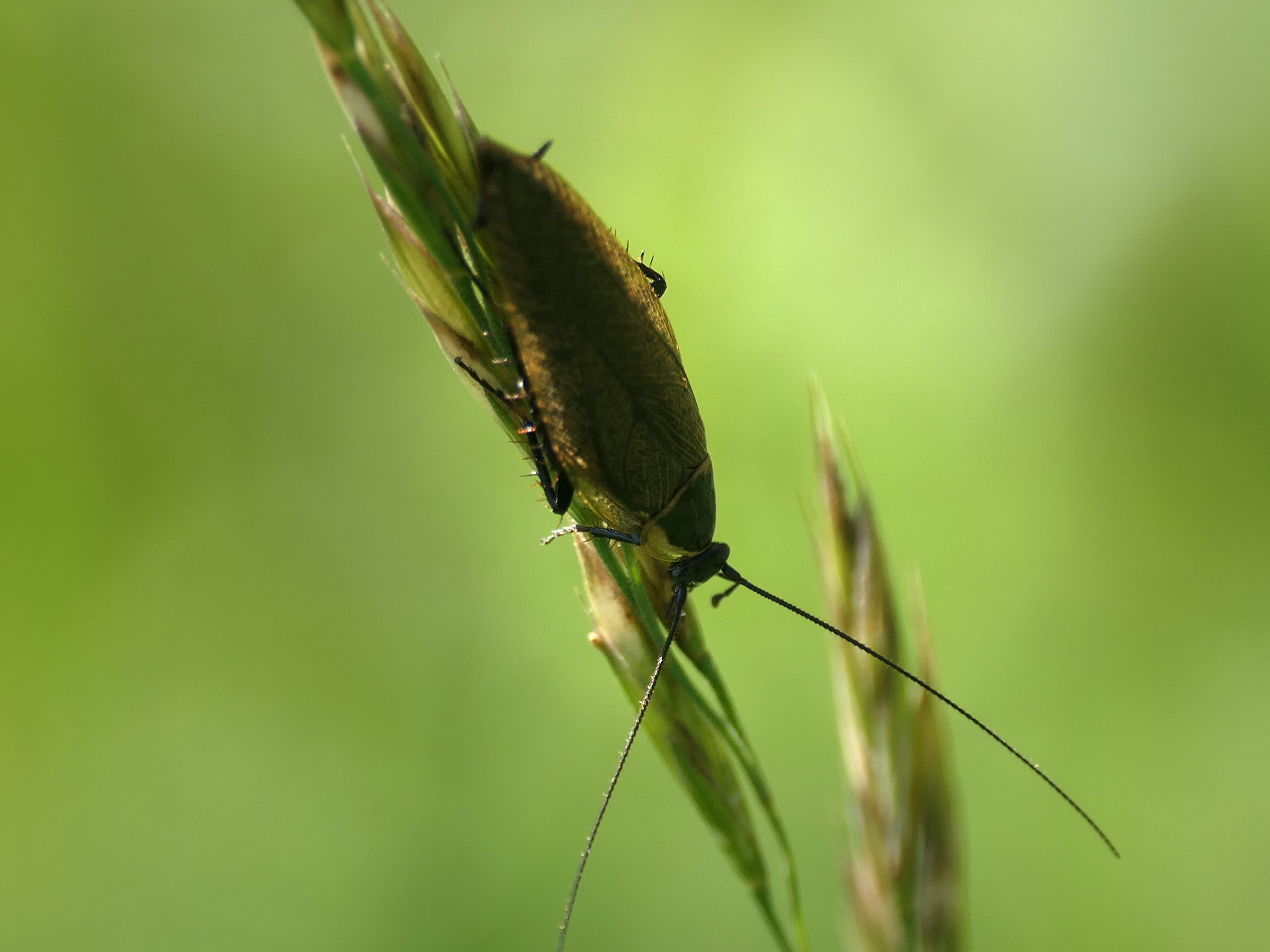 Ectobius sylvestris an Meum athamanticum, bei Grumbach, Schmetterlingswiese 1246-002, 05.06.2017