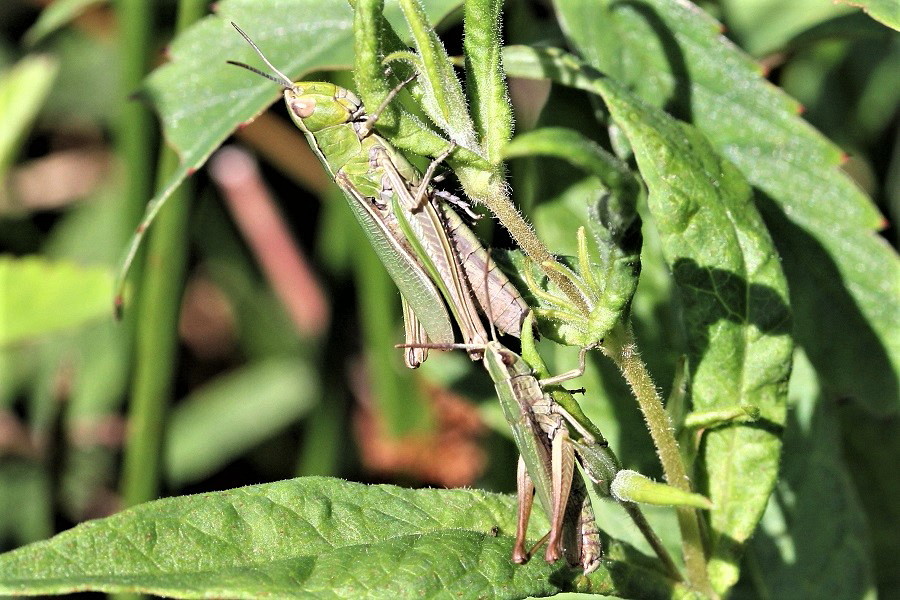 Pärchen des Weißrandigen grashüpfers in den Leutersbacher Teichen, August 2017
