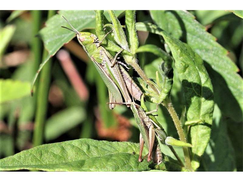 Pärchen des Weißrandigen grashüpfers in den Leutersbacher Teichen, August 2017 (© Joachim Kupfer)( Bild vergrößern)