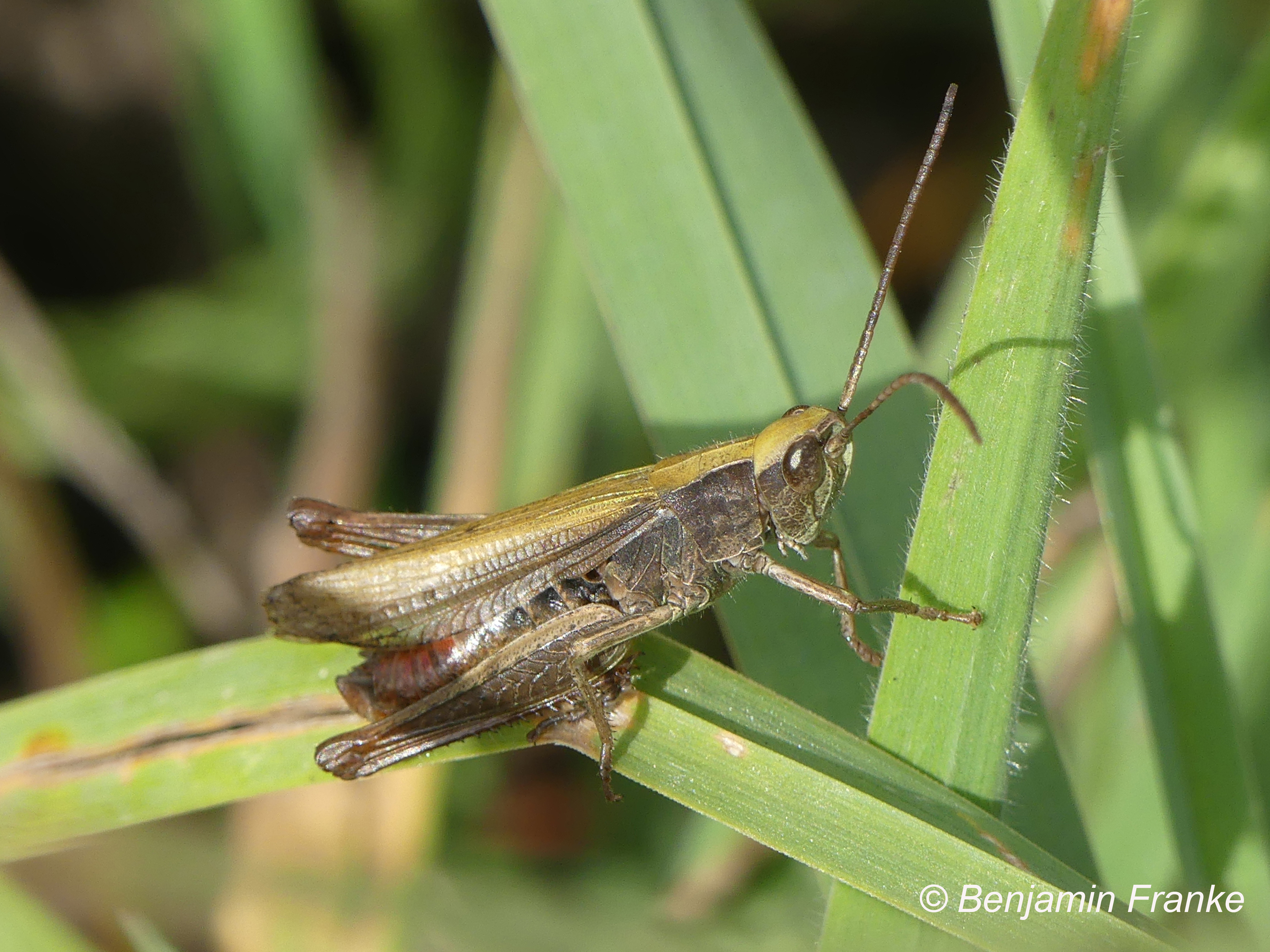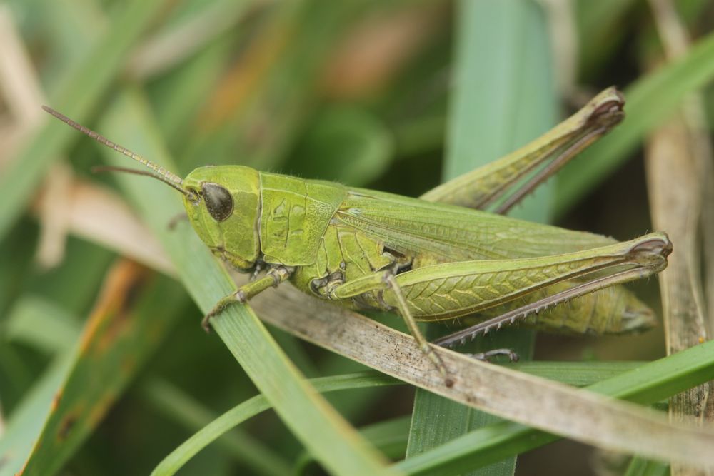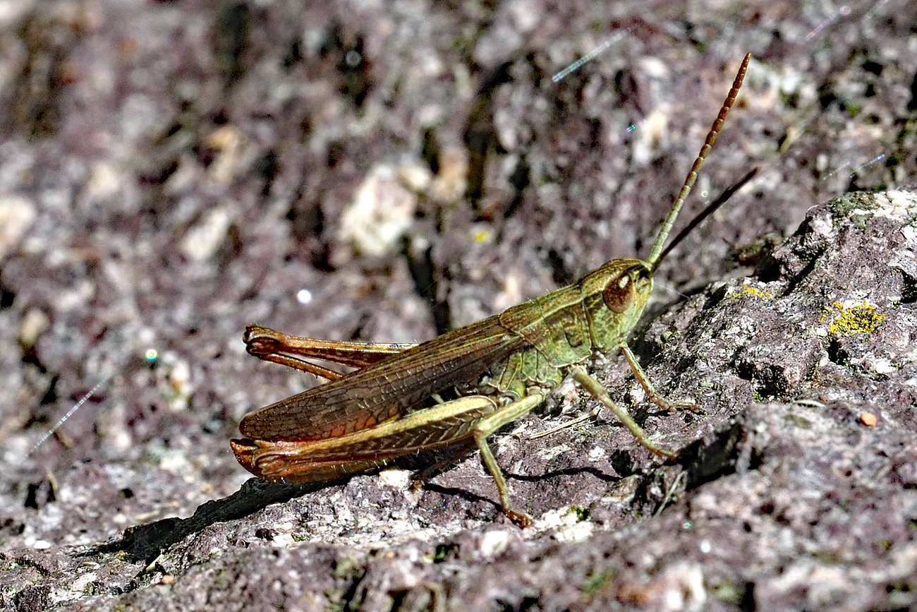 Männchen des Wiesengrashüpfers am 21.08.2019 im Forstbotanischen Garten Tharandt.