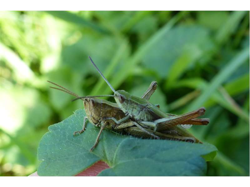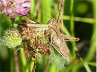 Kontaktlaute zweier Männchen von Chorthippus dorsatus, welche in