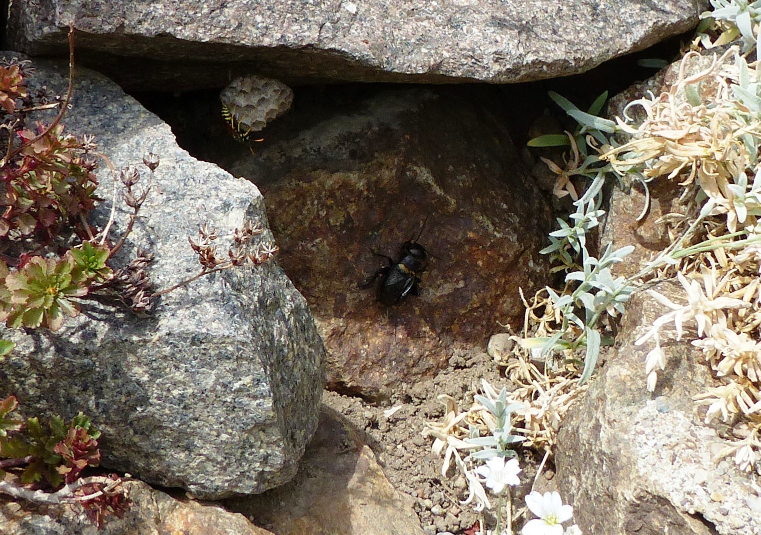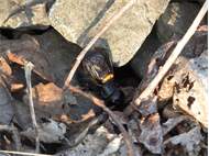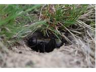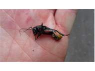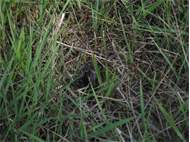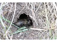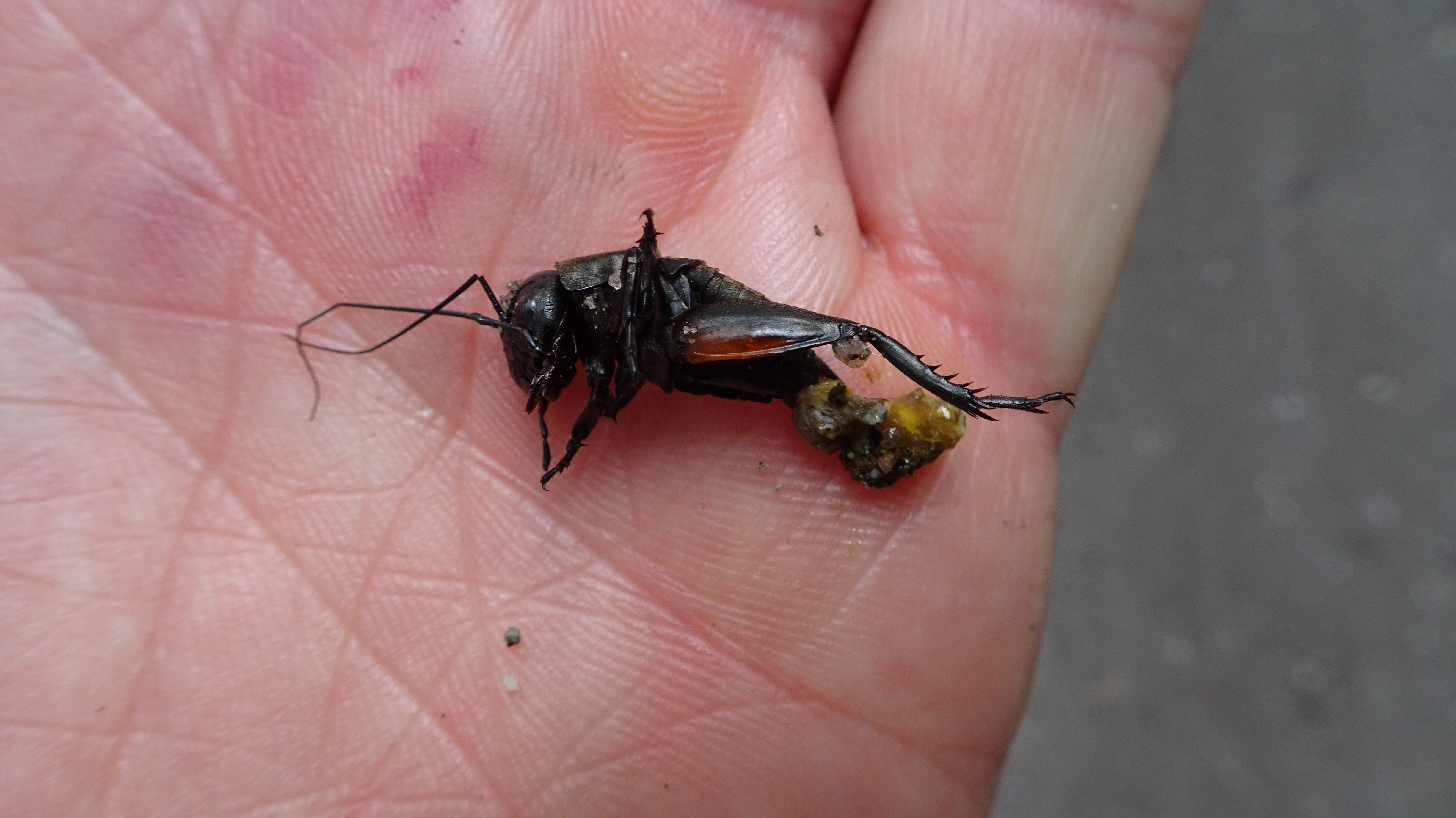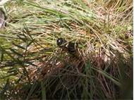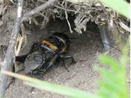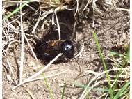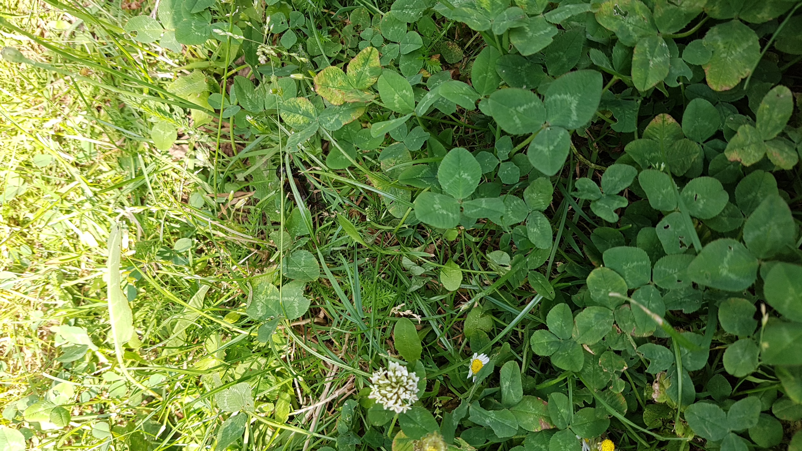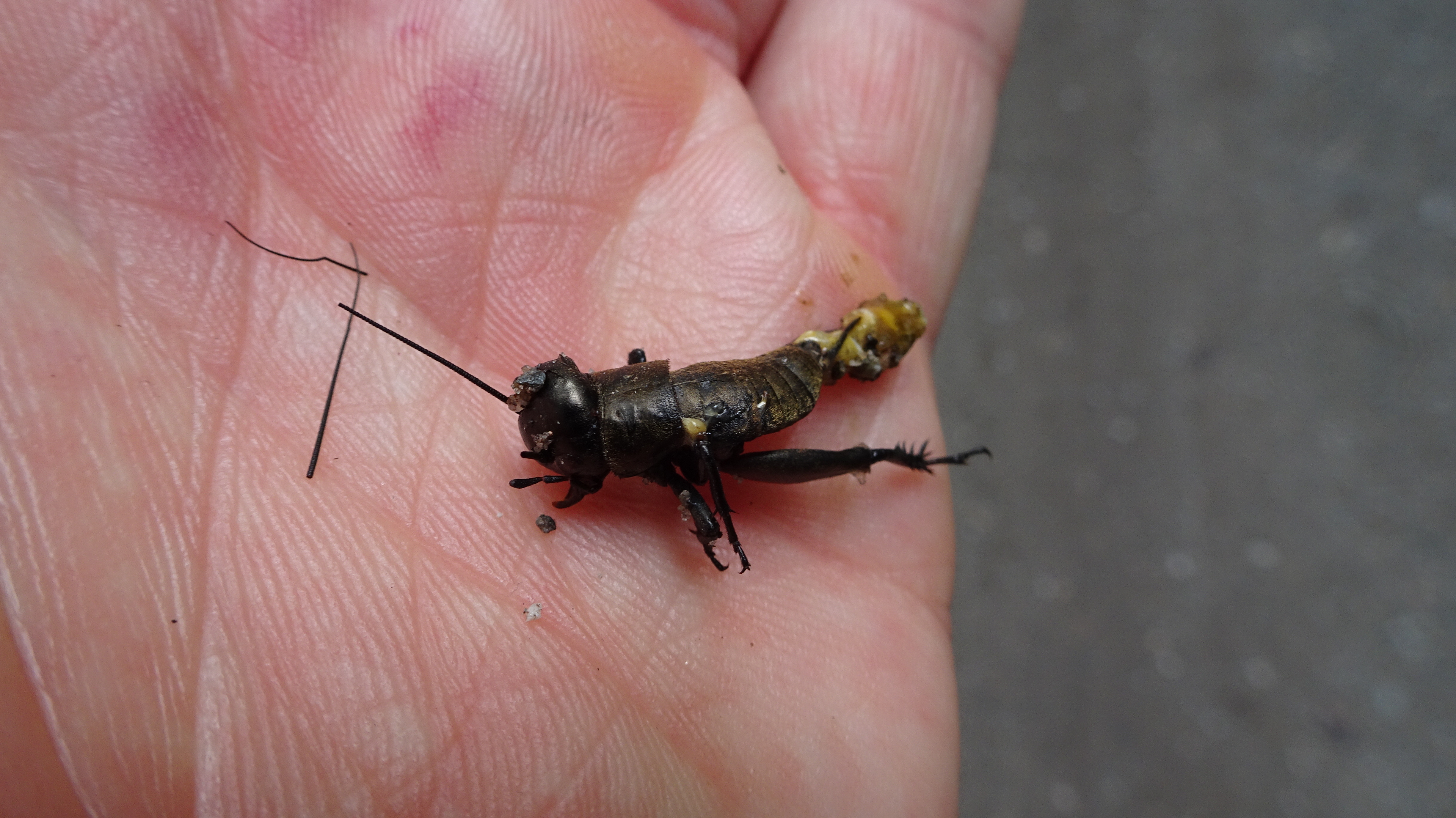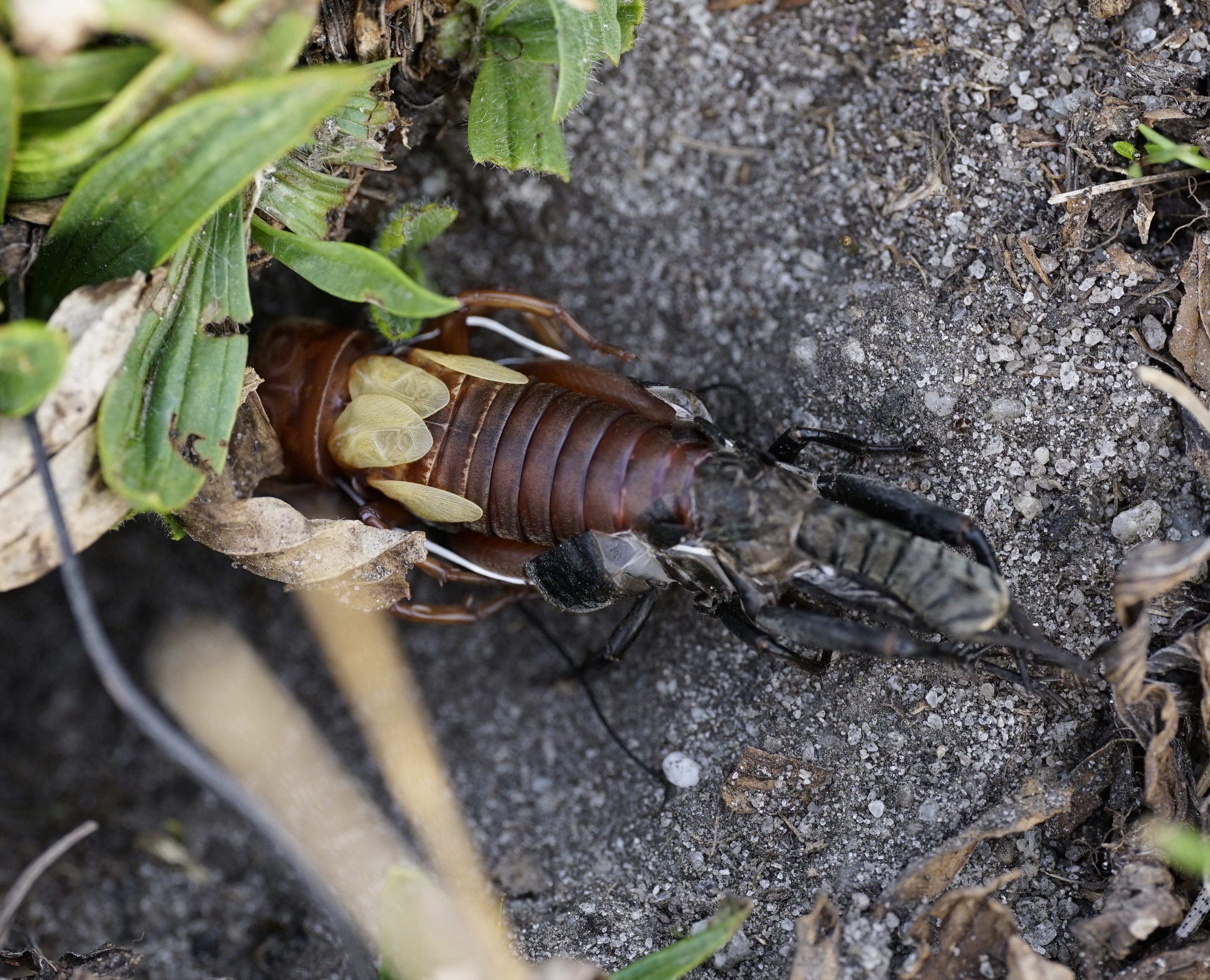 Grünanlage der Gemeinde nahe Feldrand, Ortsrand Ottendorf-Okrilla, 15.06.2020 13:15; überquert Fußweg, bleibt bei Annäherung sitzen; linkes Hinterbein fehlt, linke Antenne verkürzt