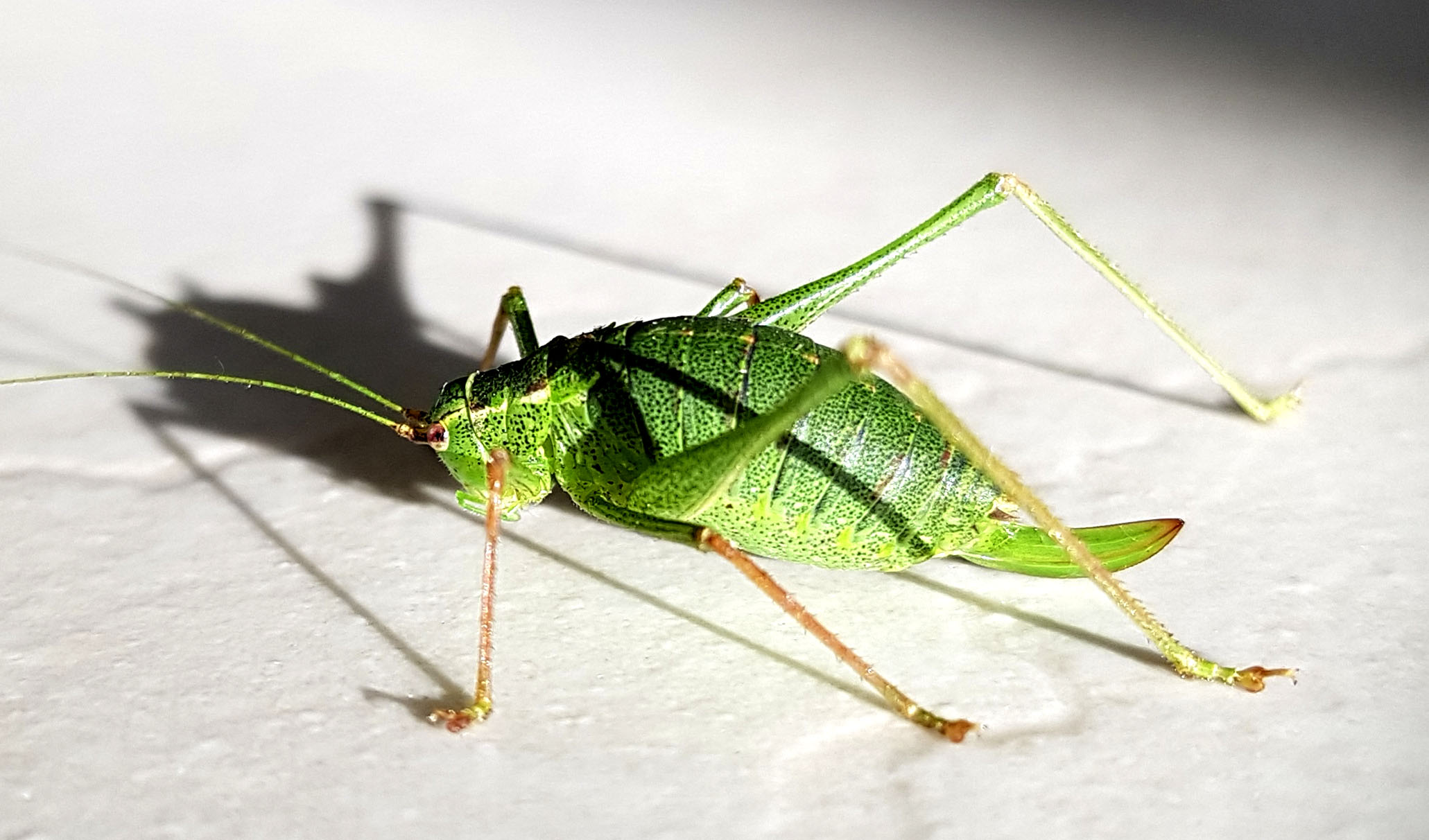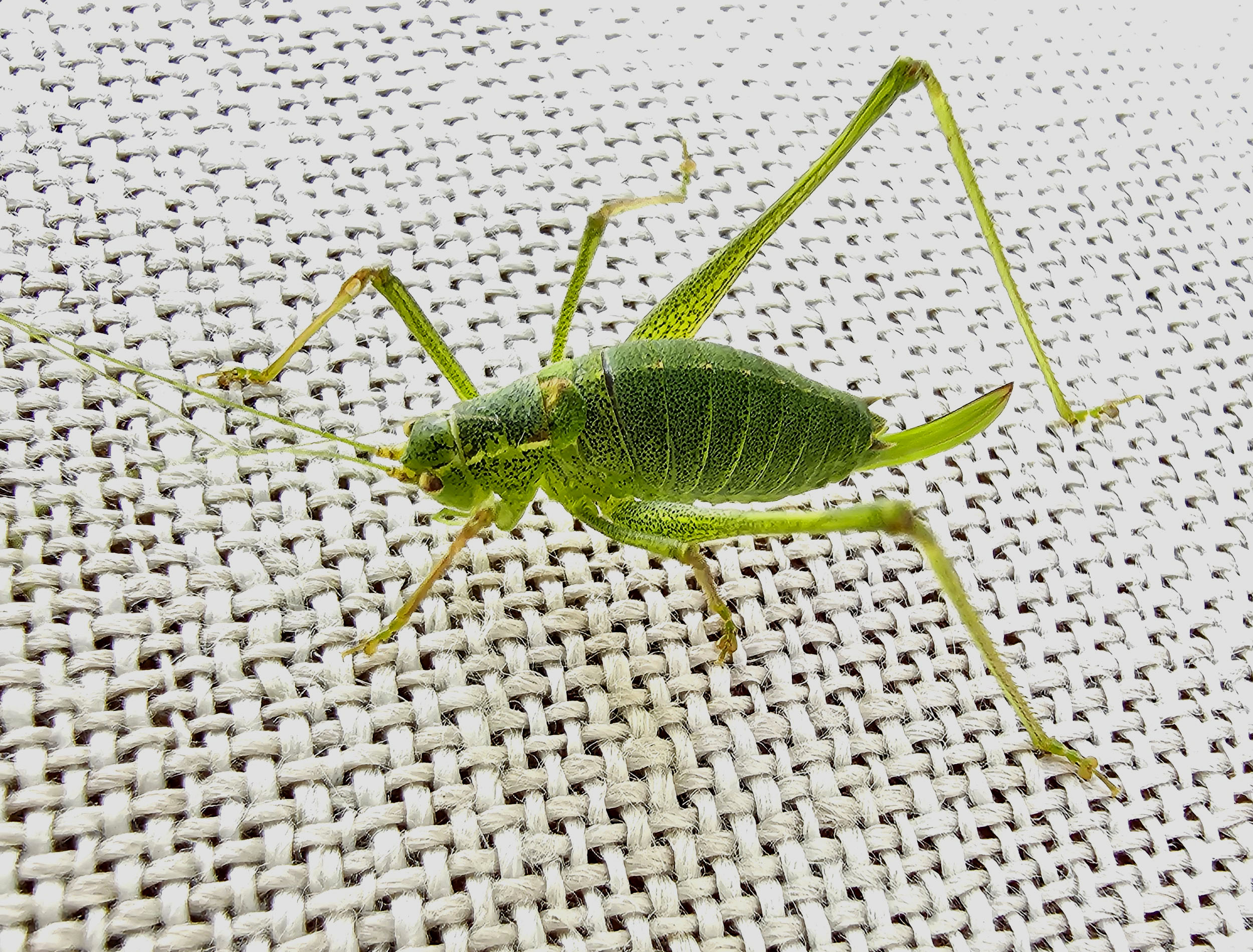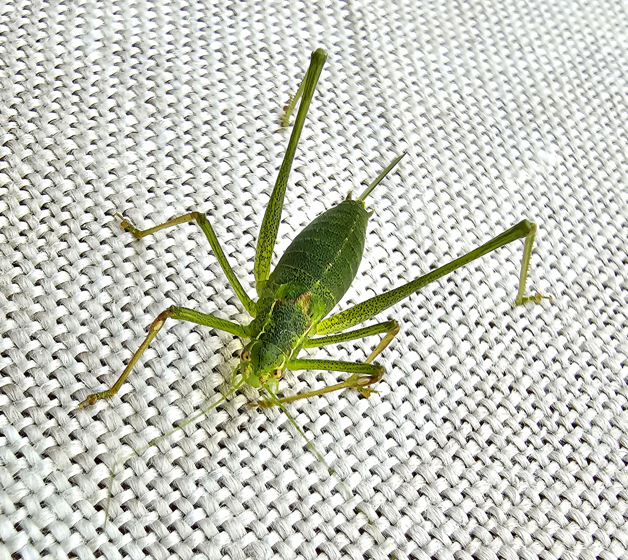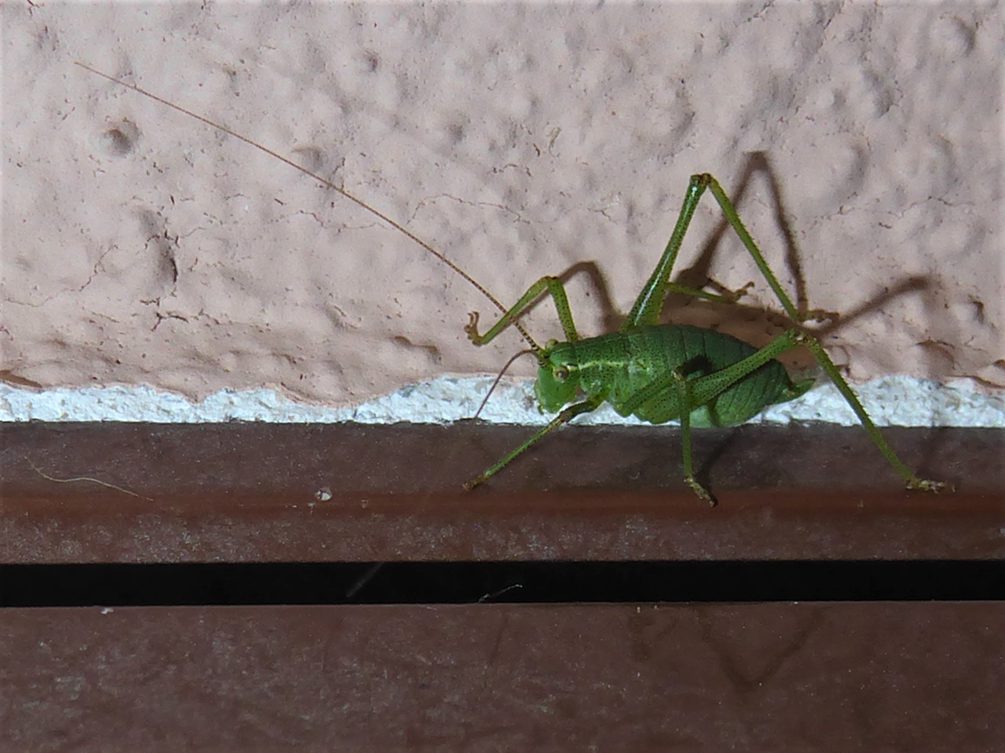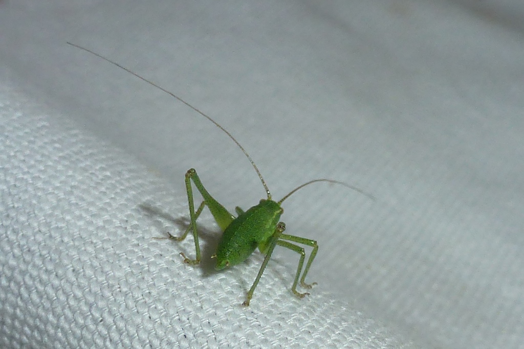 Punktierte Zartschrecke (Leptophyes punctatissima (Bosc, 1792), Irrgast im Gebäude, Dresden, 22.10.2019