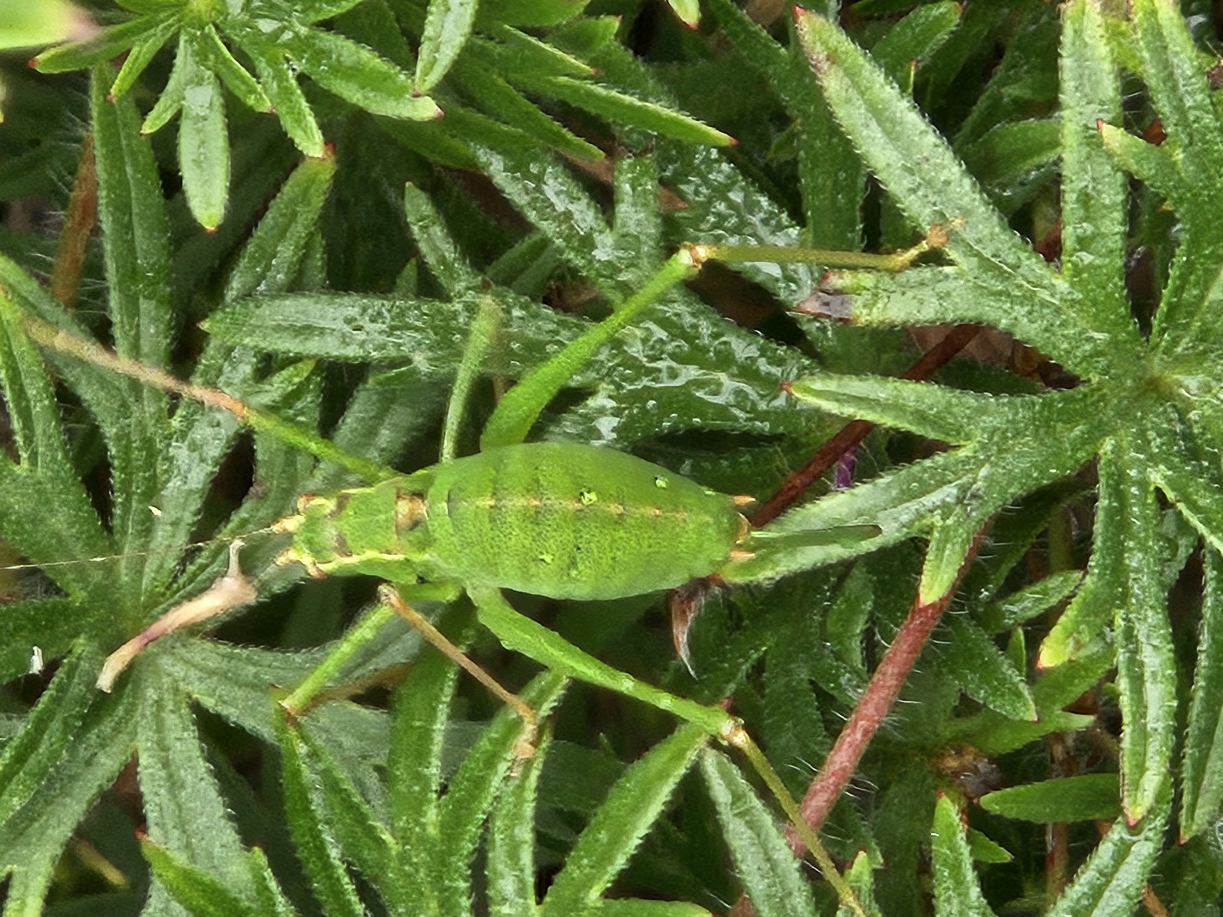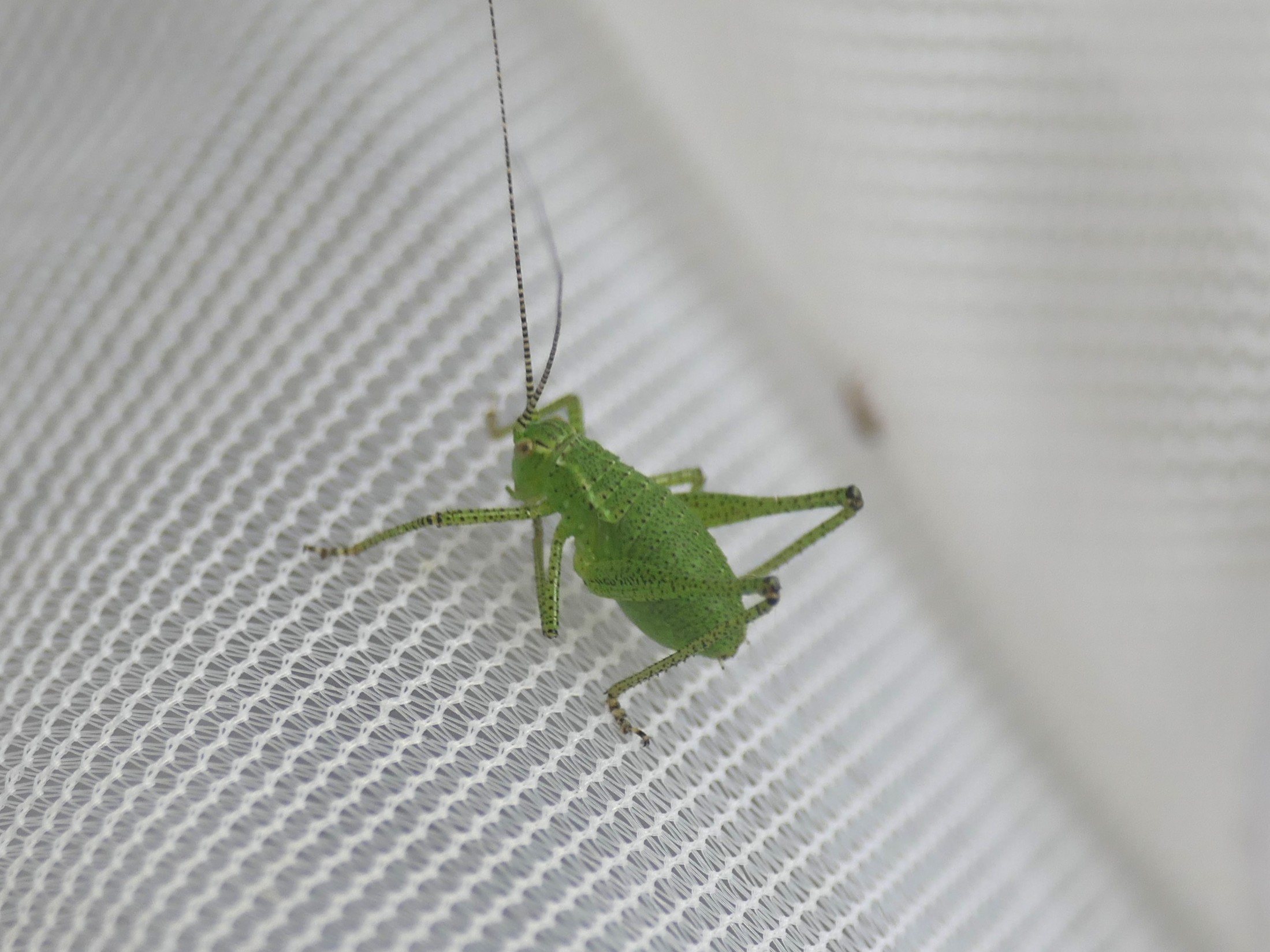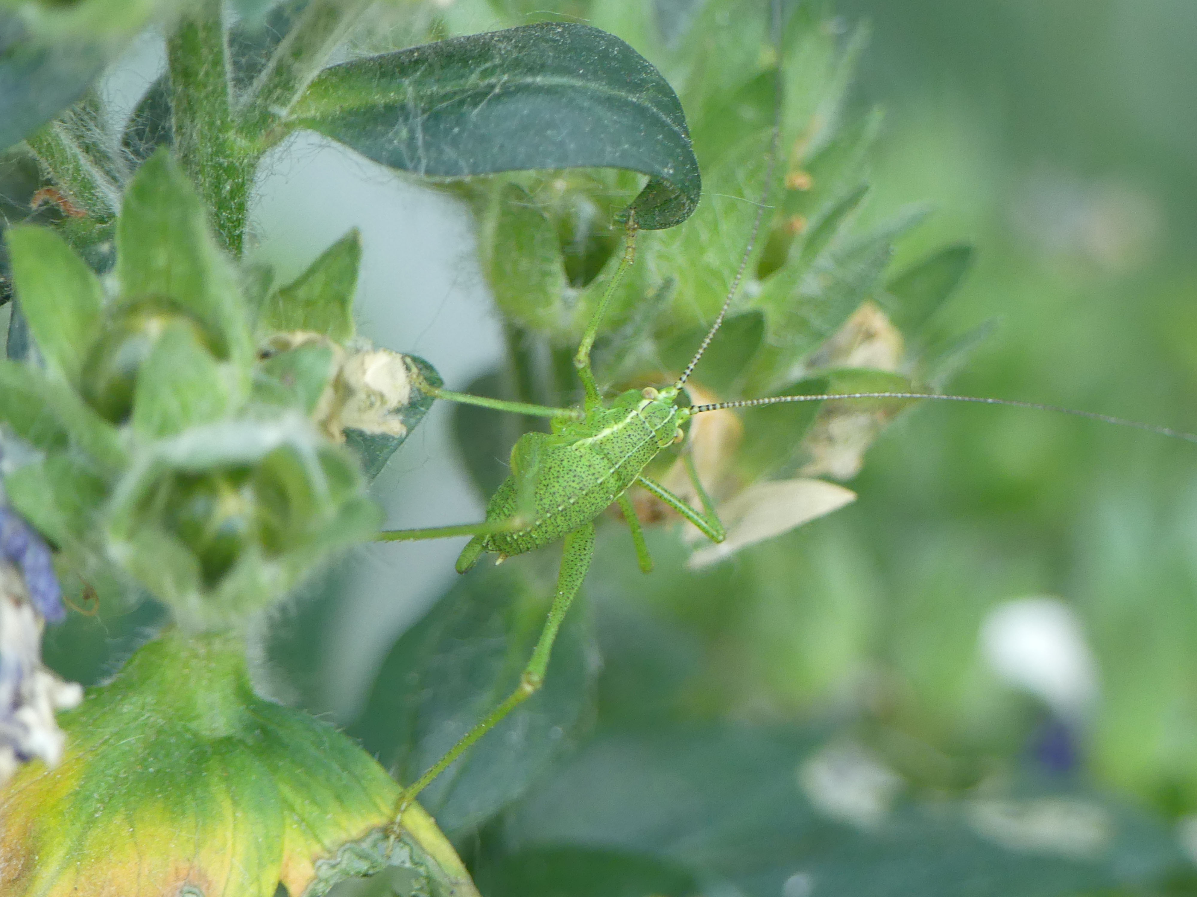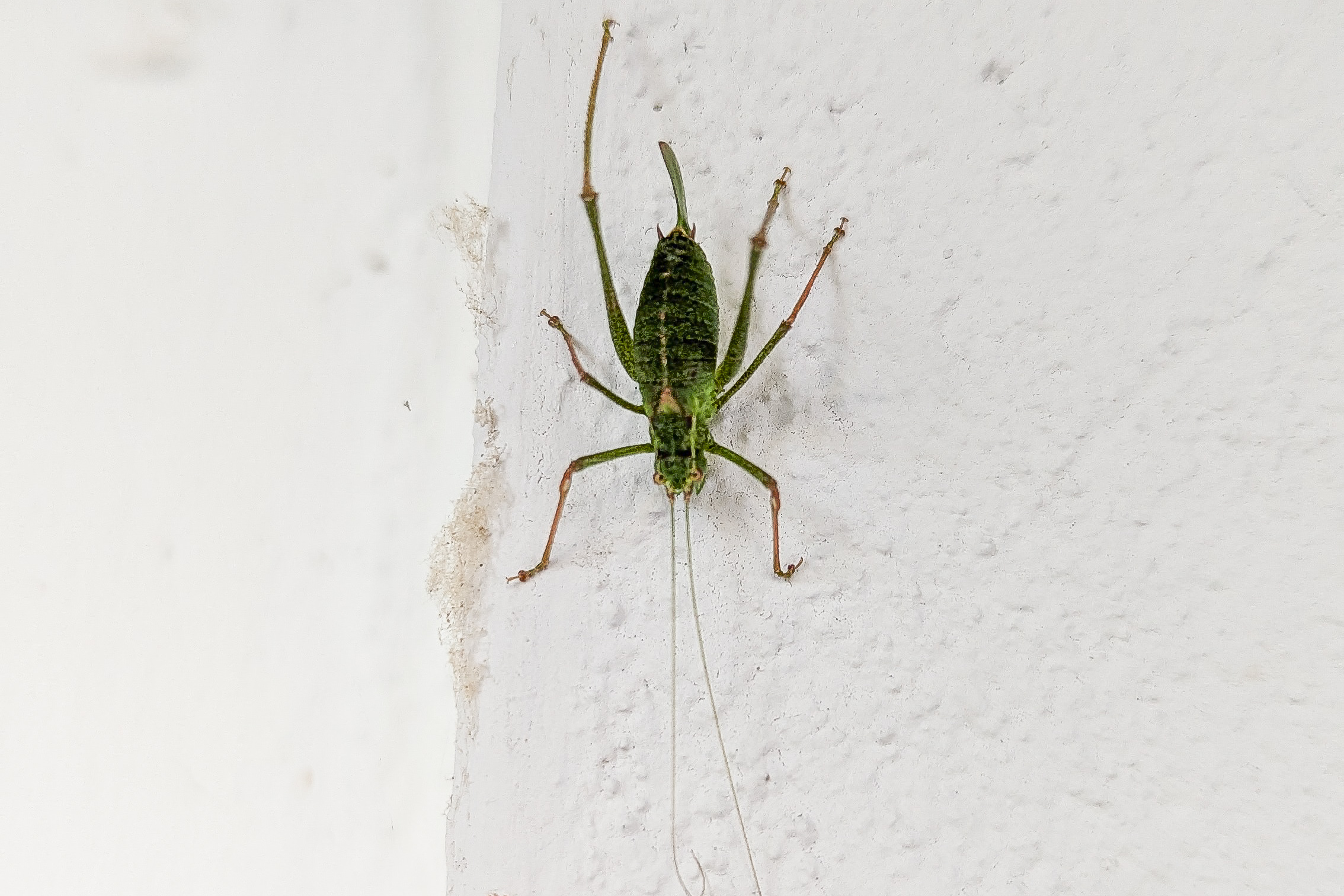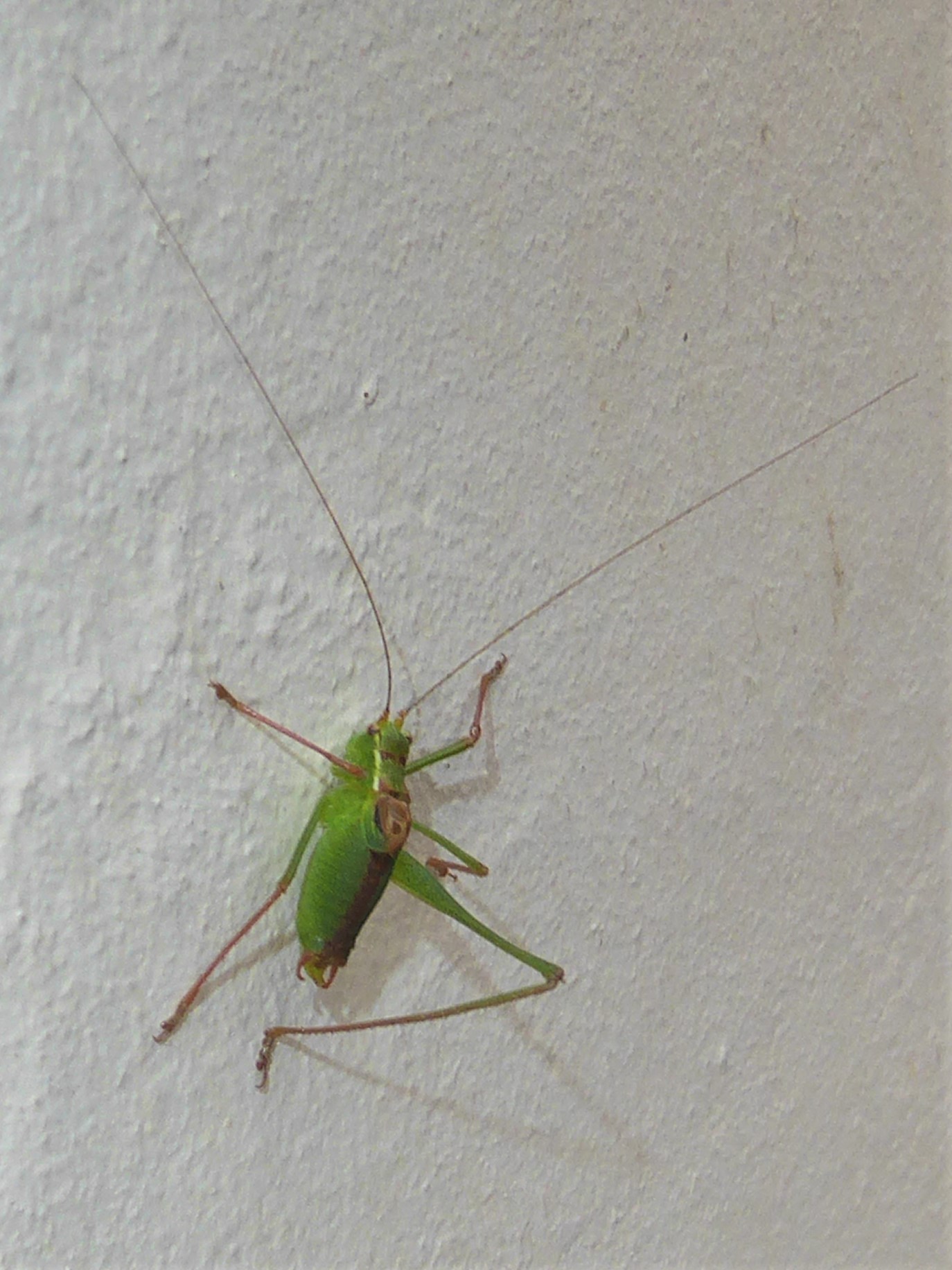 Punktierte Zartschrecke (Leptophyes punctatissima (Bosc, 1792), Irrgast im Gebäude, Dresden, 22.10.2019
