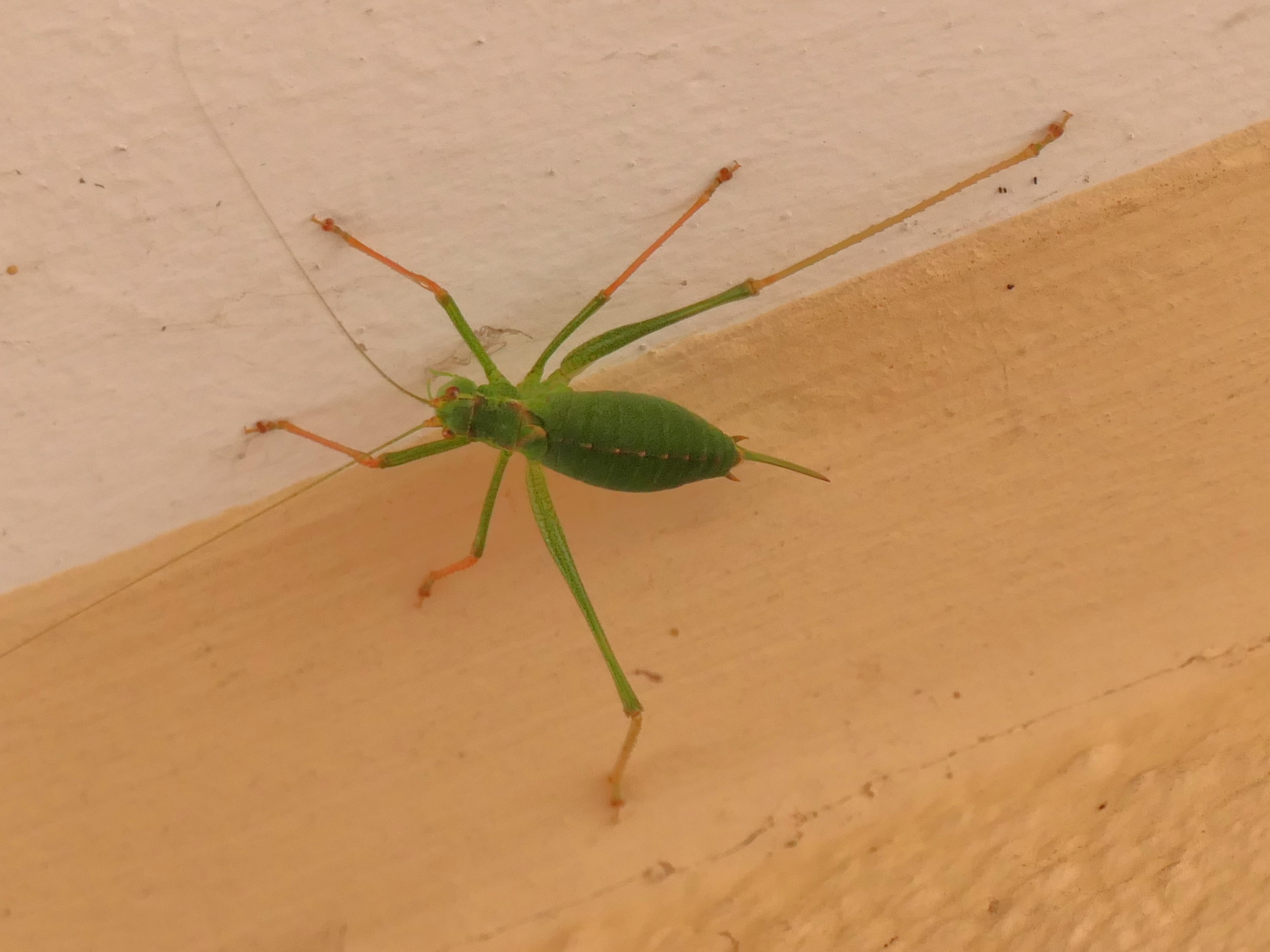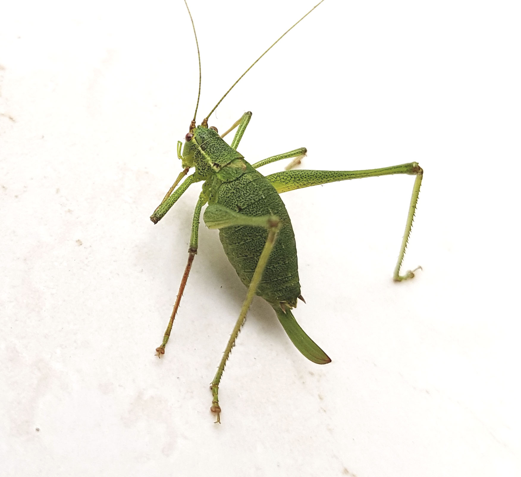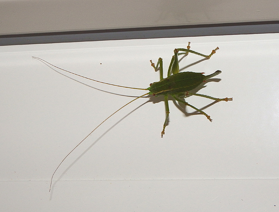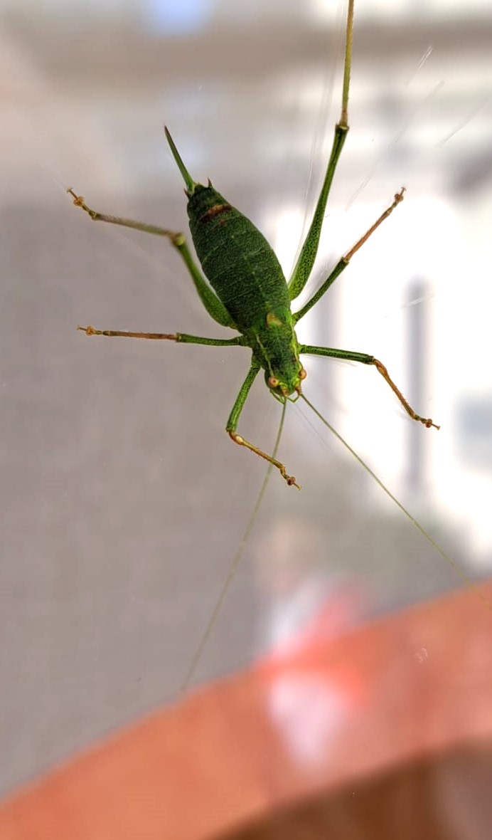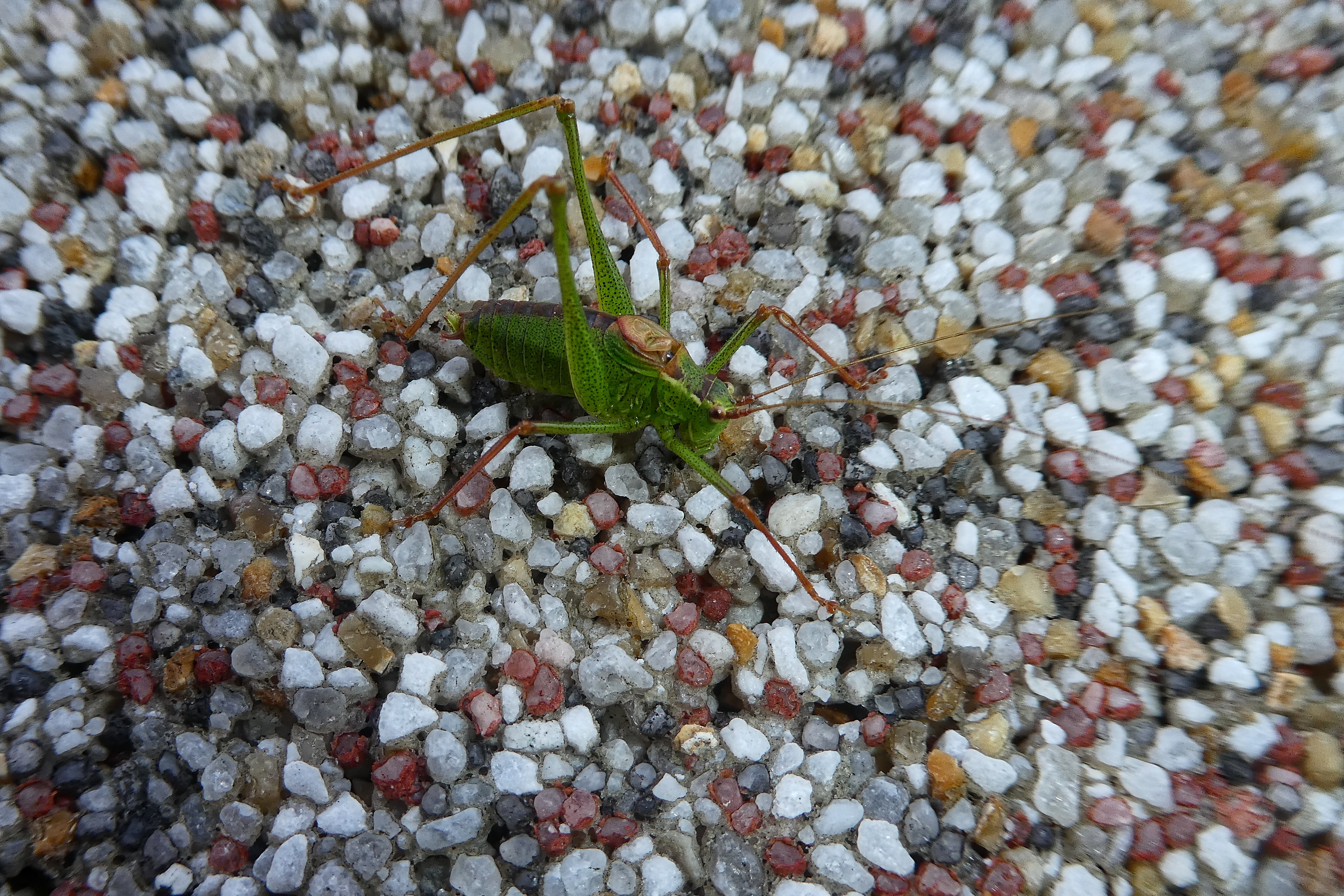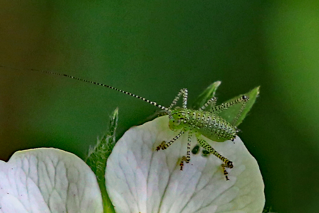 Punktierte Zartschrecke (Leptophyes punctatissima (Bosc, 1792), Irrgast im Gebäude, Dresden, 22.10.2019