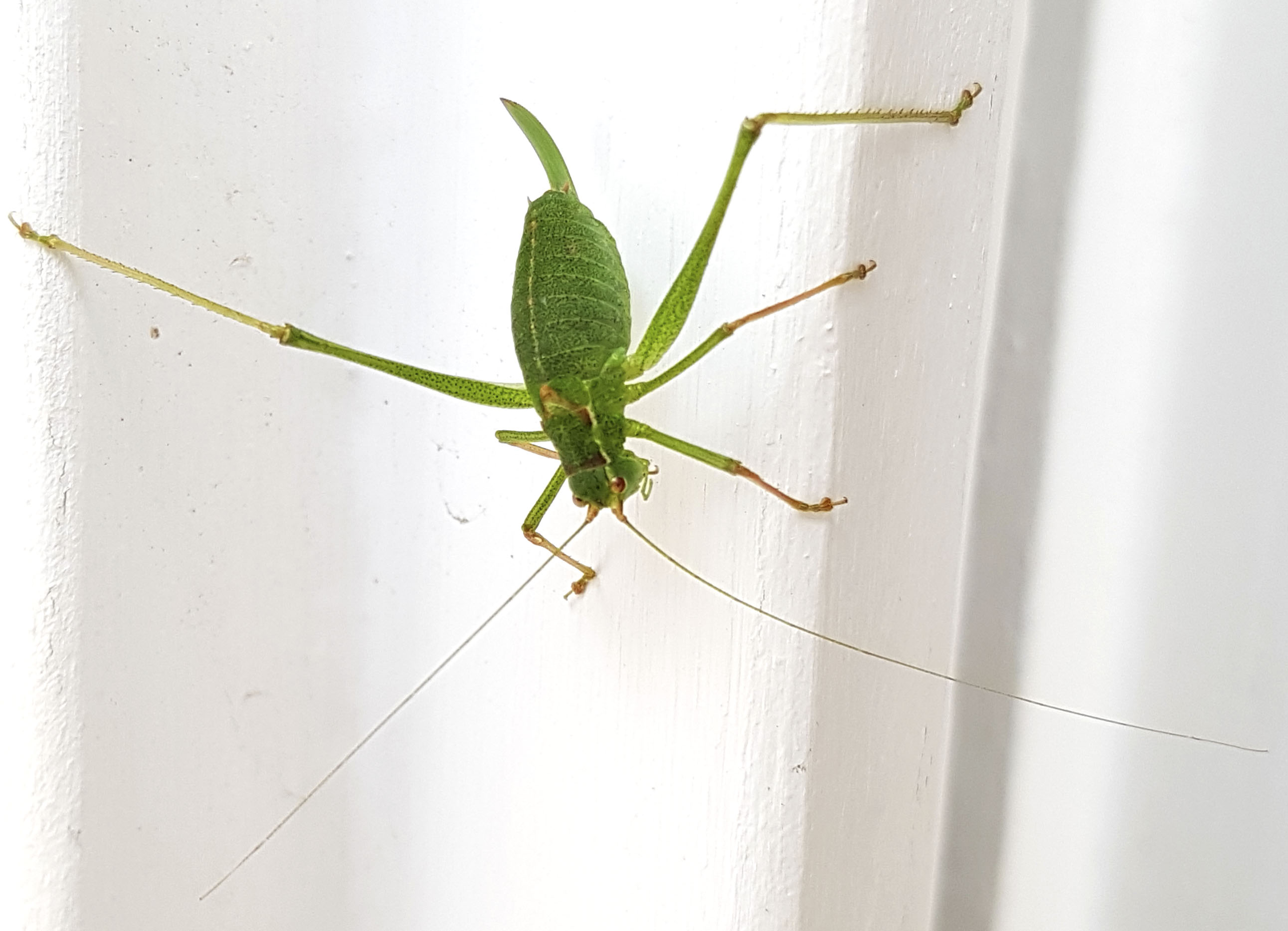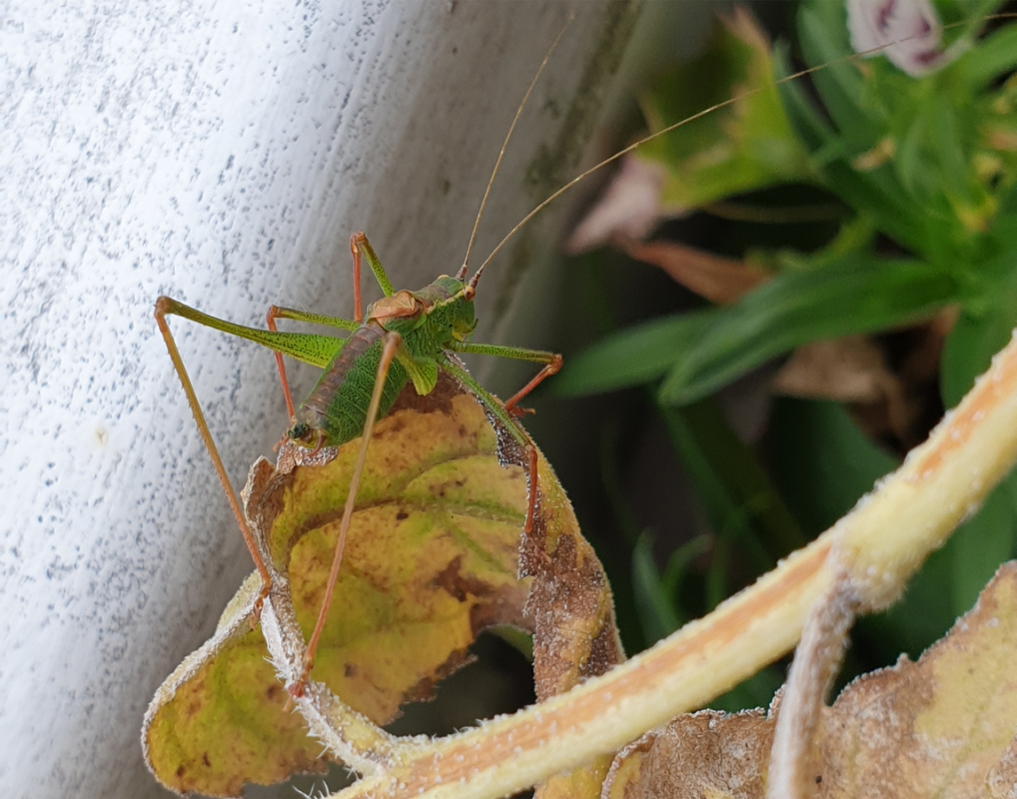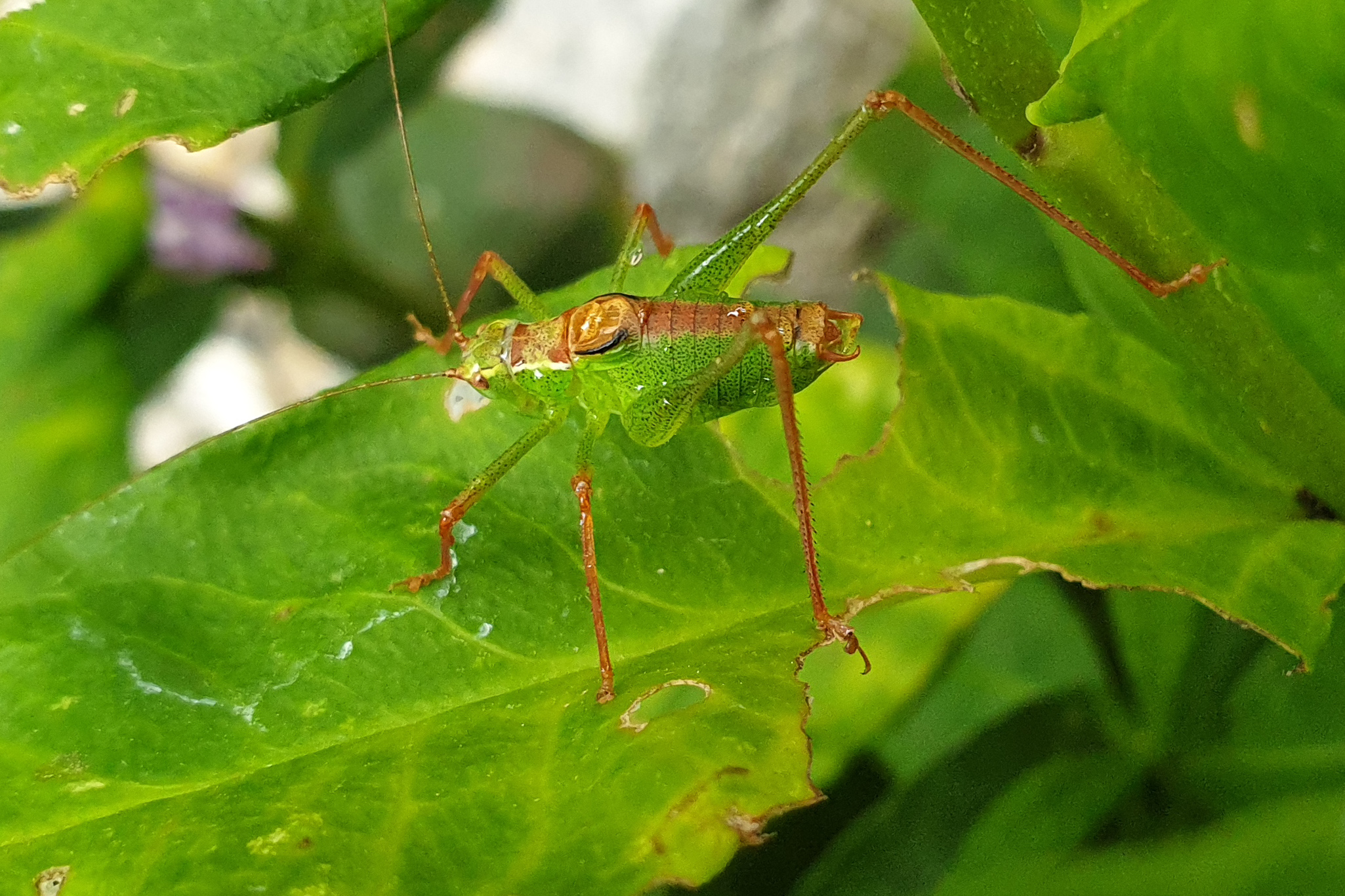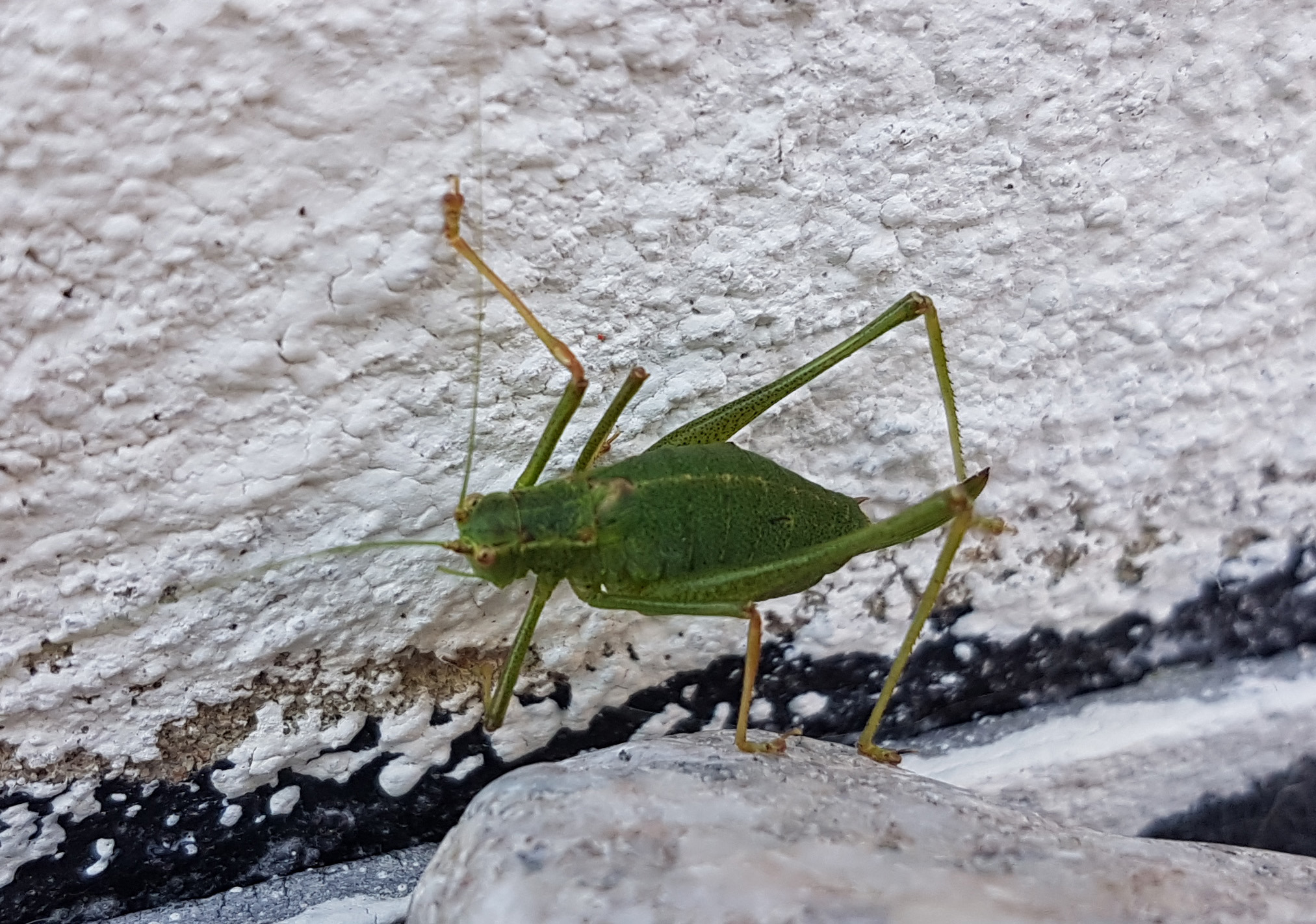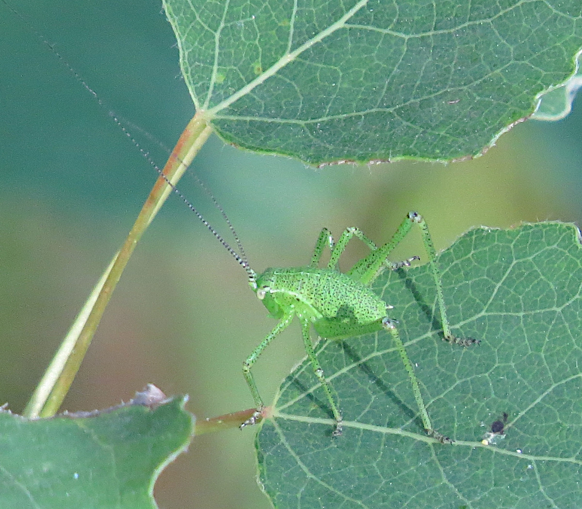 Punktierte Zartschrecke (Leptophyes punctatissima (Bosc, 1792), Irrgast im Gebäude, Dresden, 22.10.2019
