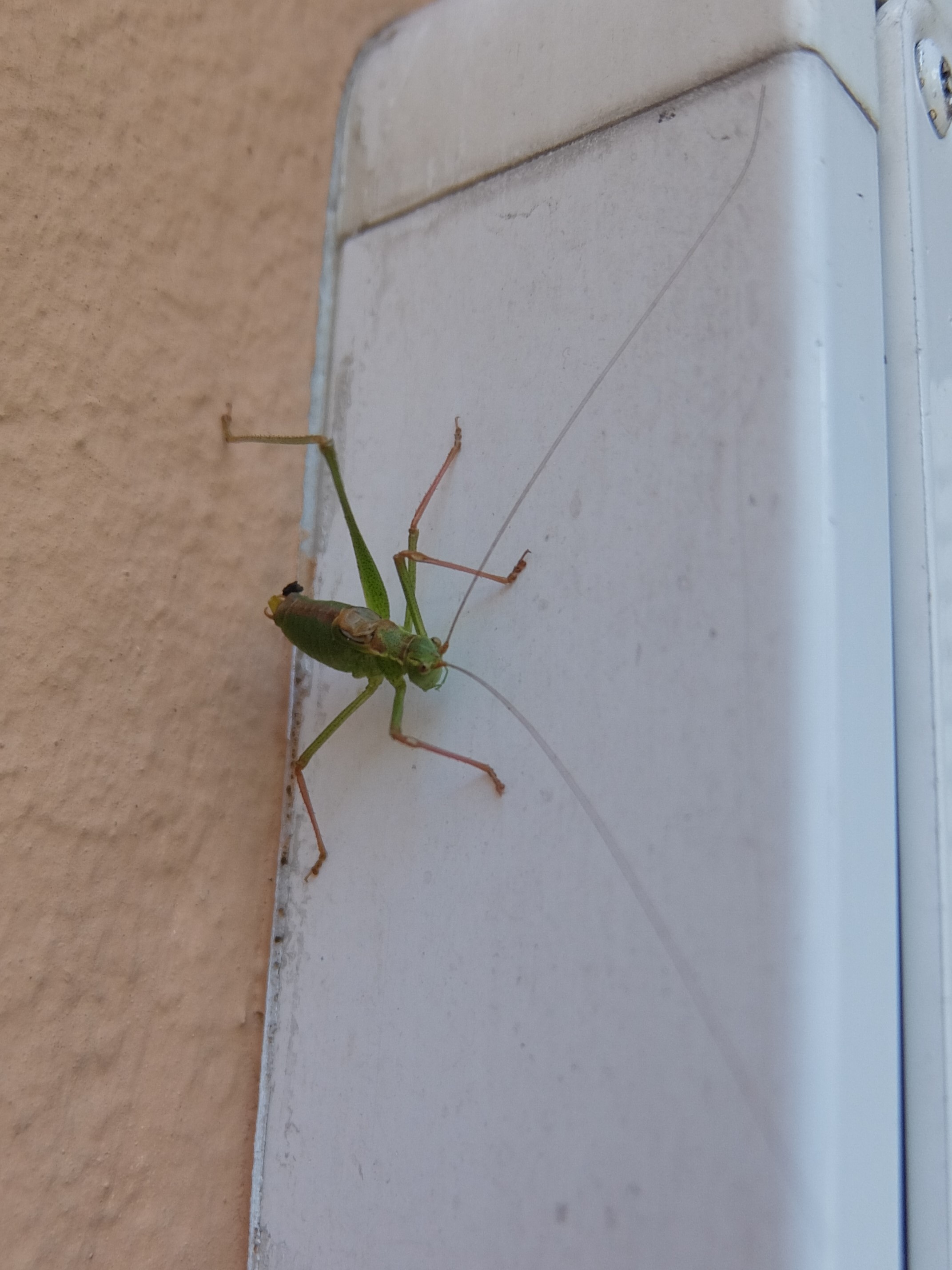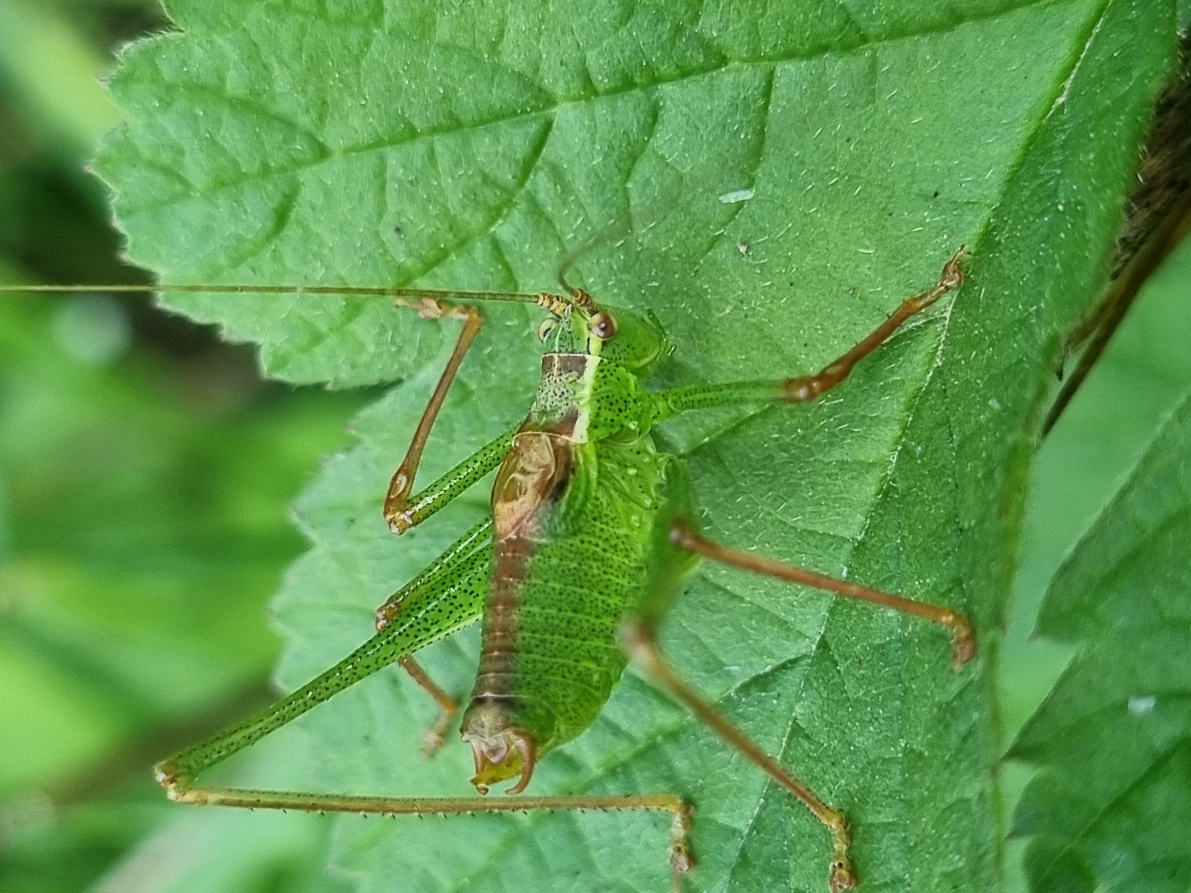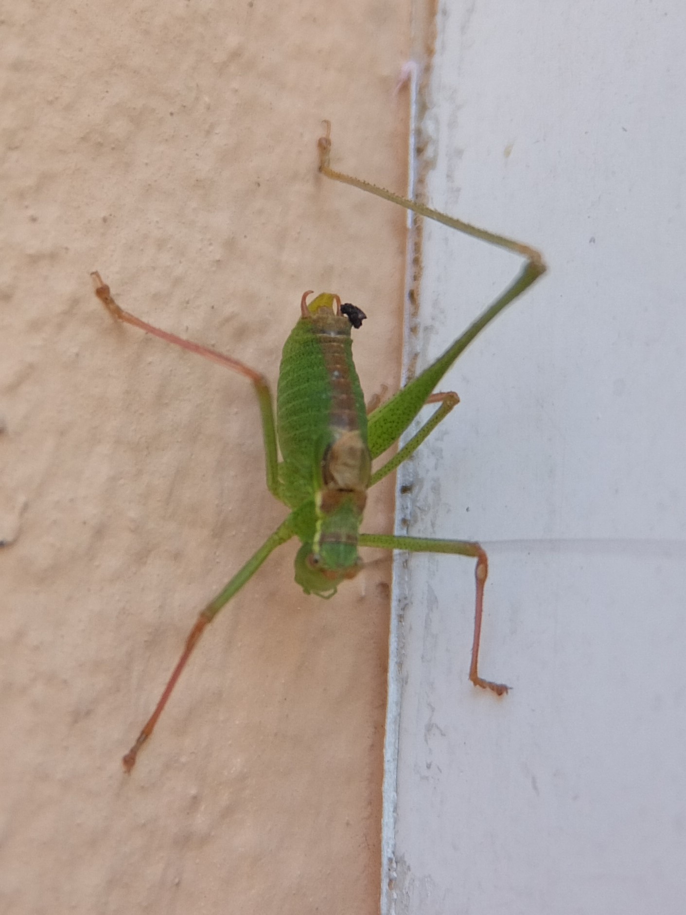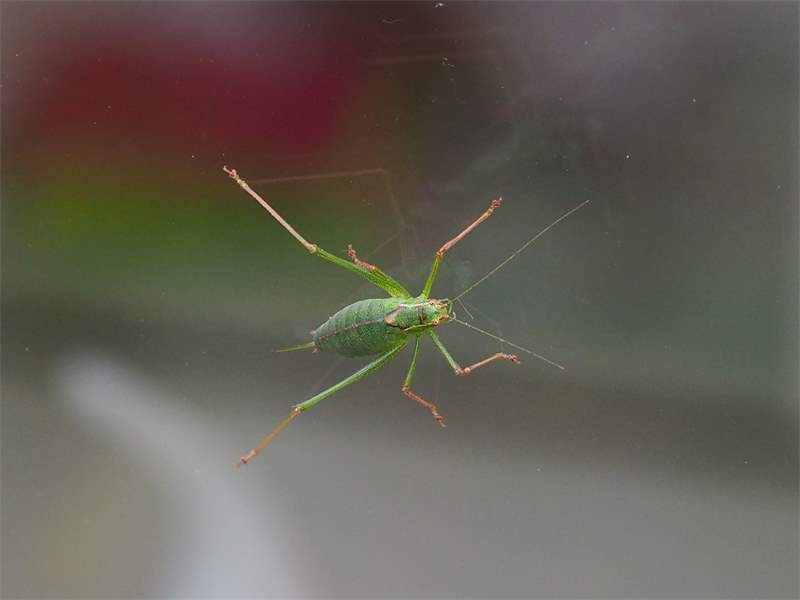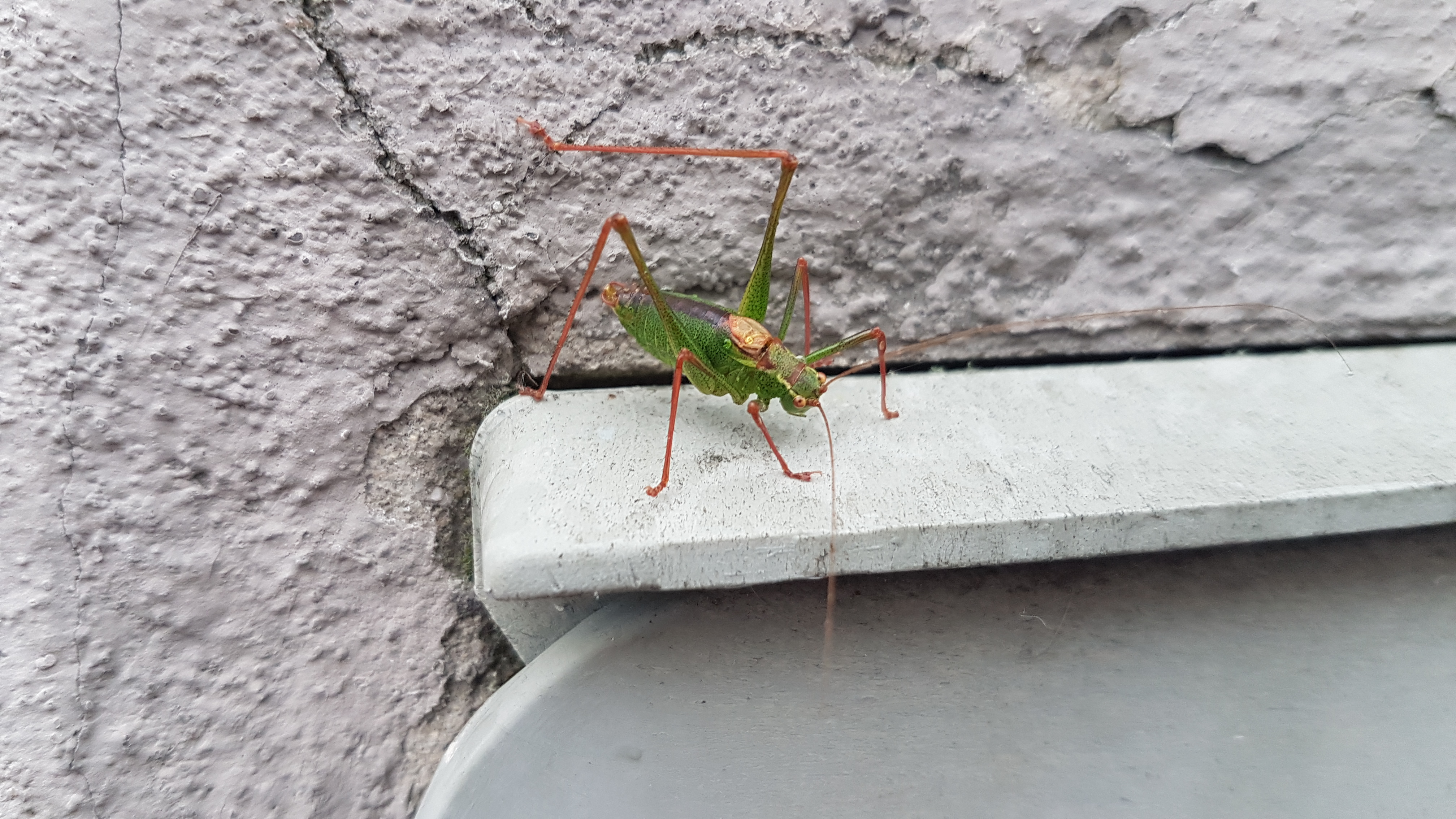 Punktierte Zartschrecke (Leptophyes punctatissima (Bosc, 1792), Irrgast im Gebäude, Dresden, 22.10.2019