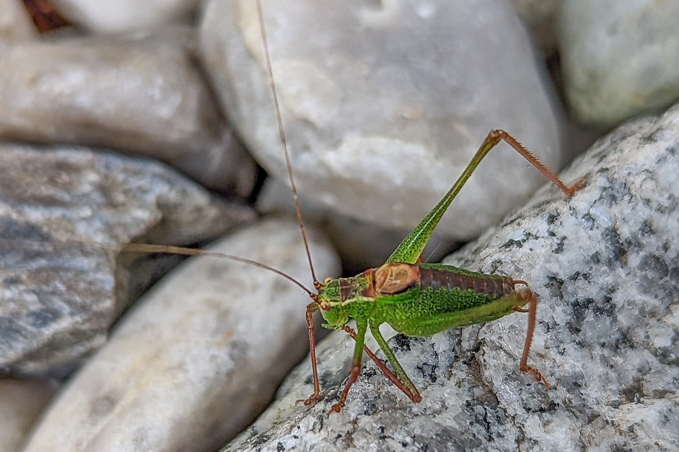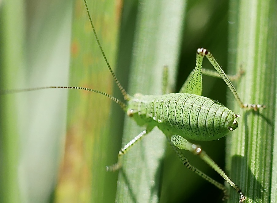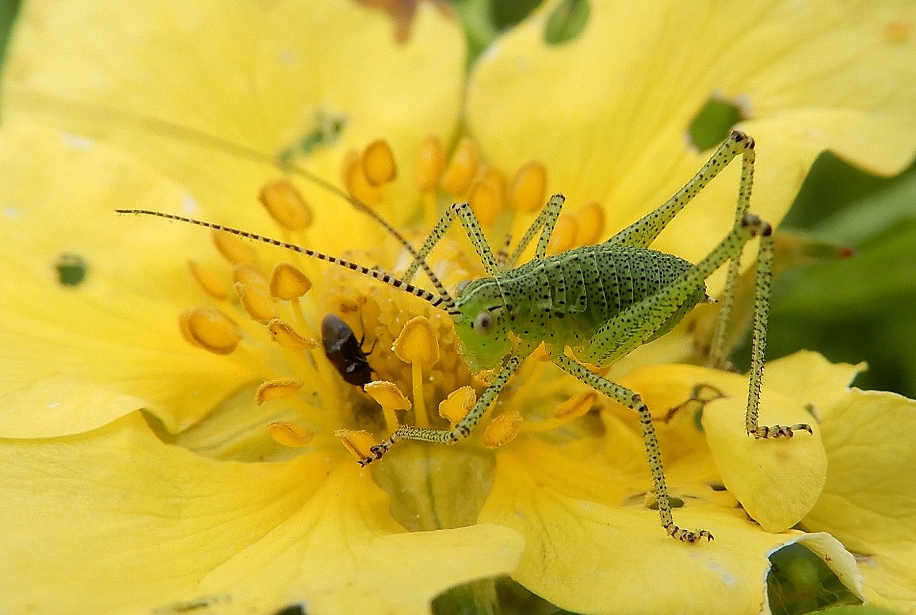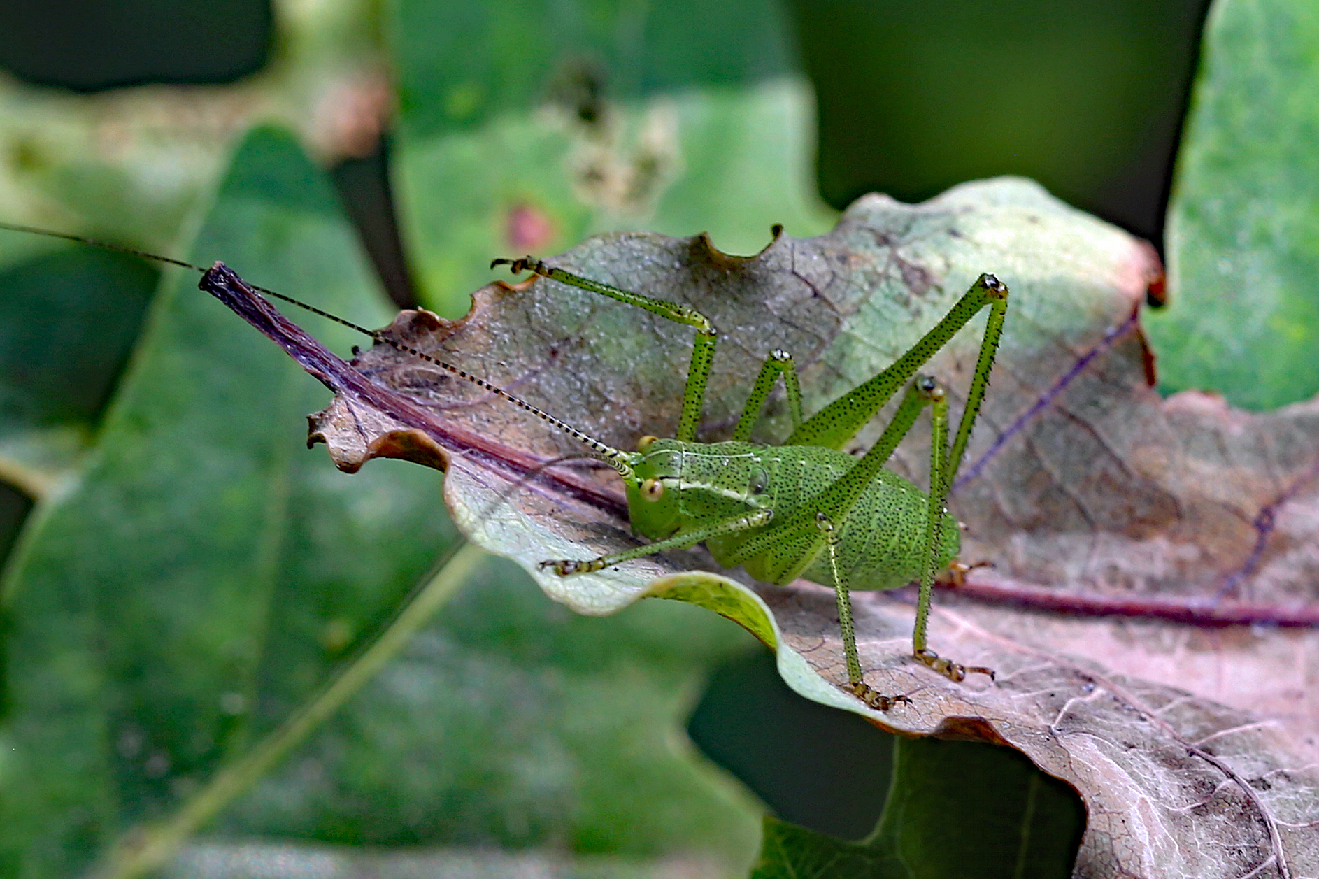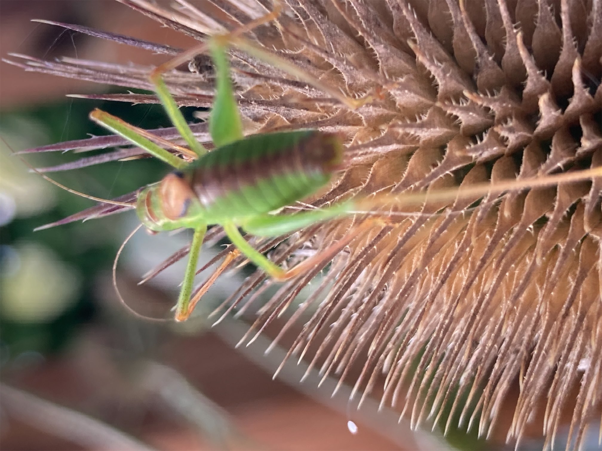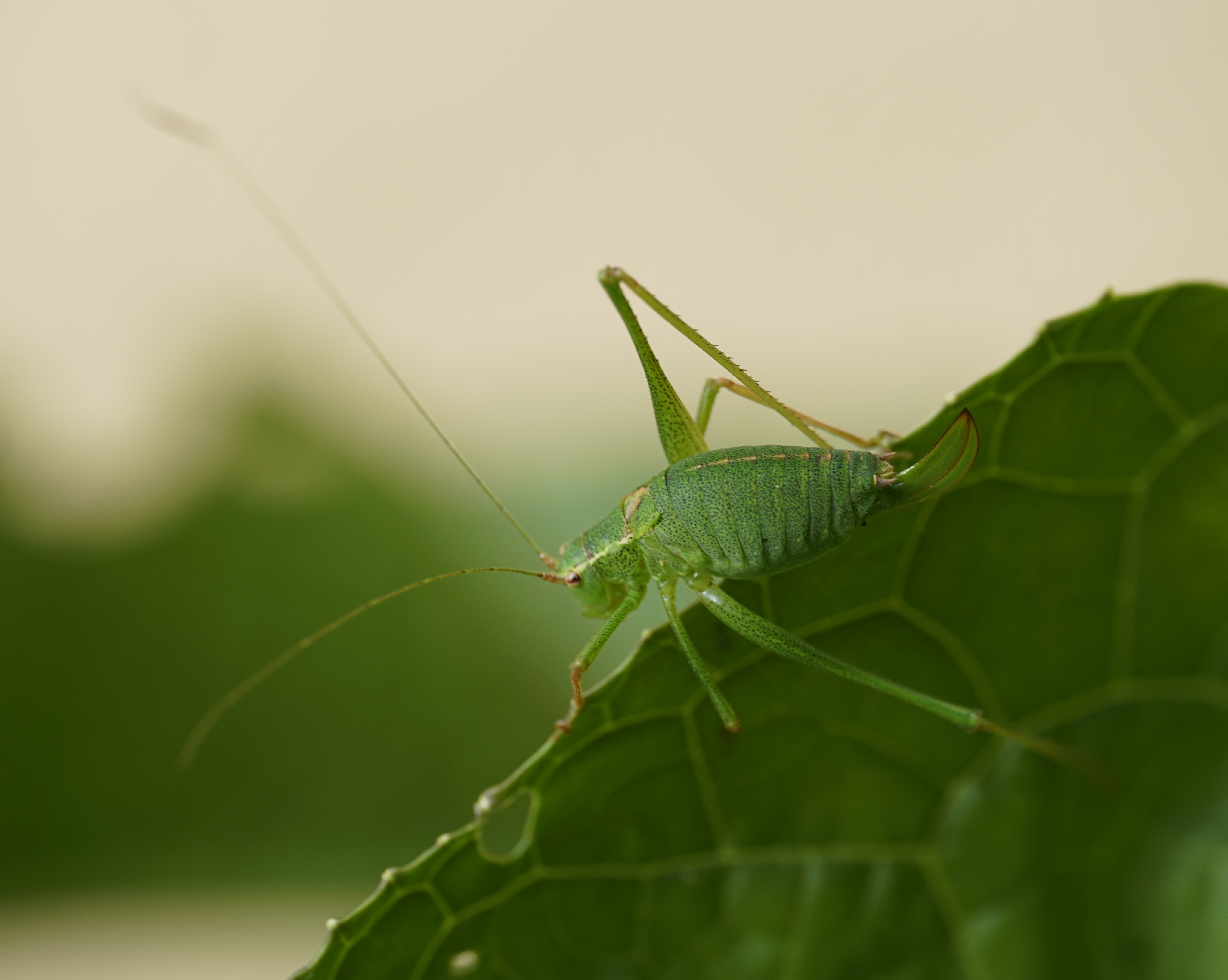 Punktierte Zartschrecke (Leptophyes punctatissima (Bosc, 1792), Irrgast im Gebäude, Dresden, 22.10.2019