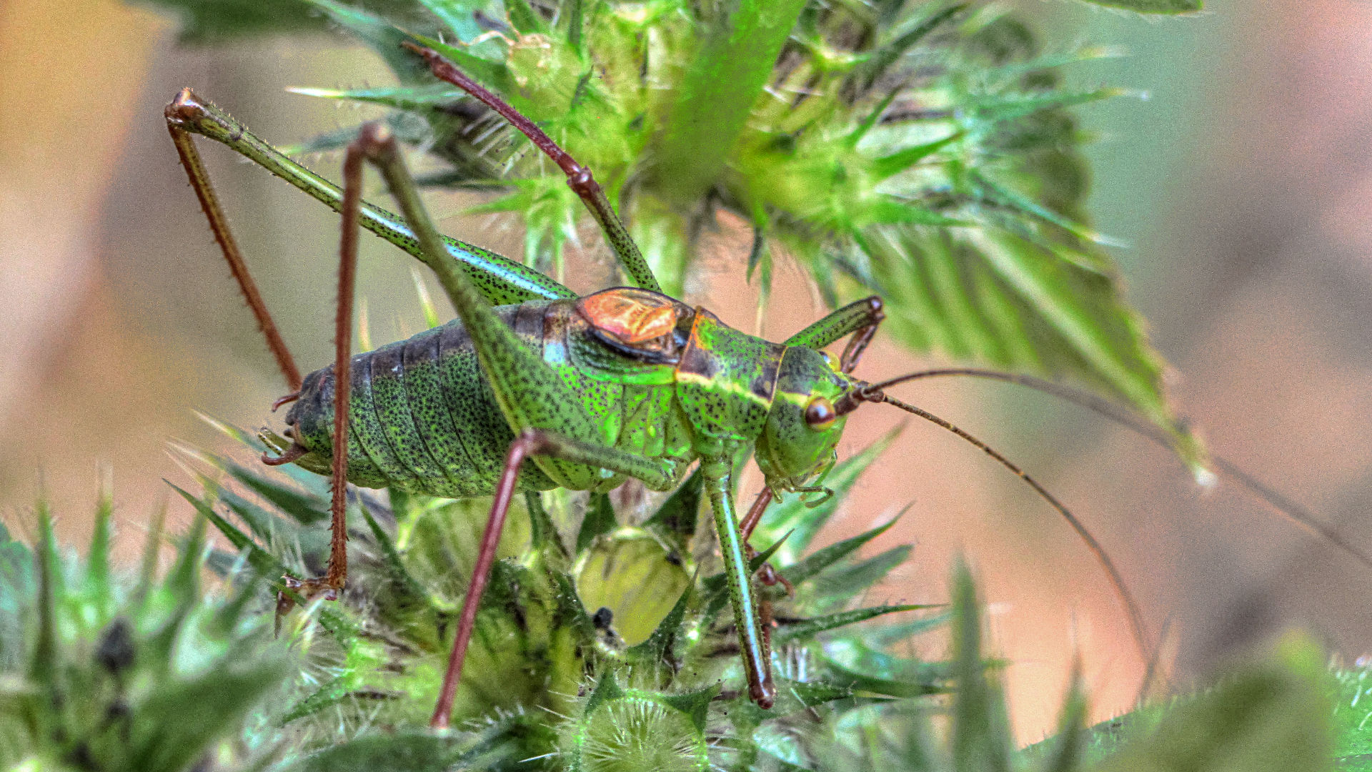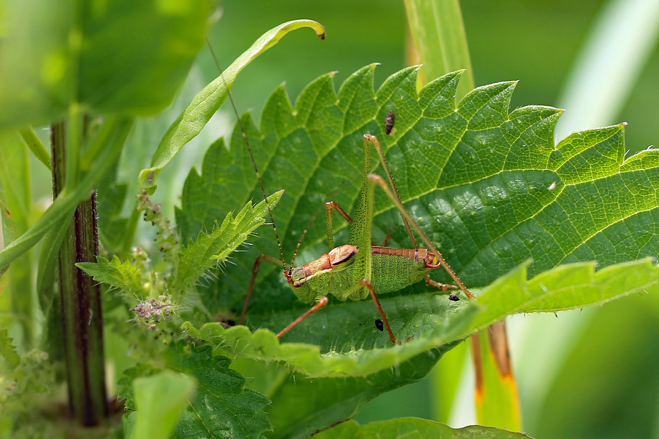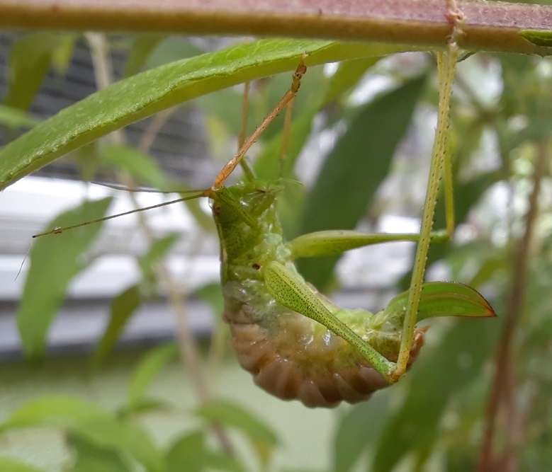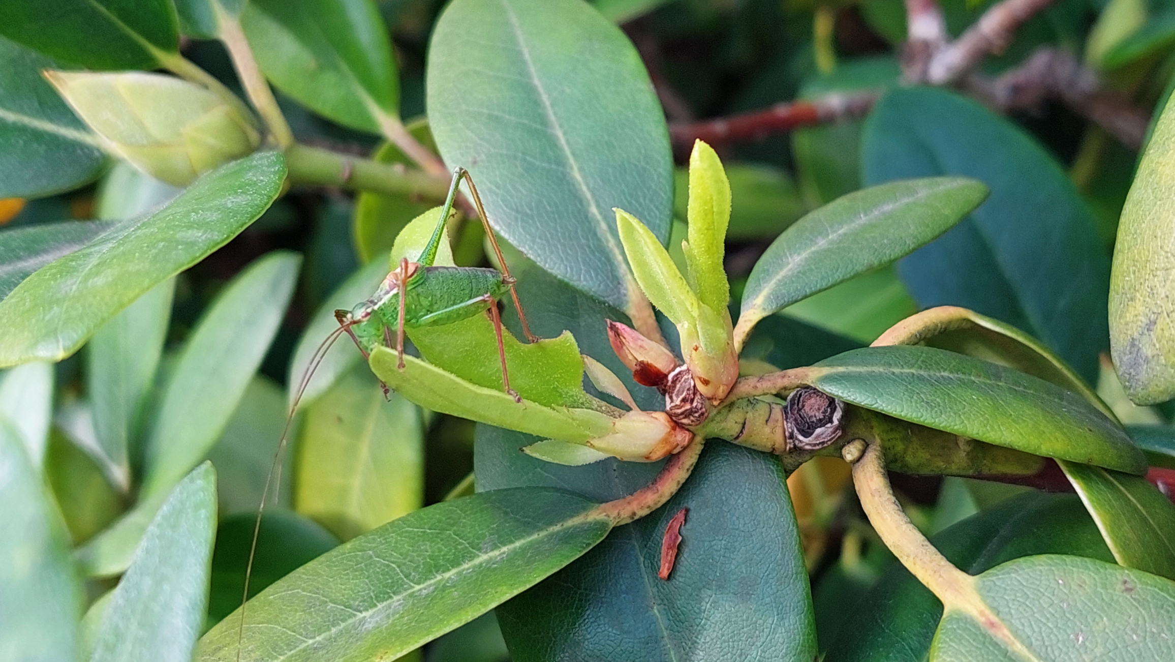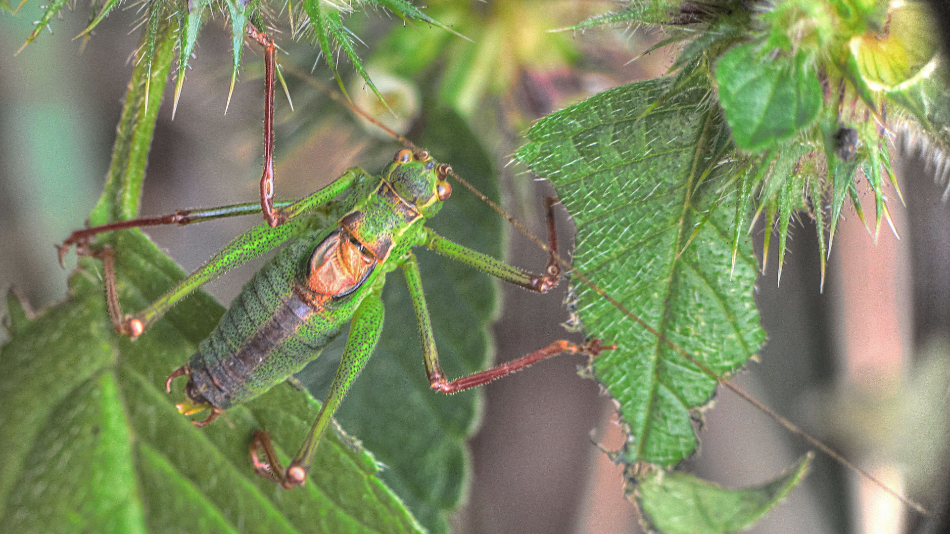 Punktierte Zartschrecke (Leptophyes punctatissima (Bosc, 1792), Irrgast im Gebäude, Dresden, 22.10.2019