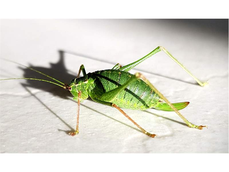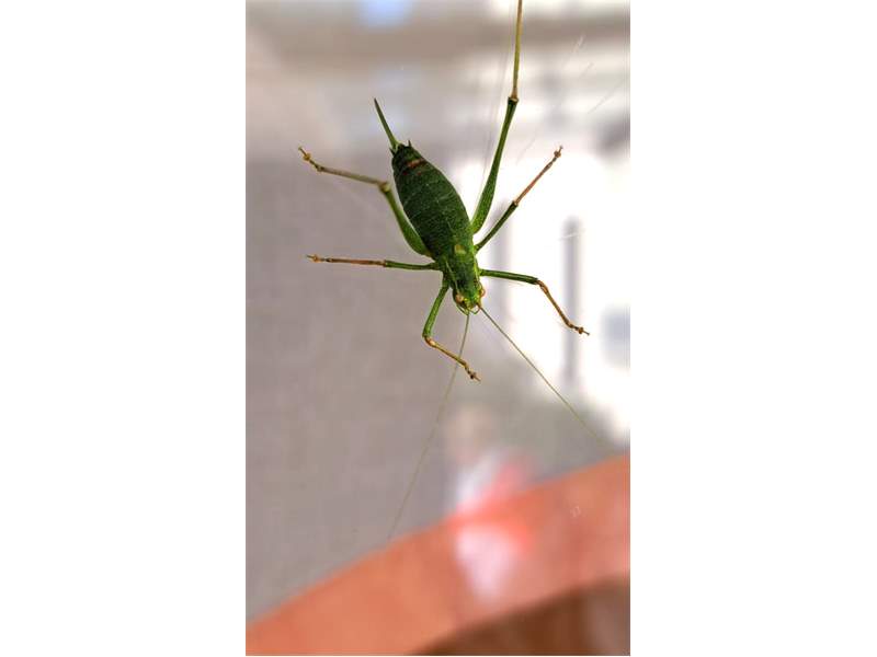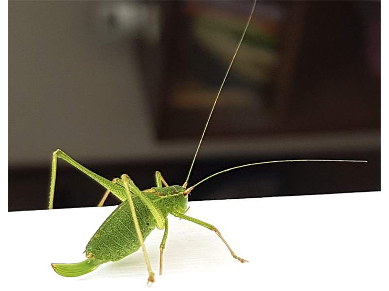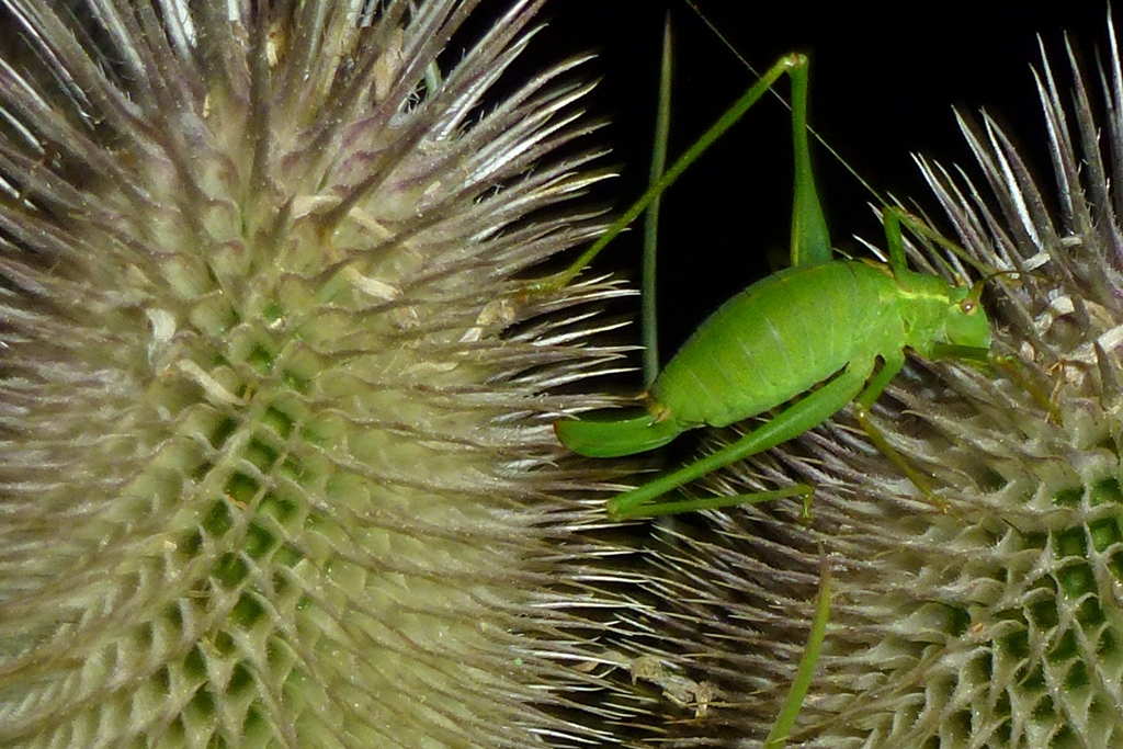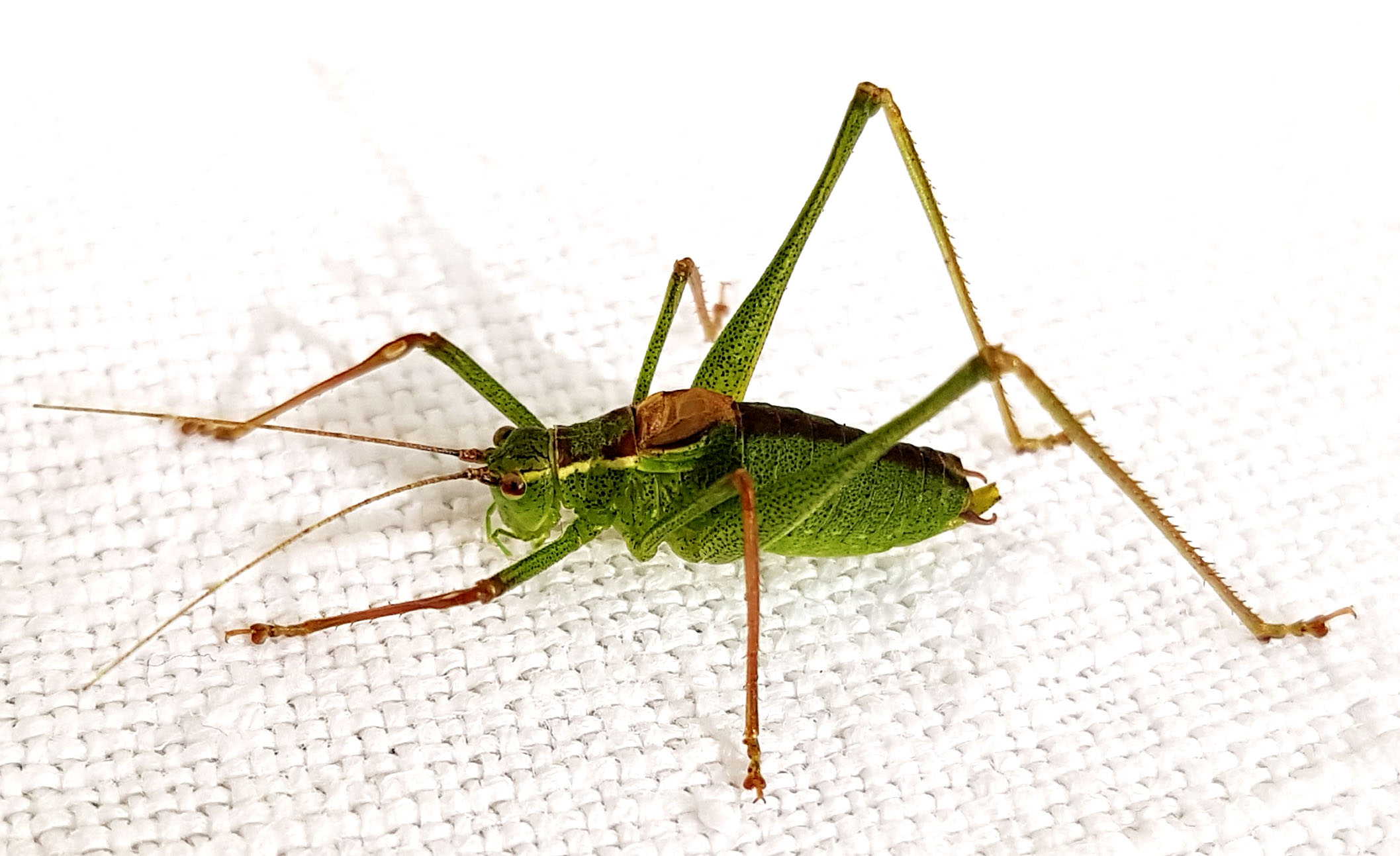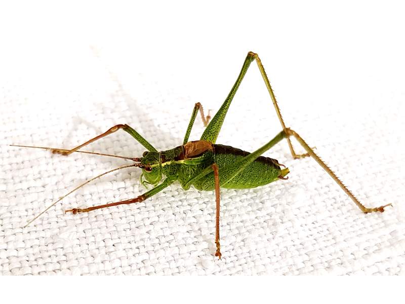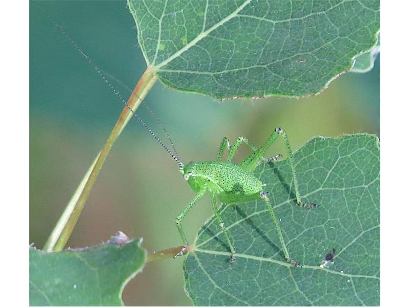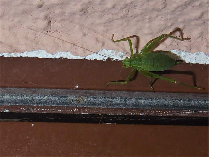 Punktierte Zartschrecke (Leptophyes punctatissima (Bosc, 1792), Irrgast im Gebäude, Dresden, 22.10.2019 (© Frank Bittrich)( Bild vergrößern)