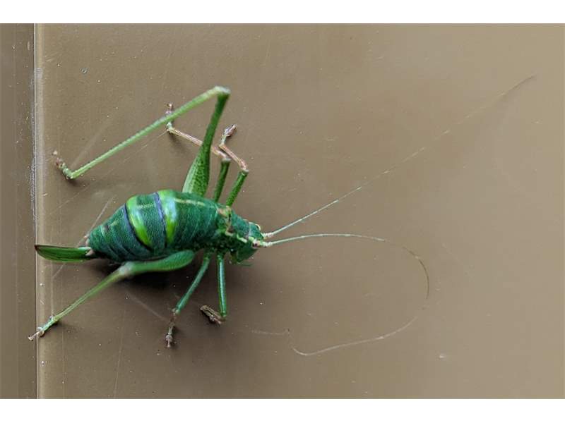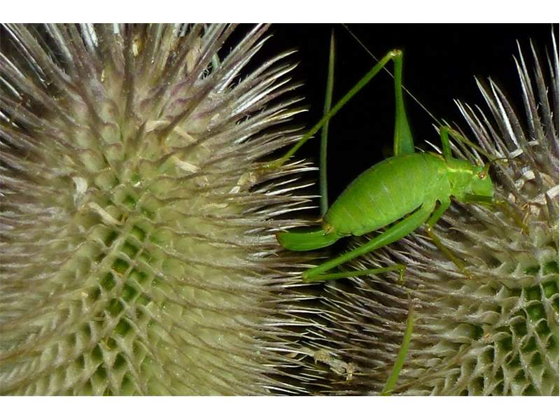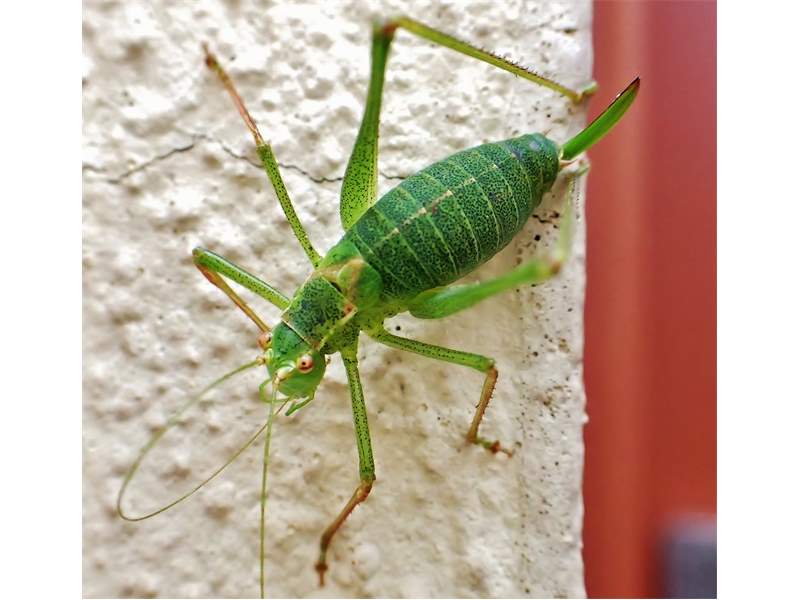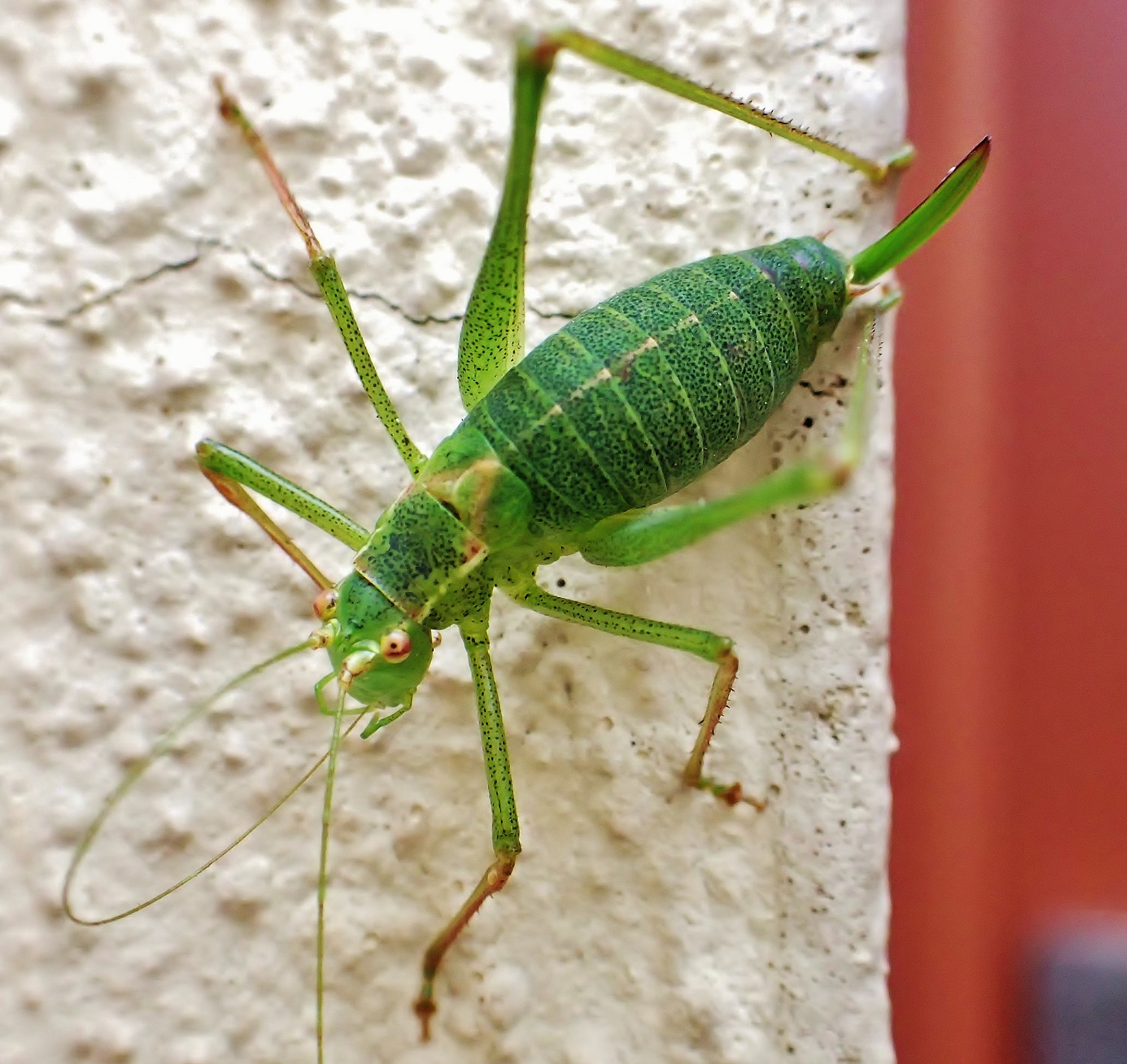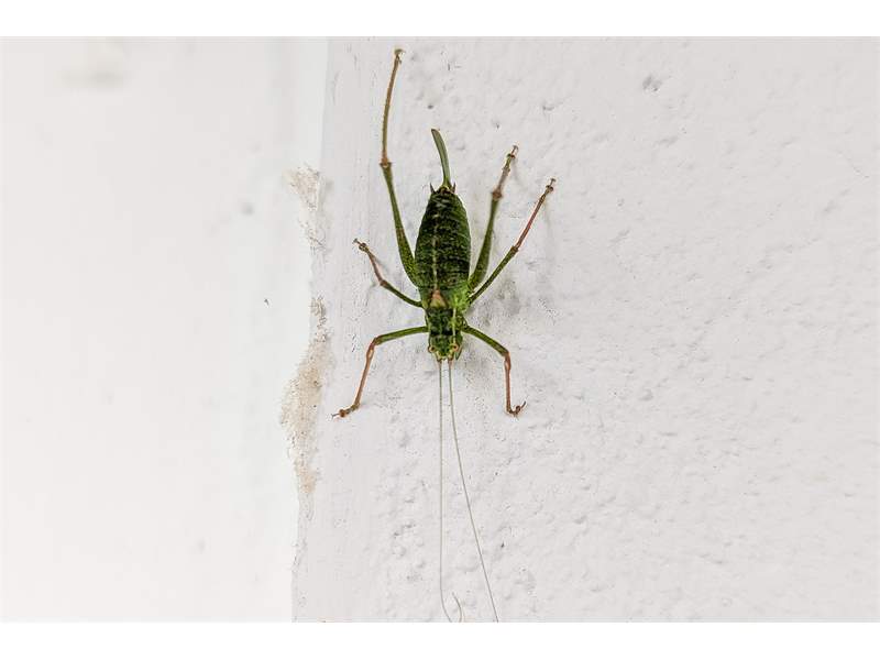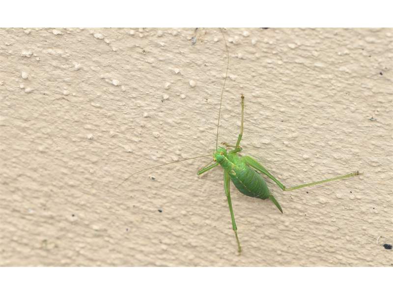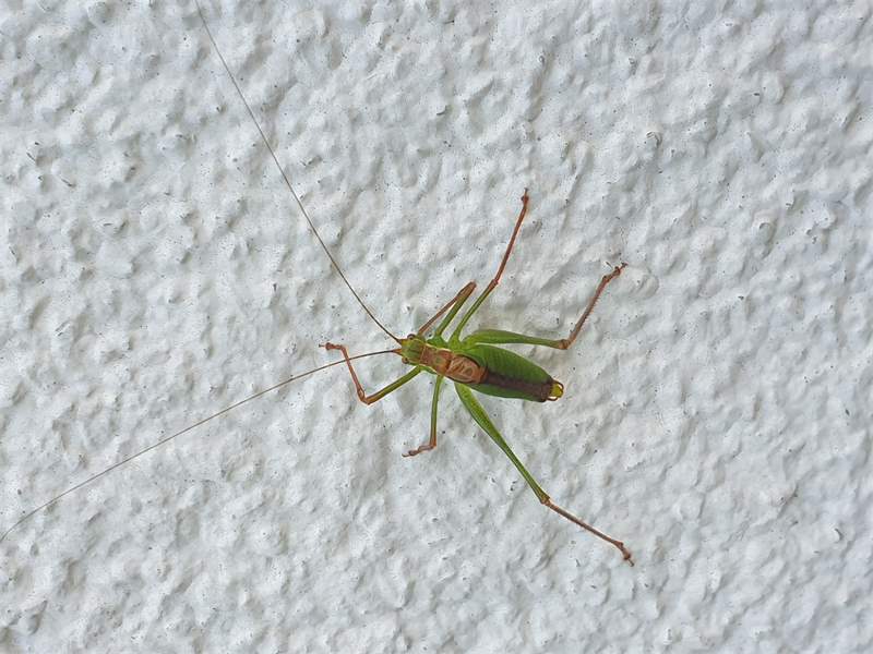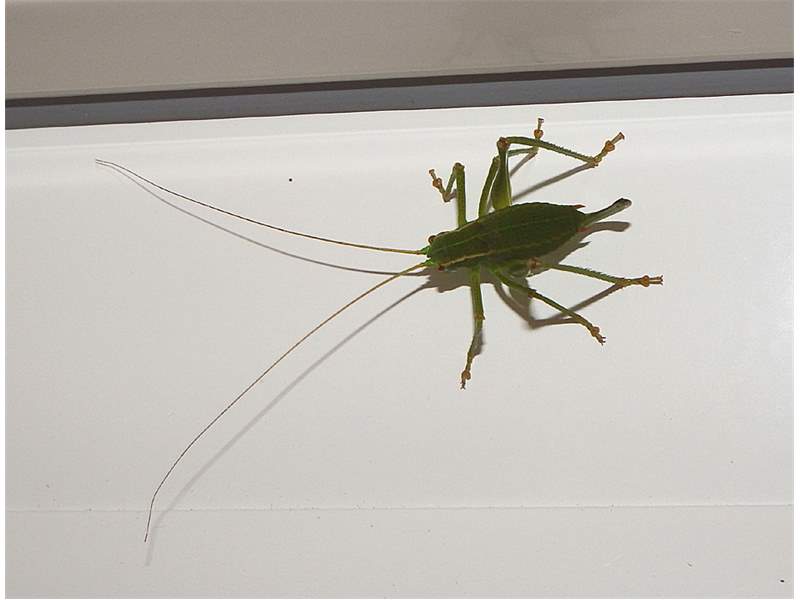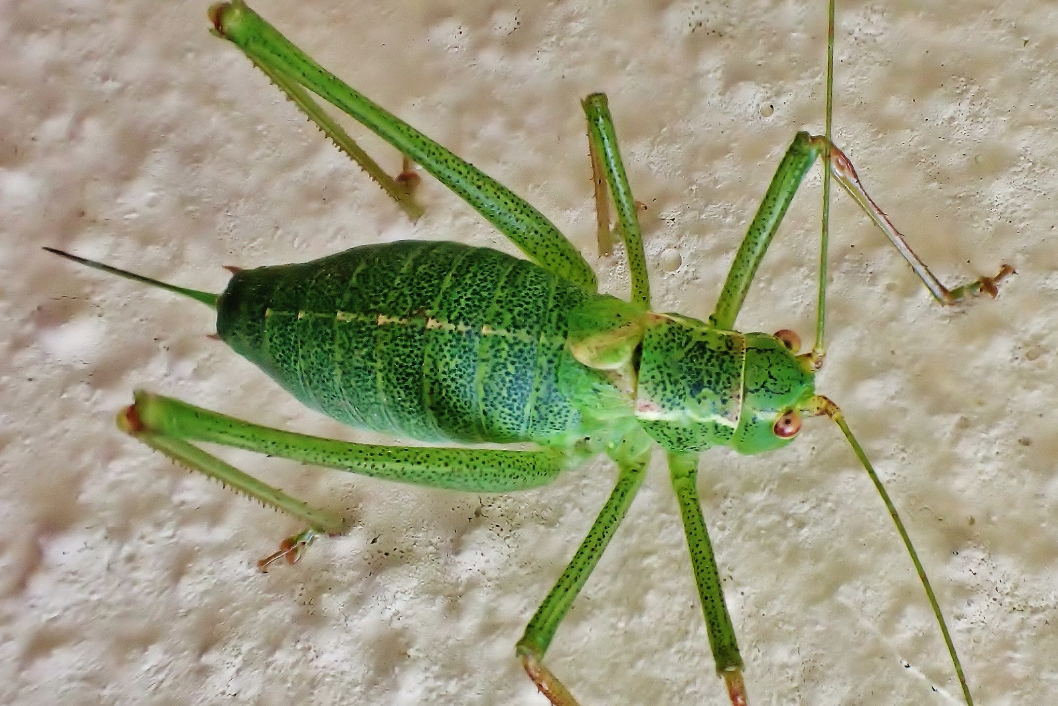 Punktierte Zartschrecke (Leptophyes punctatissima (Bosc, 1792), Irrgast im Gebäude, Dresden, 22.10.2019 (© Frank Bittrich)( Bild vergrößern)