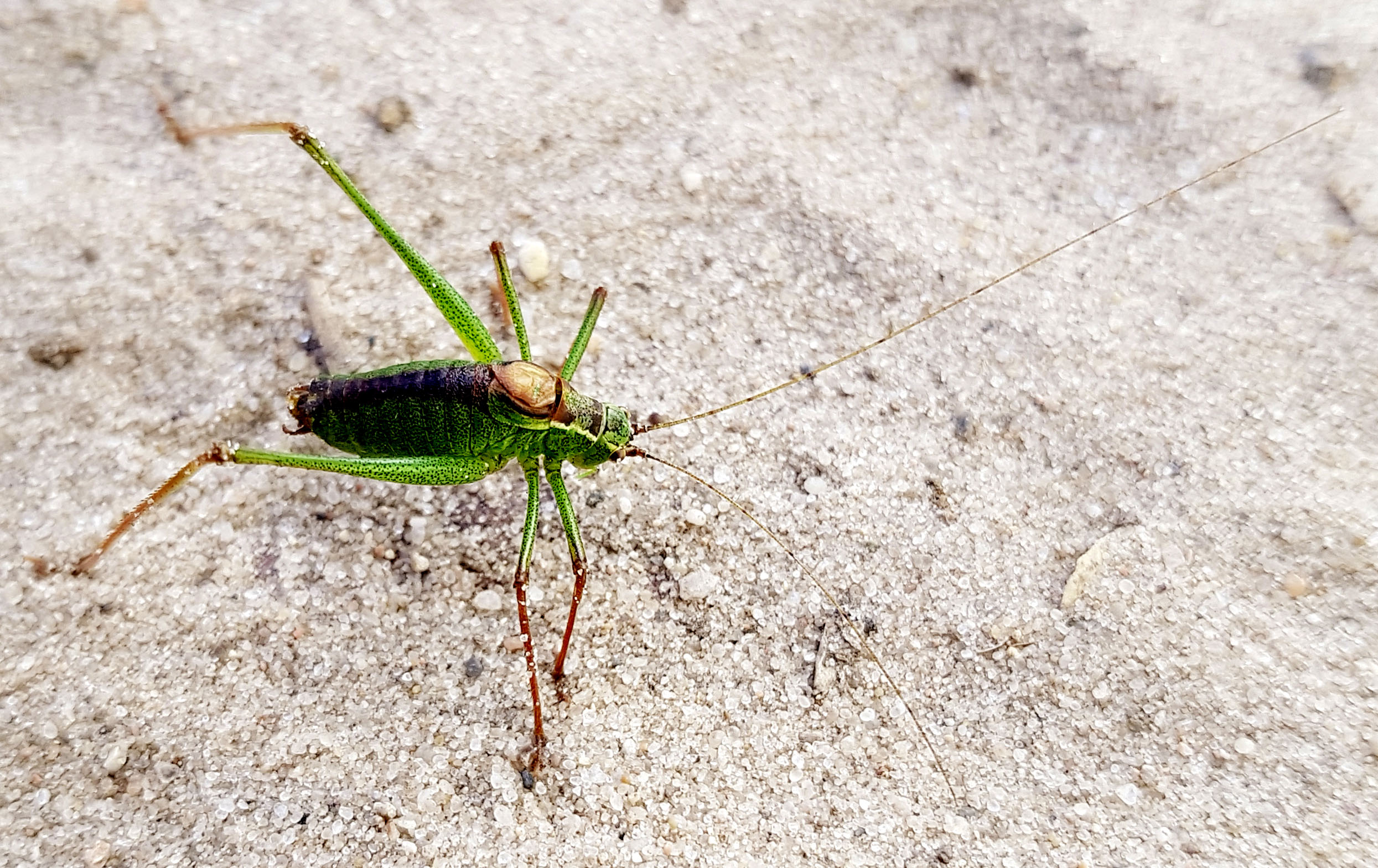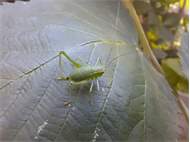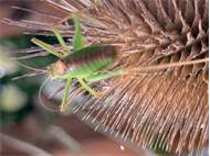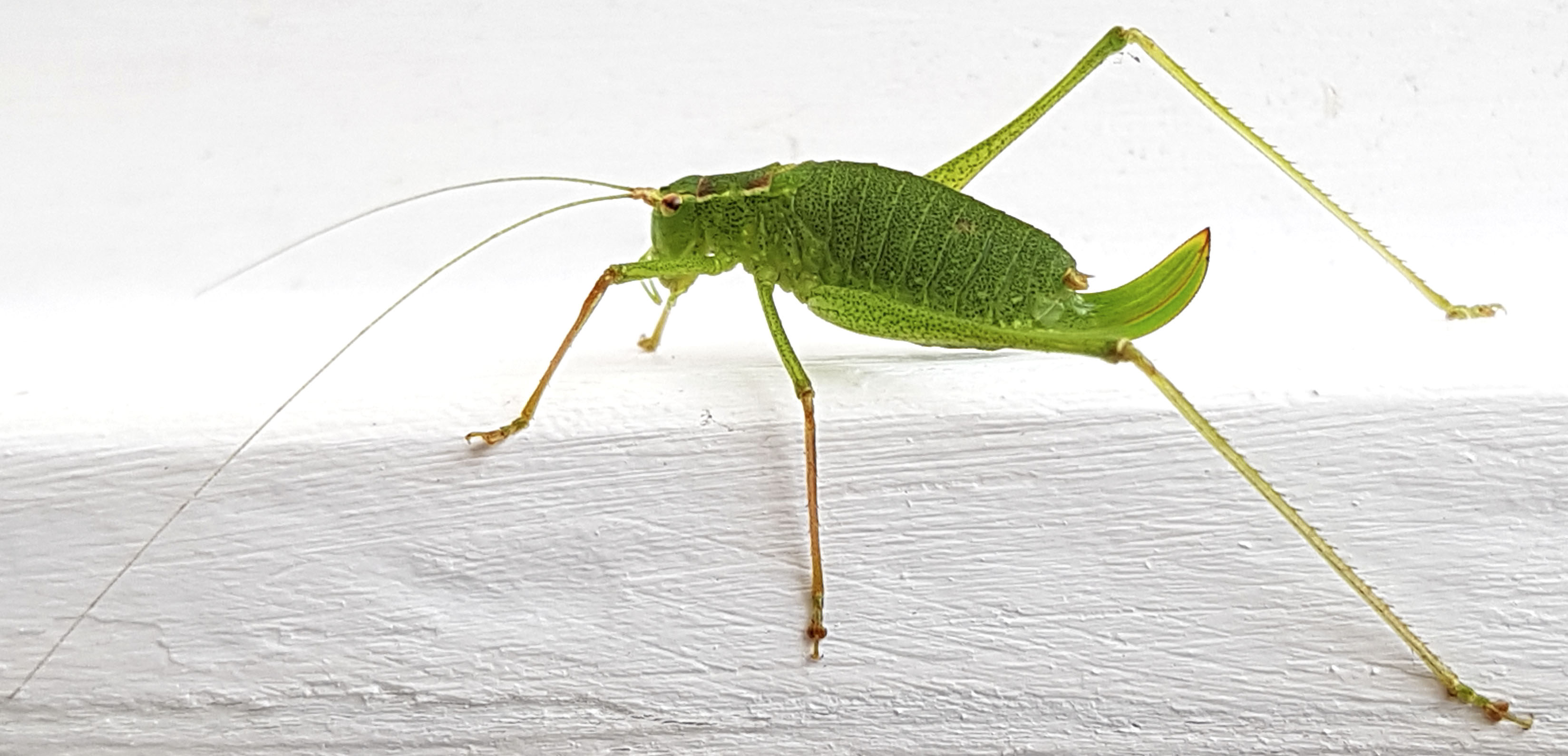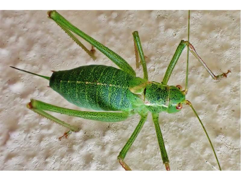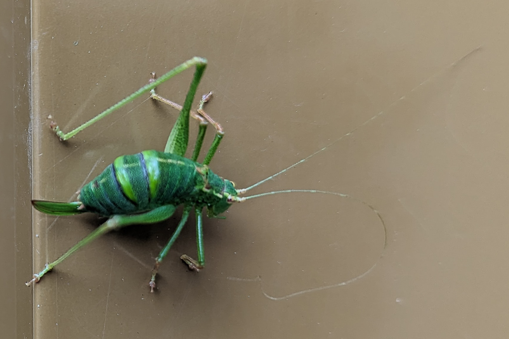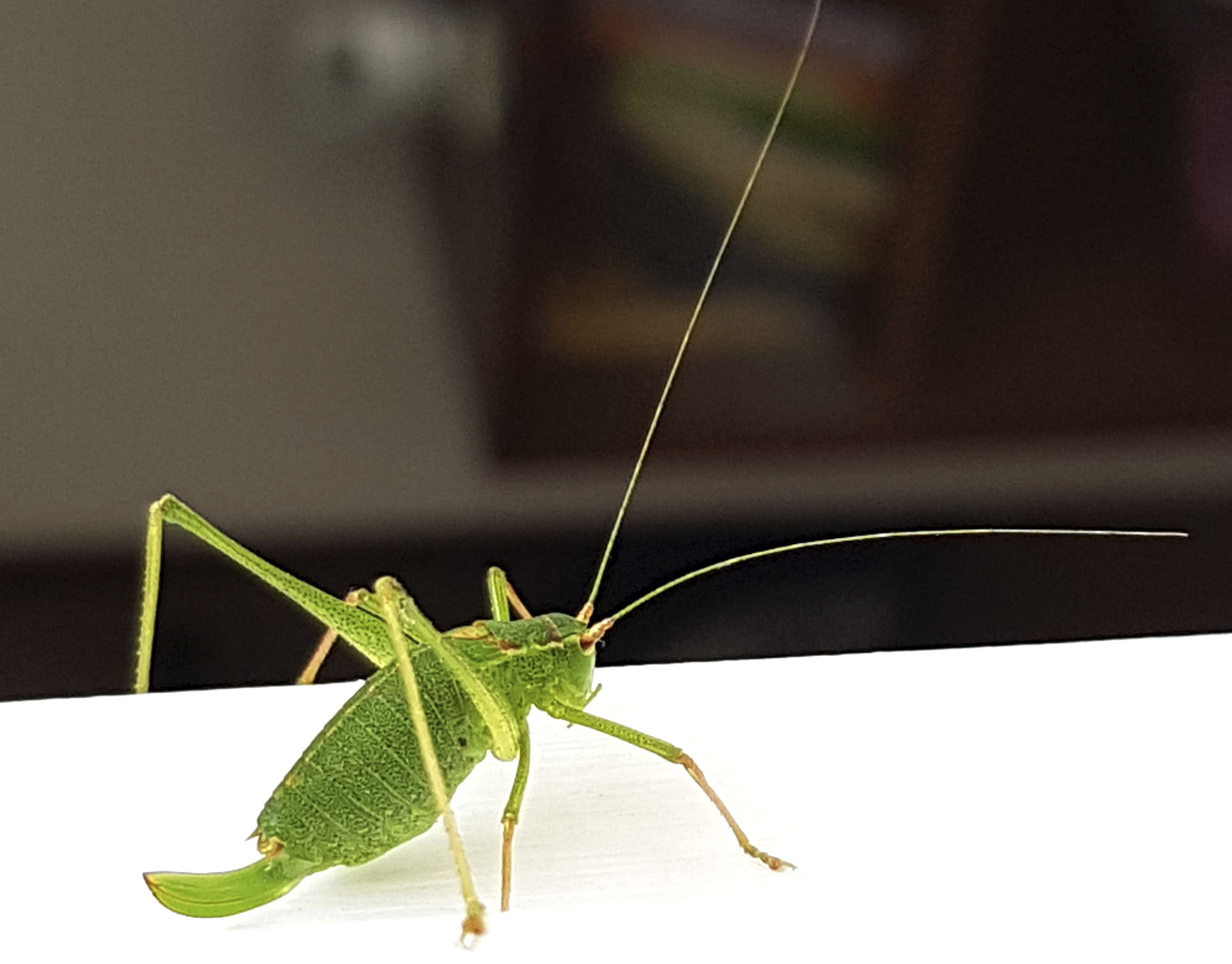 Punktierte Zartschrecke (Leptophyes punctatissima (Bosc, 1792), Irrgast im Gebäude, Dresden, 22.10.2019 (© Frank Bittrich)( Bild vergrößern)