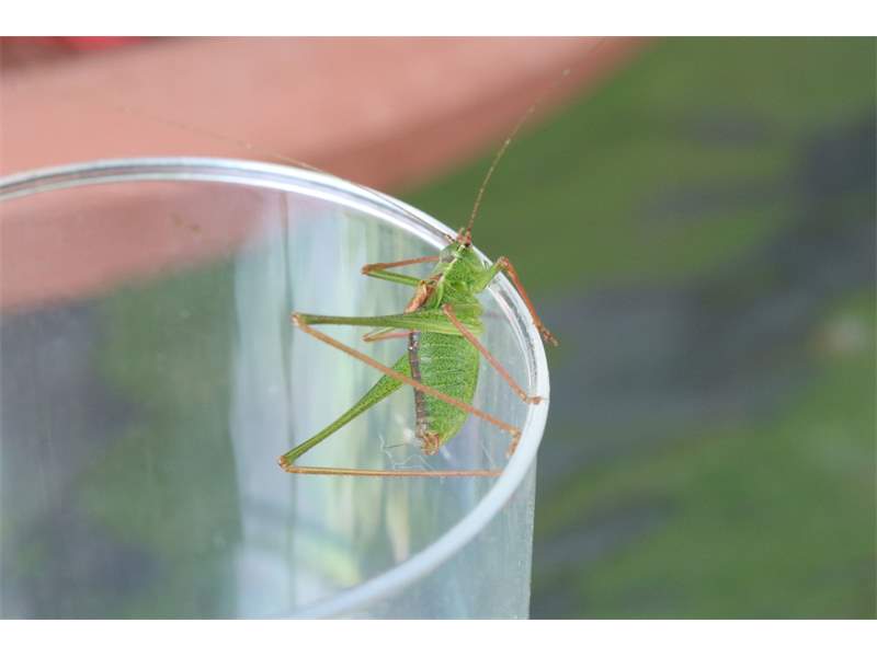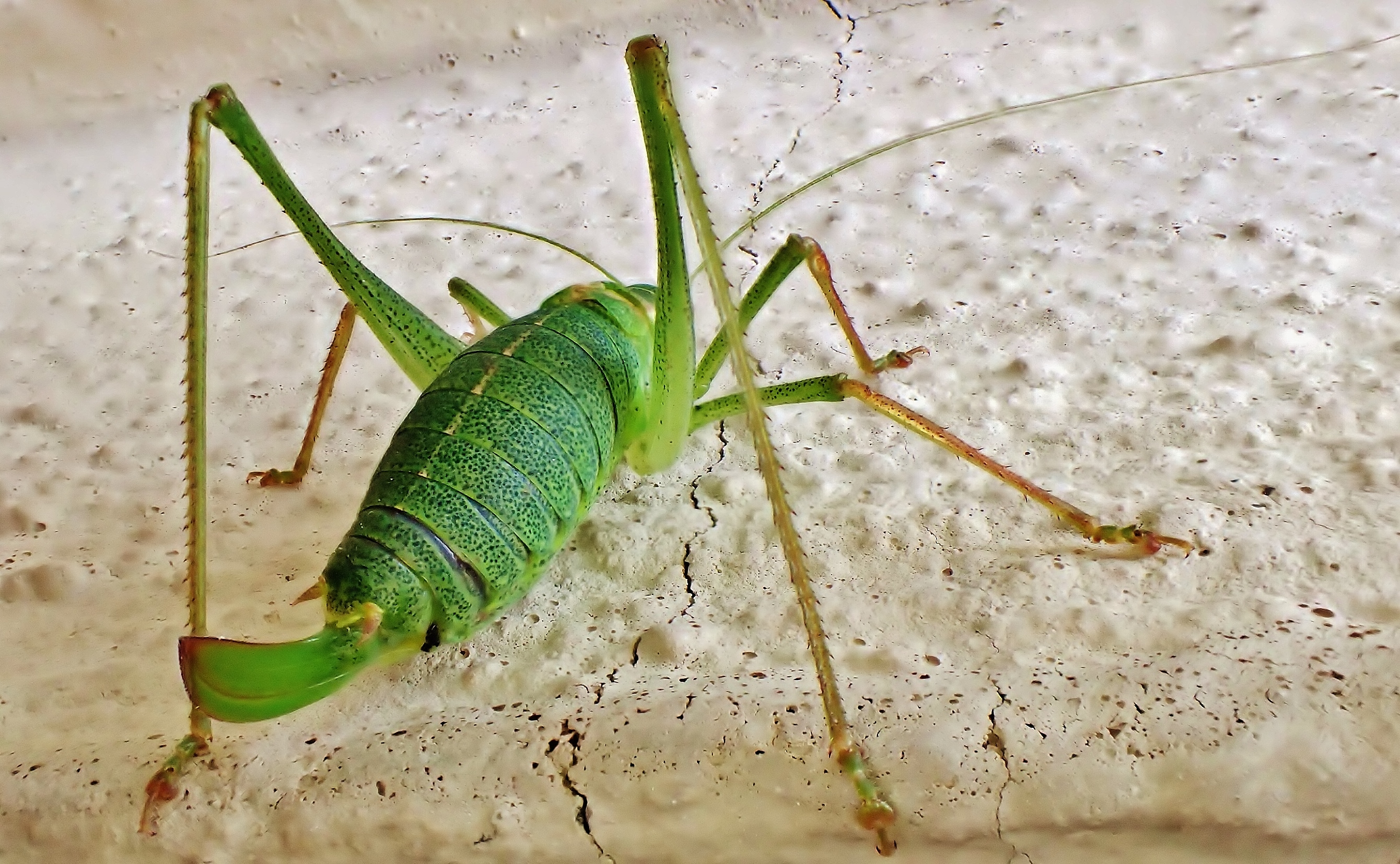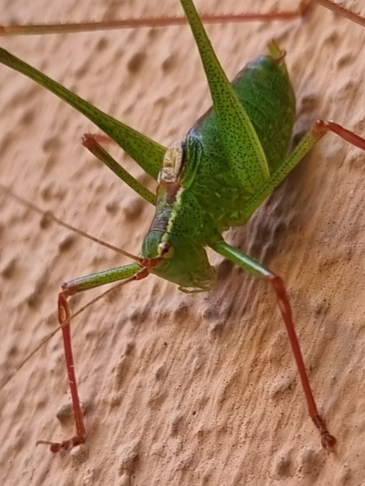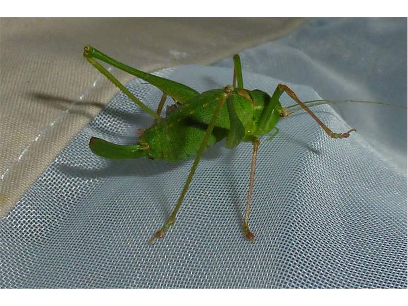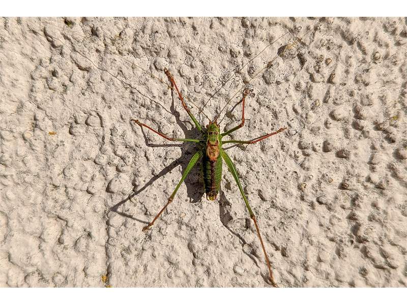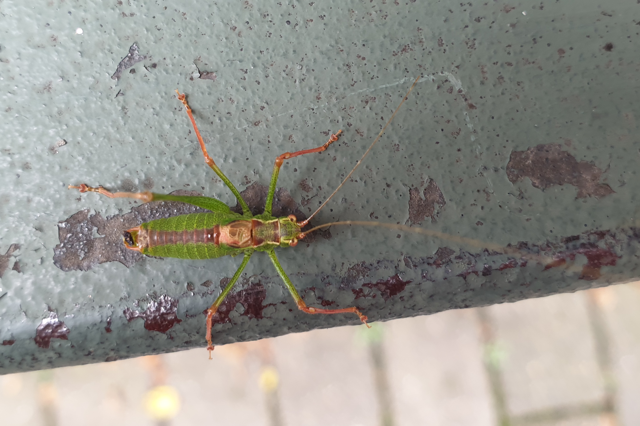 Punktierte Zartschrecke (Leptophyes punctatissima (Bosc, 1792), Irrgast im Gebäude, Dresden, 22.10.2019 (© Frank Bittrich)( Bild vergrößern)