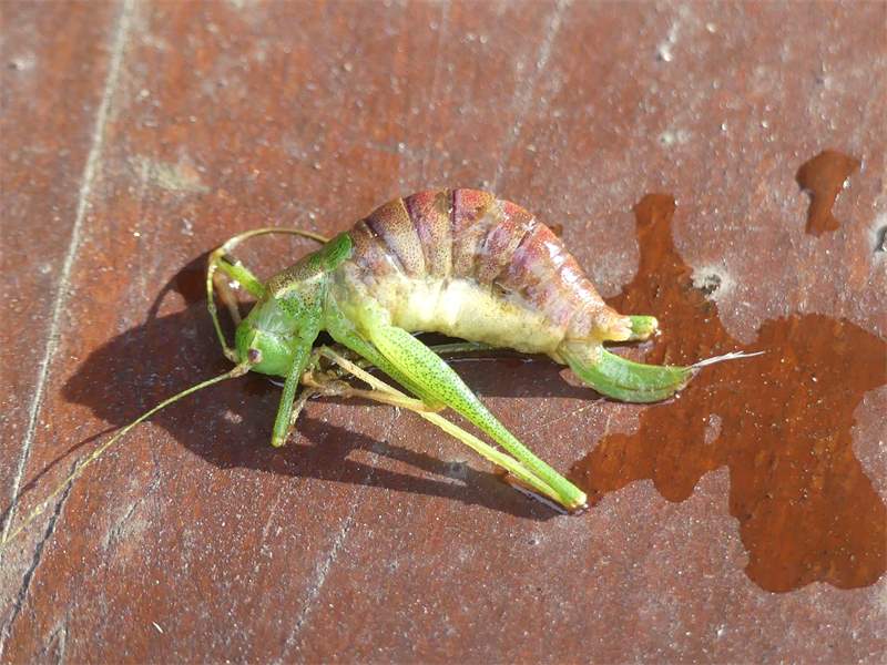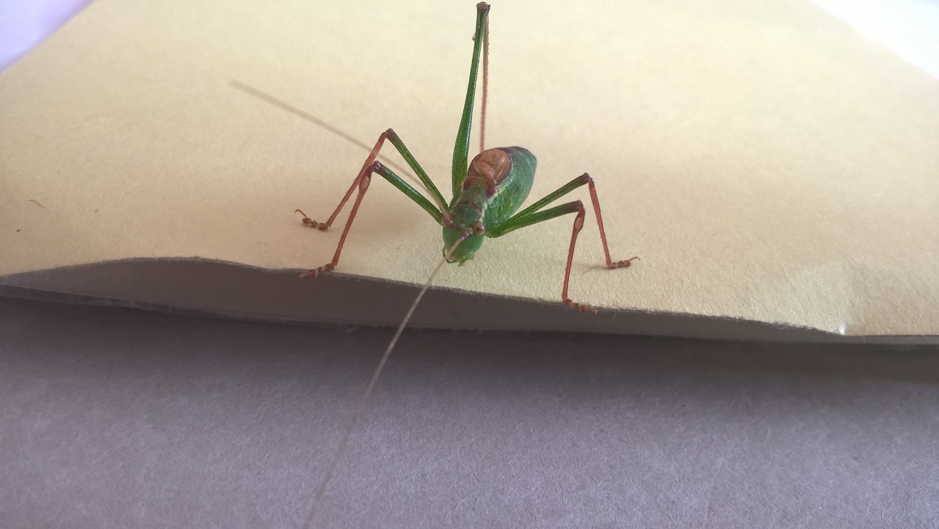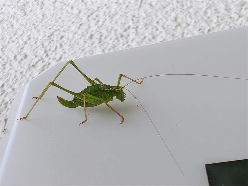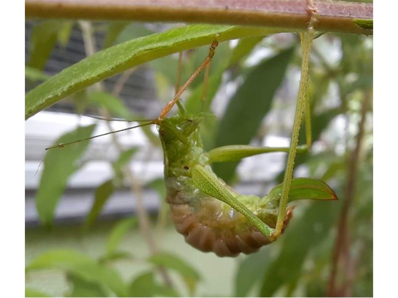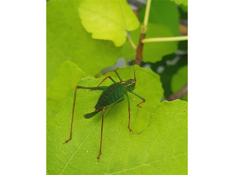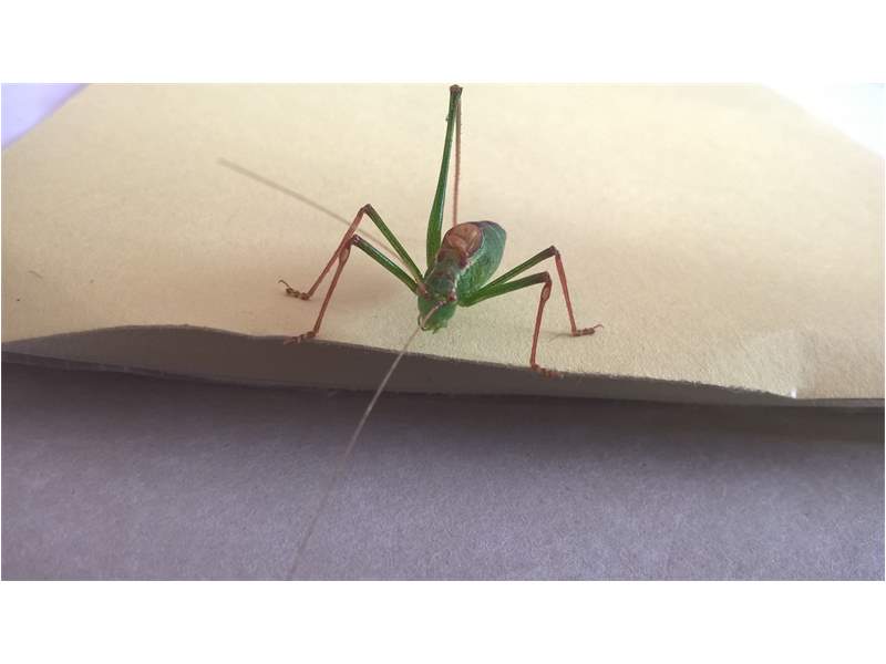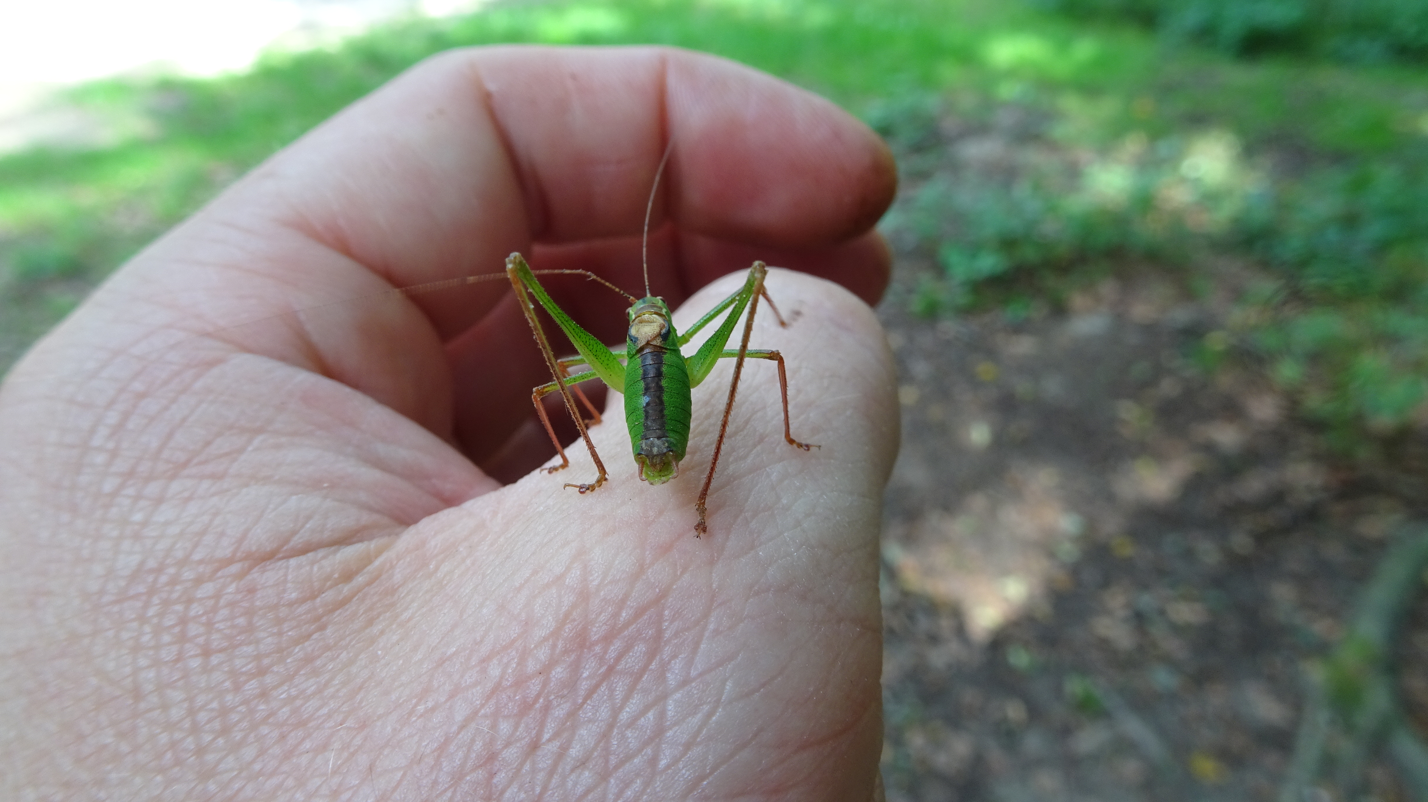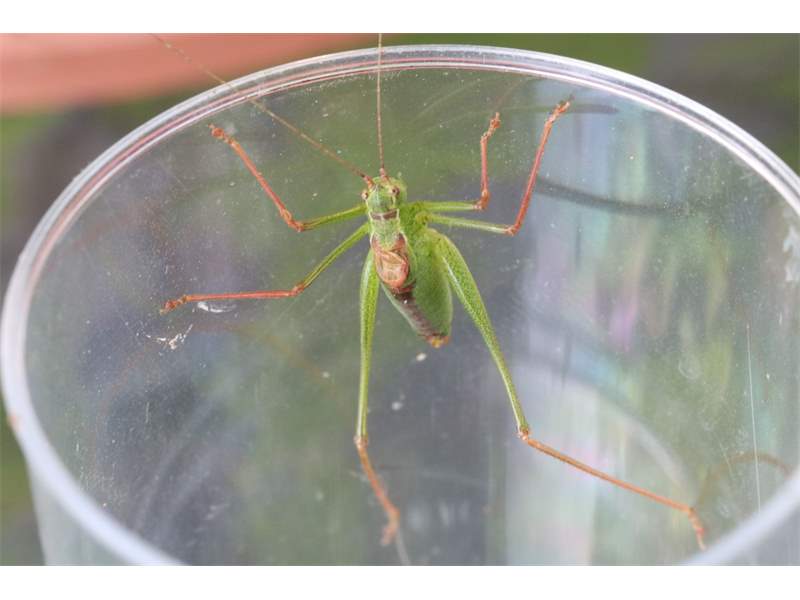 Punktierte Zartschrecke (Leptophyes punctatissima (Bosc, 1792), Irrgast im Gebäude, Dresden, 22.10.2019 (© Frank Bittrich)( Bild vergrößern)
