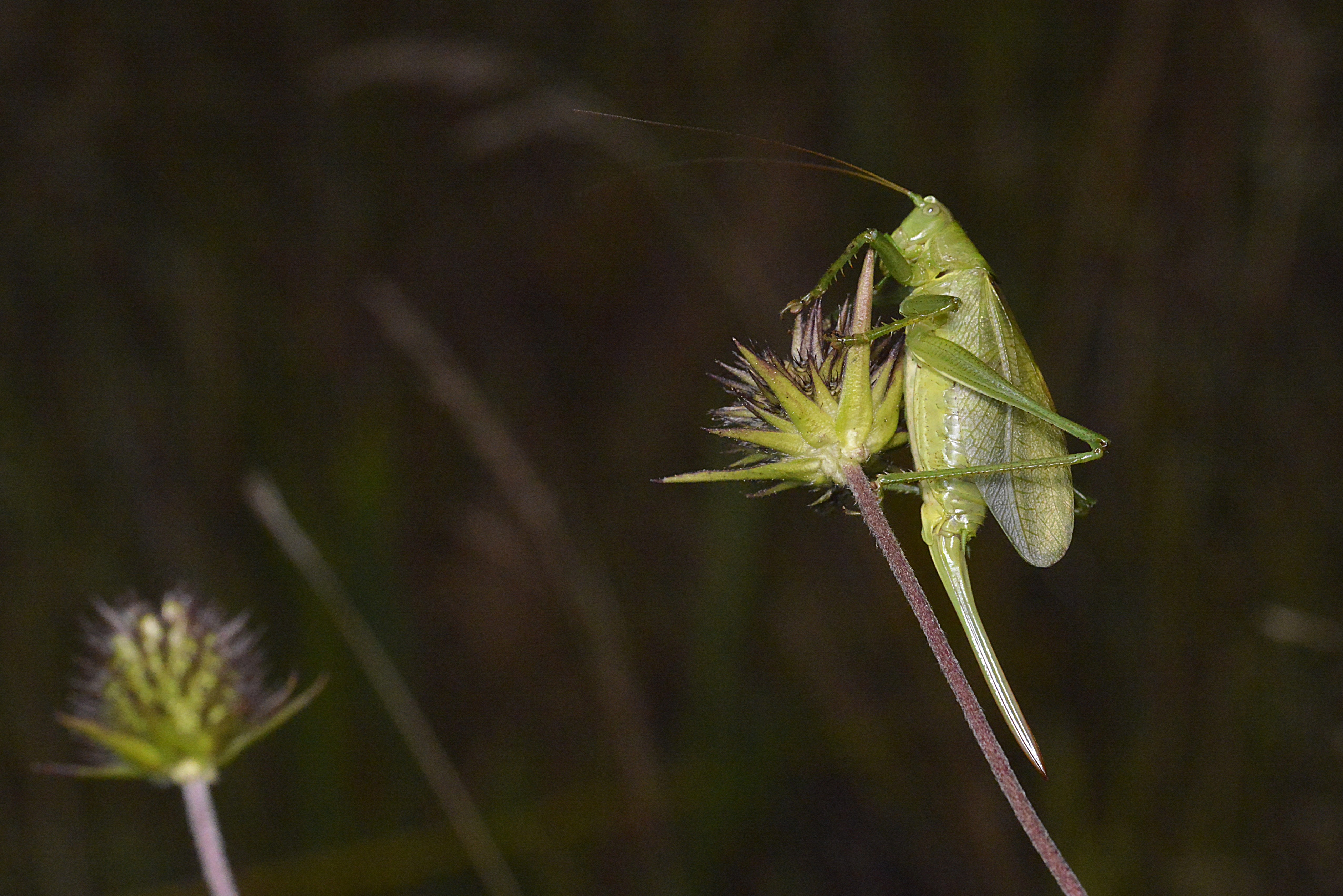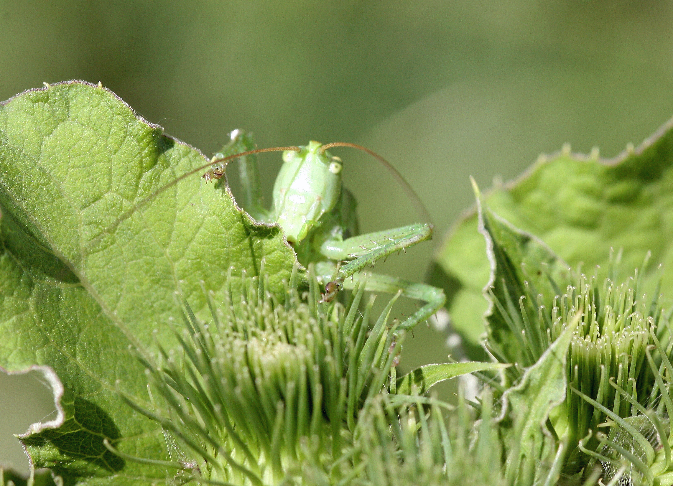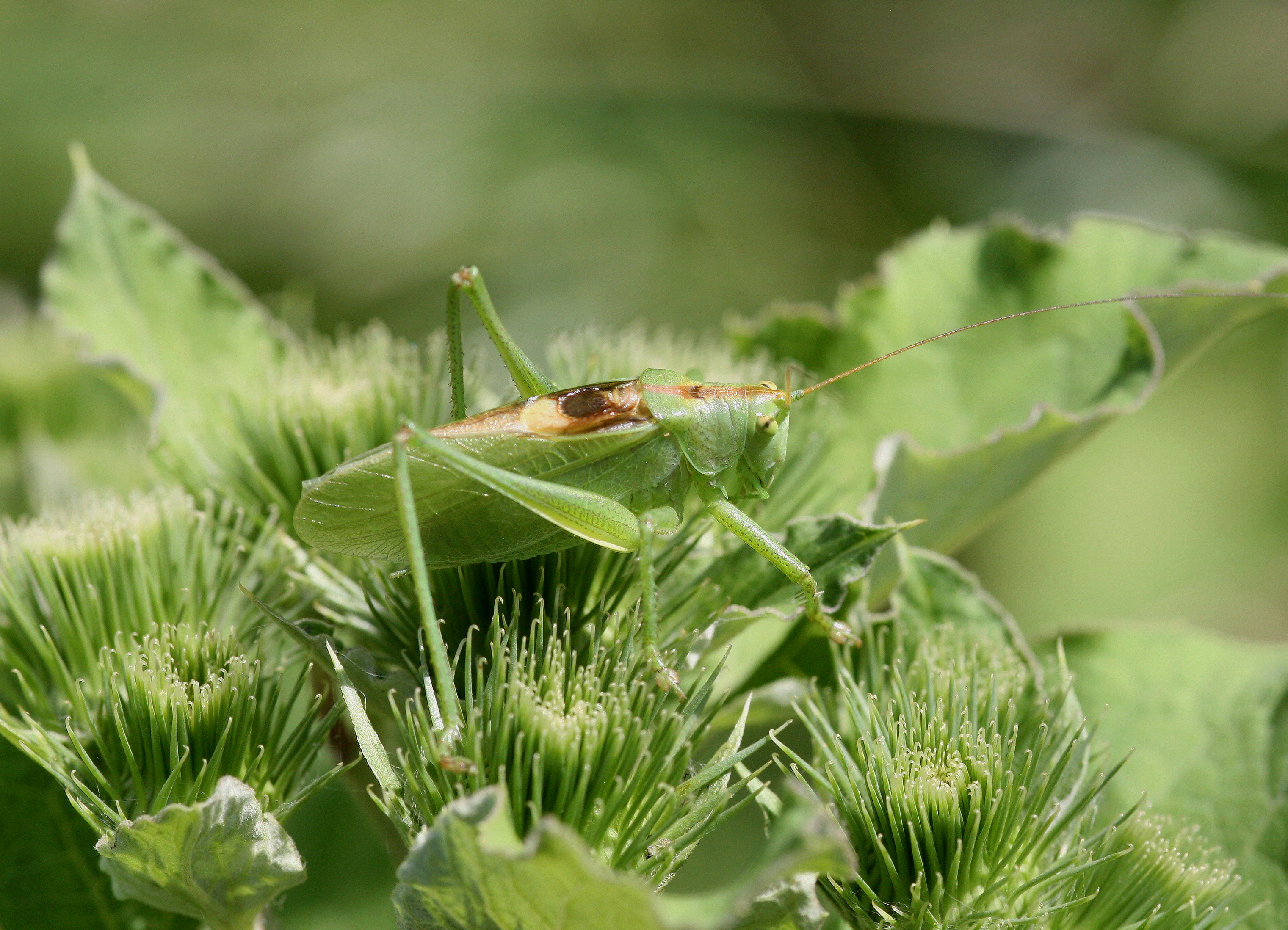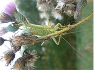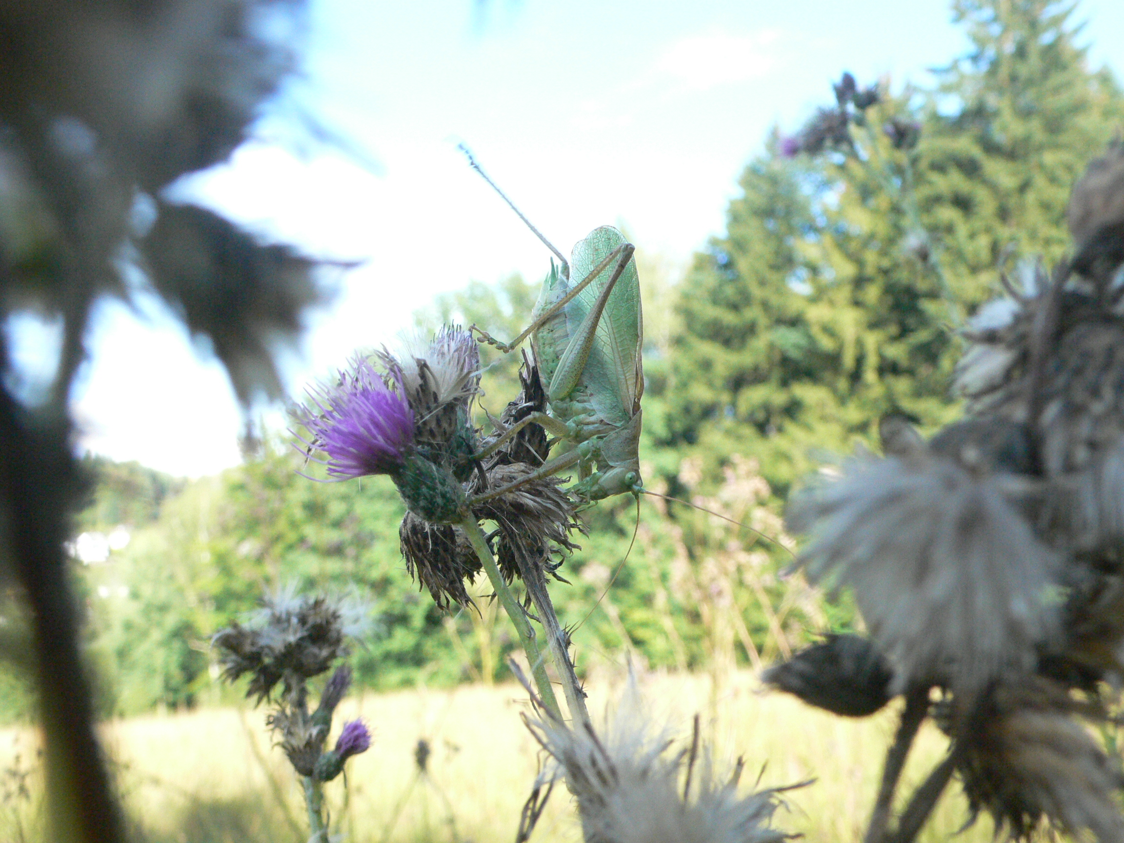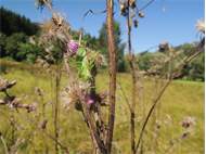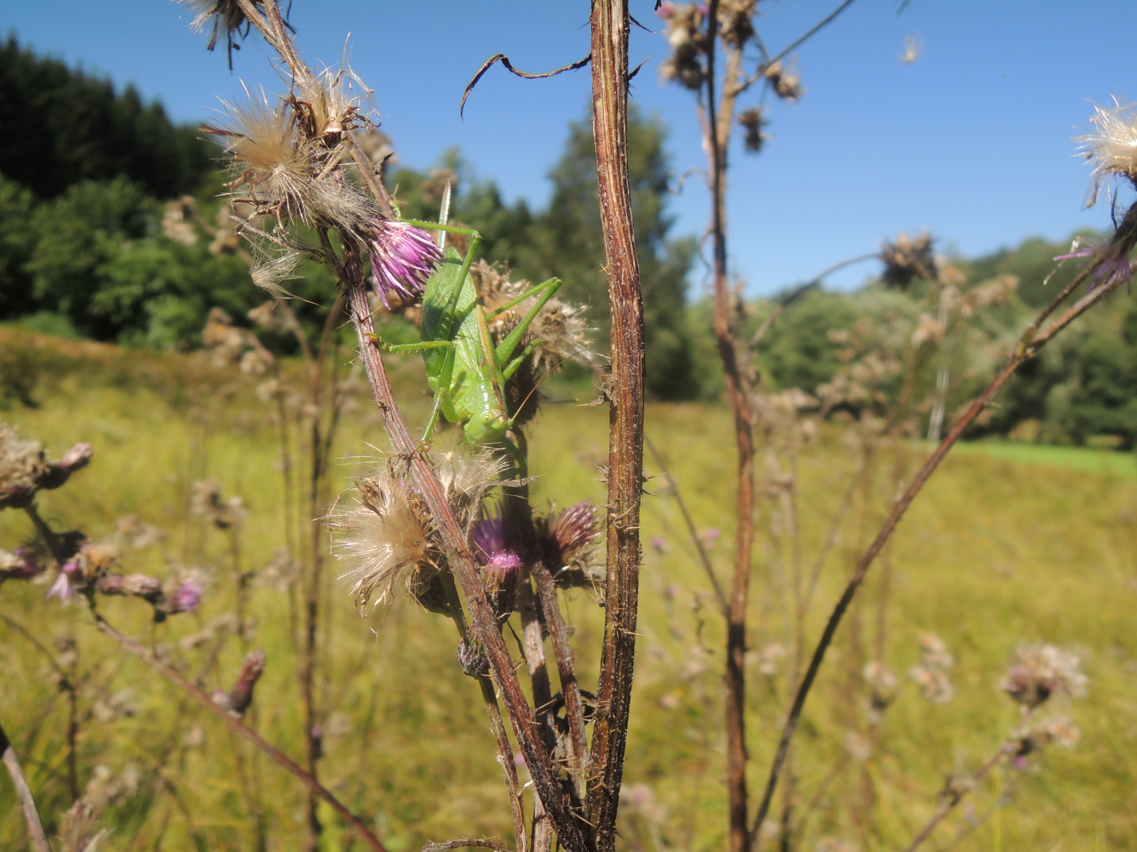 Tettigonia catans auf Cirsium palustre, Feuchtwiese bei Geyersdorf (Schmetterlingswiese 25), 25.08.2016