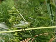 Zwitscherschreckenlarve am 01.07.2014 auf einem Glashütter Wiesenhang