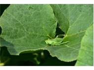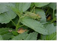 Zwitscherschrecke (w) im Gemüsegarten, Dresden, Schönfelder Hochland, Juli 2017