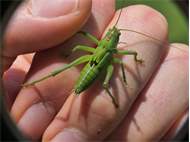 Eine männliche Zwitscherschrecke aus dem Erzgebirge bei Freiberg. 28.07.2008