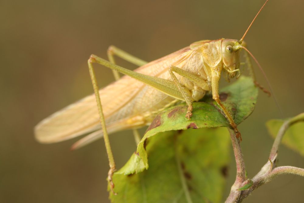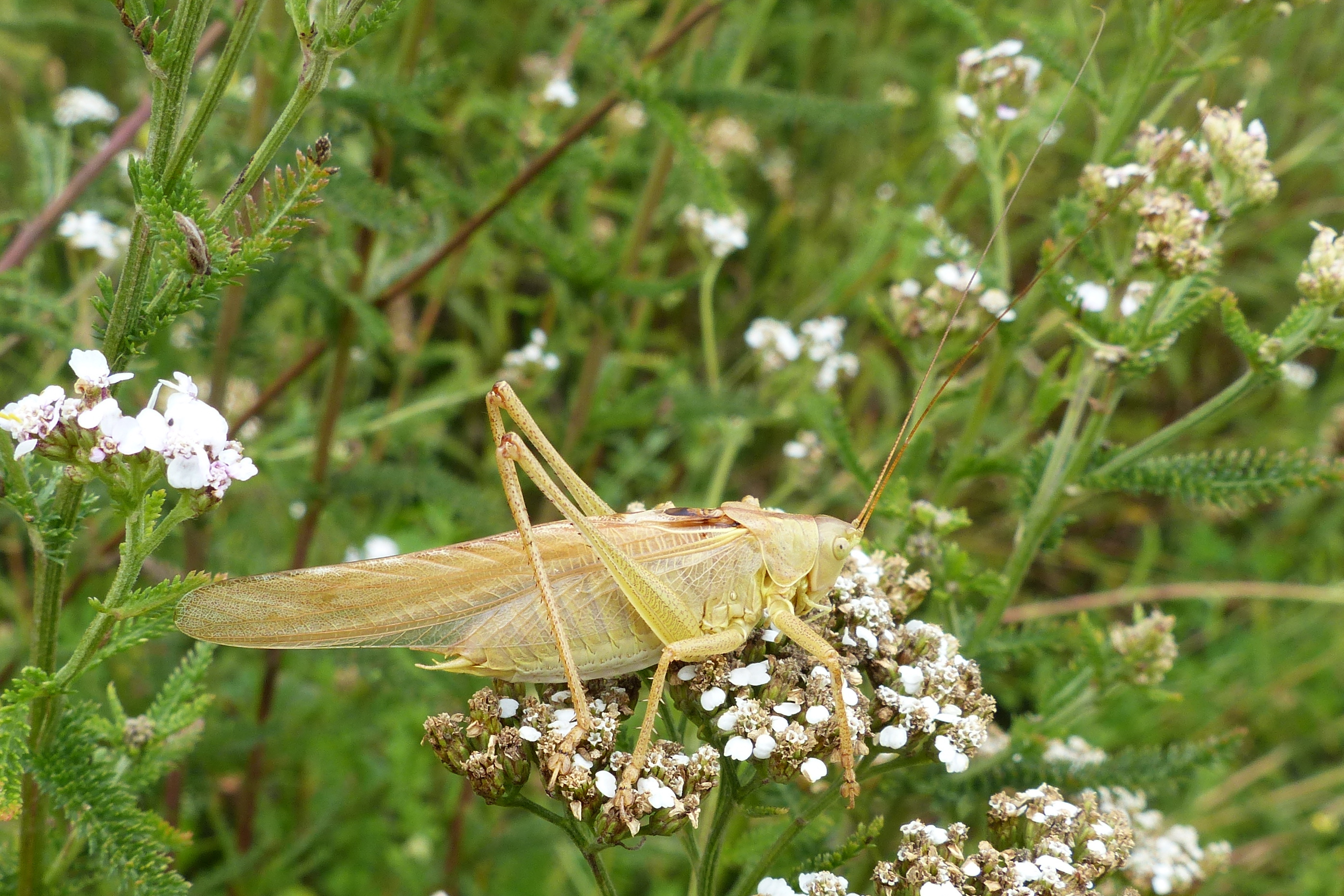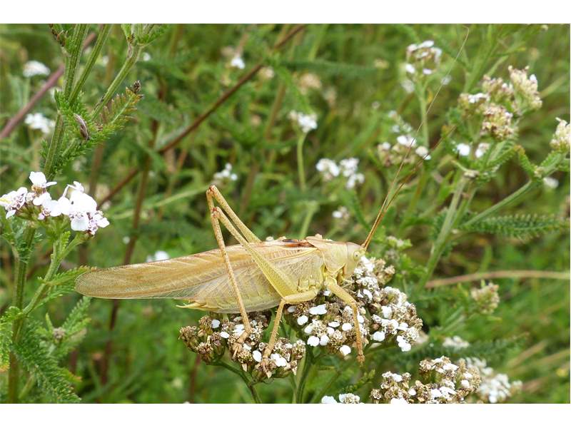 Ein weibliches Grünes Heupferd in der selteneren gelben Farbvariante. Tharandt, Johannishöhe, 02.07.2011