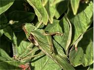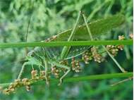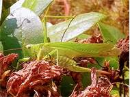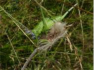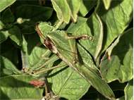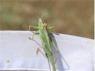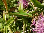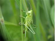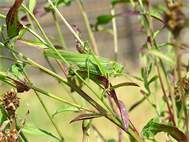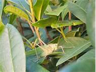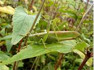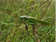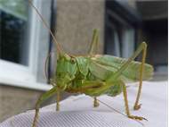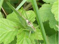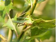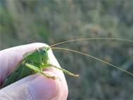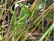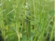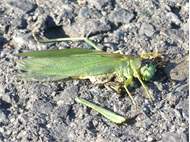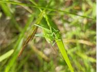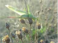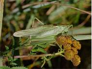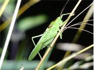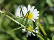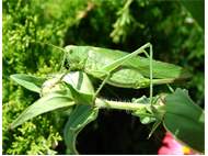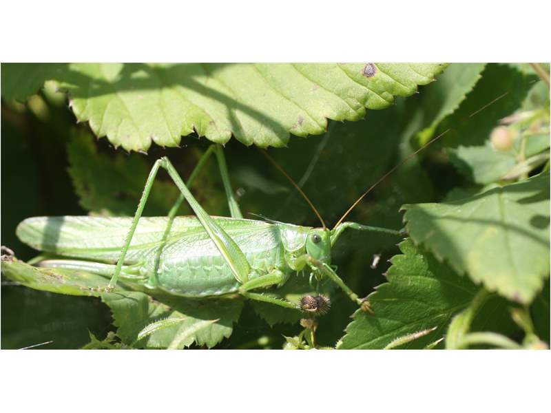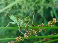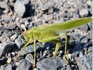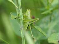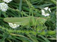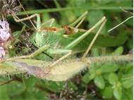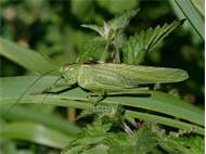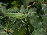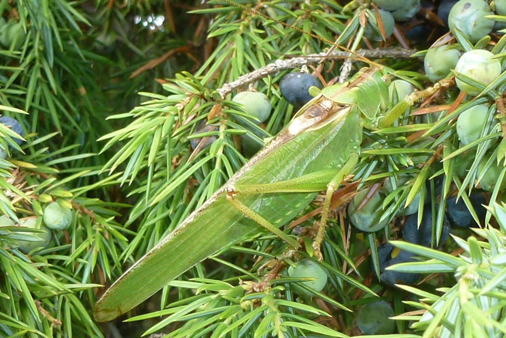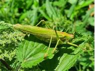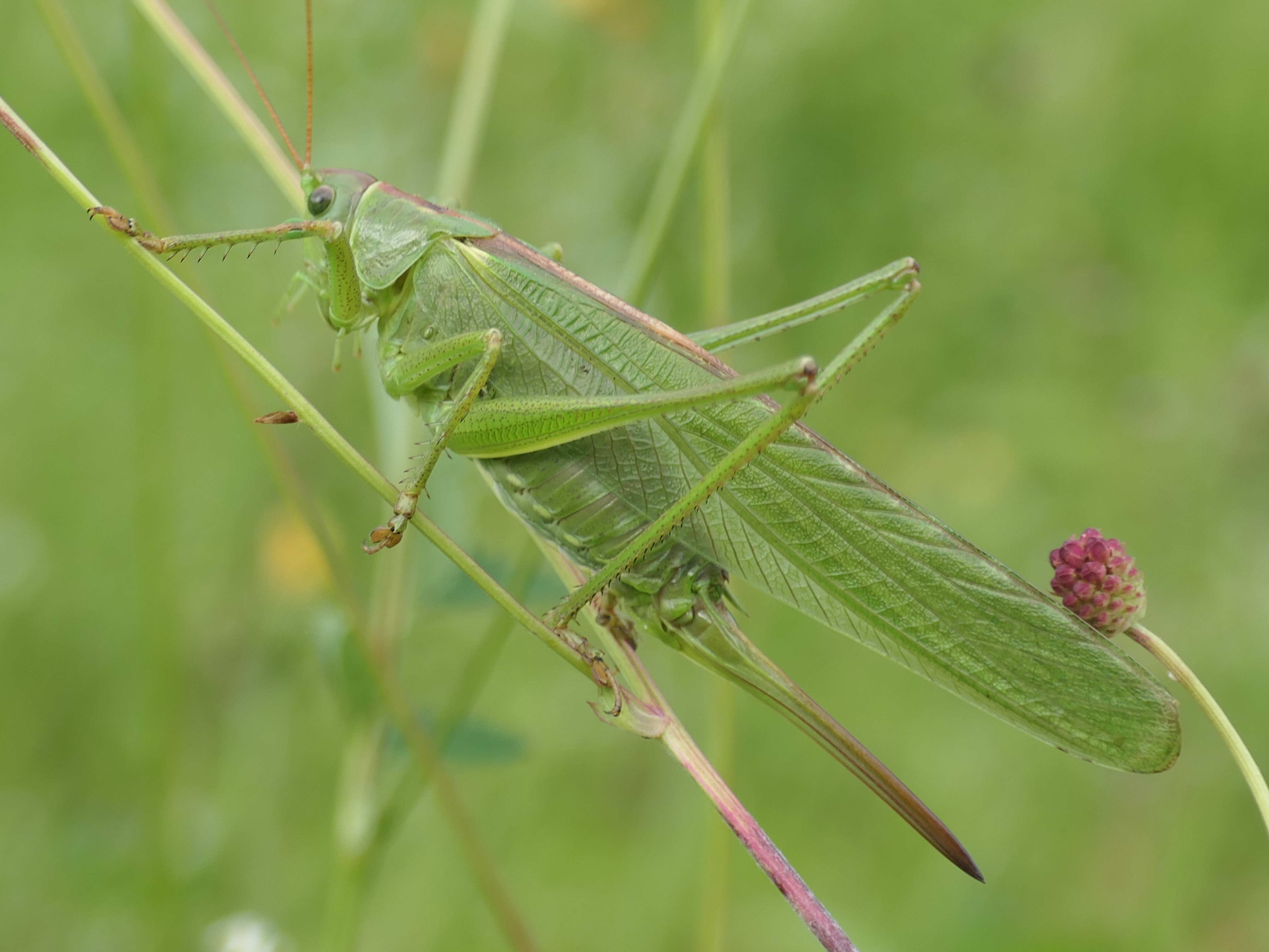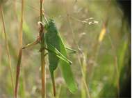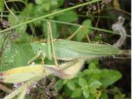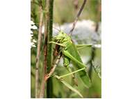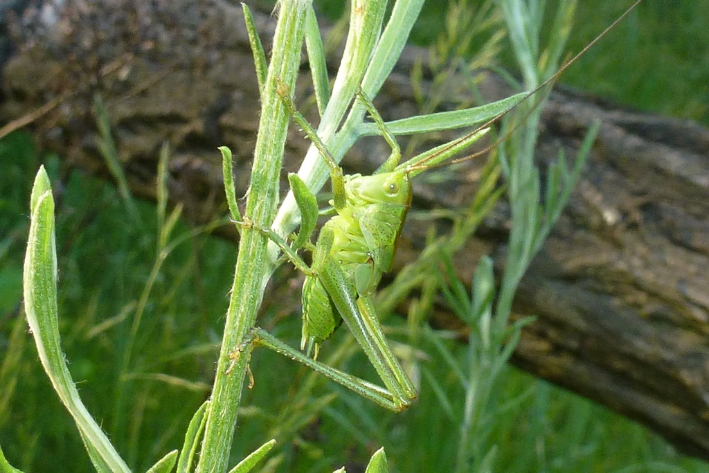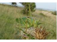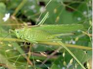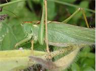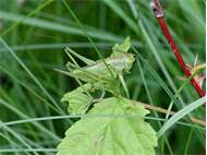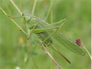 Grünes Heupferd (Tettigonia viridissima (Linnaeus, 1758)), Laue, Rekultivierungsbereich der Tagebaulandschaft Goitzsche östlich vom Seelhausener See, nahe Leipzig, 16. Juni 2019 (© Heinz Sass)( Bild vergrößern)