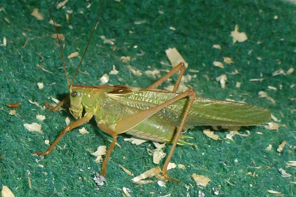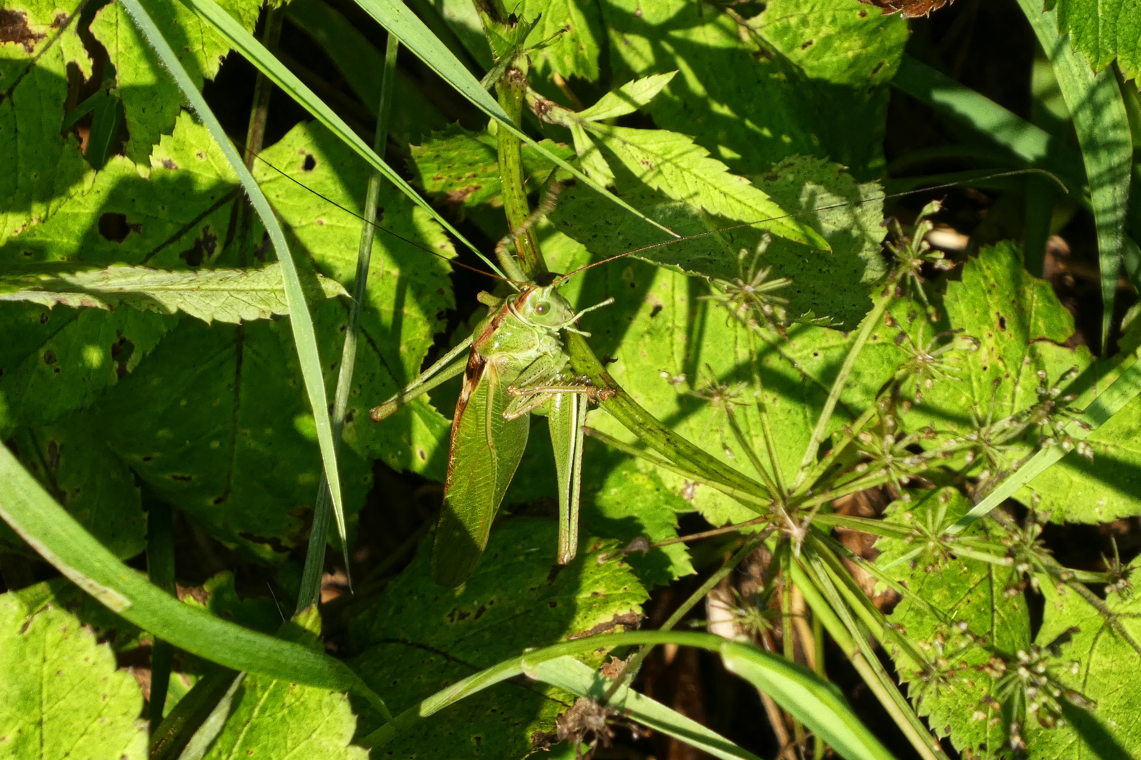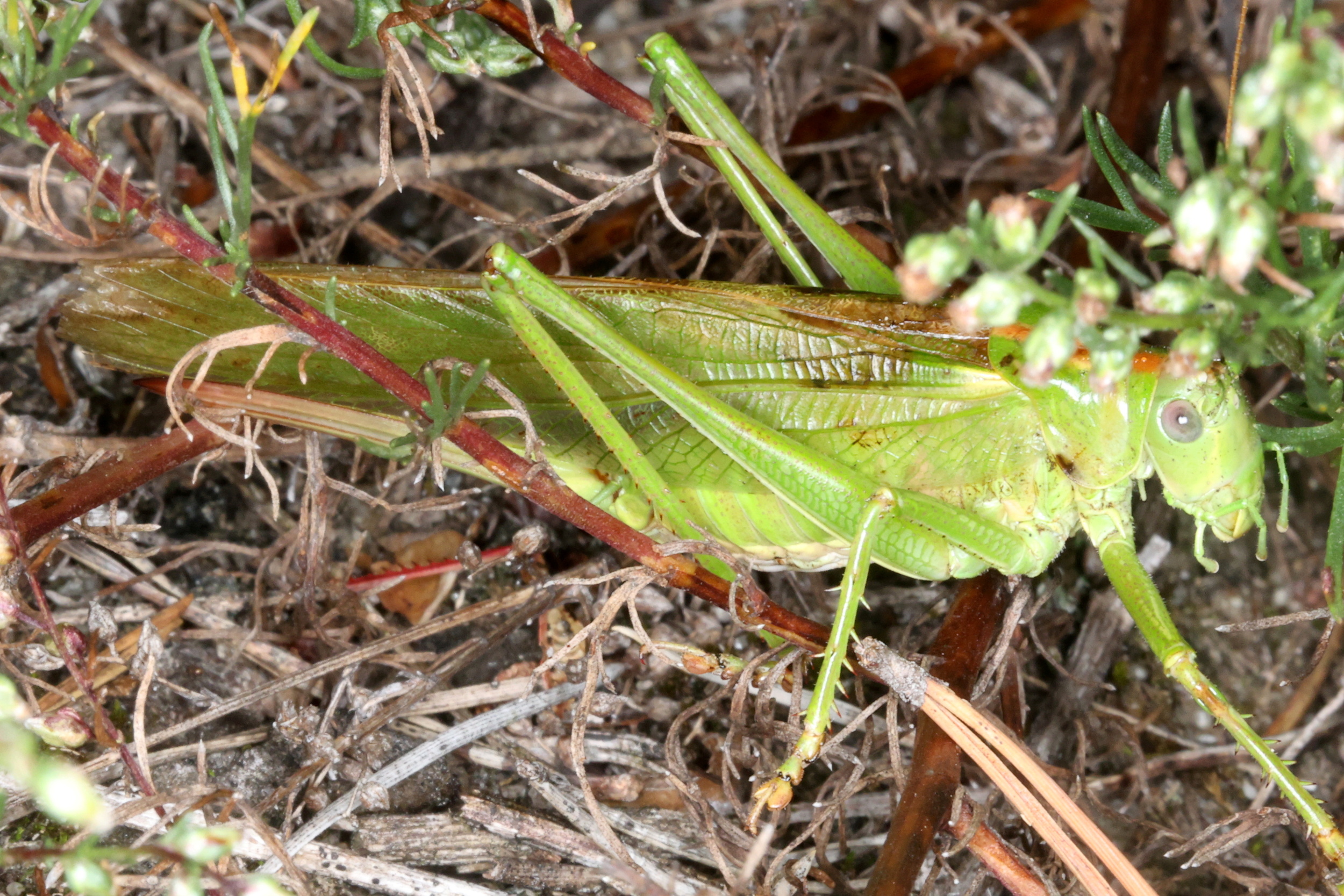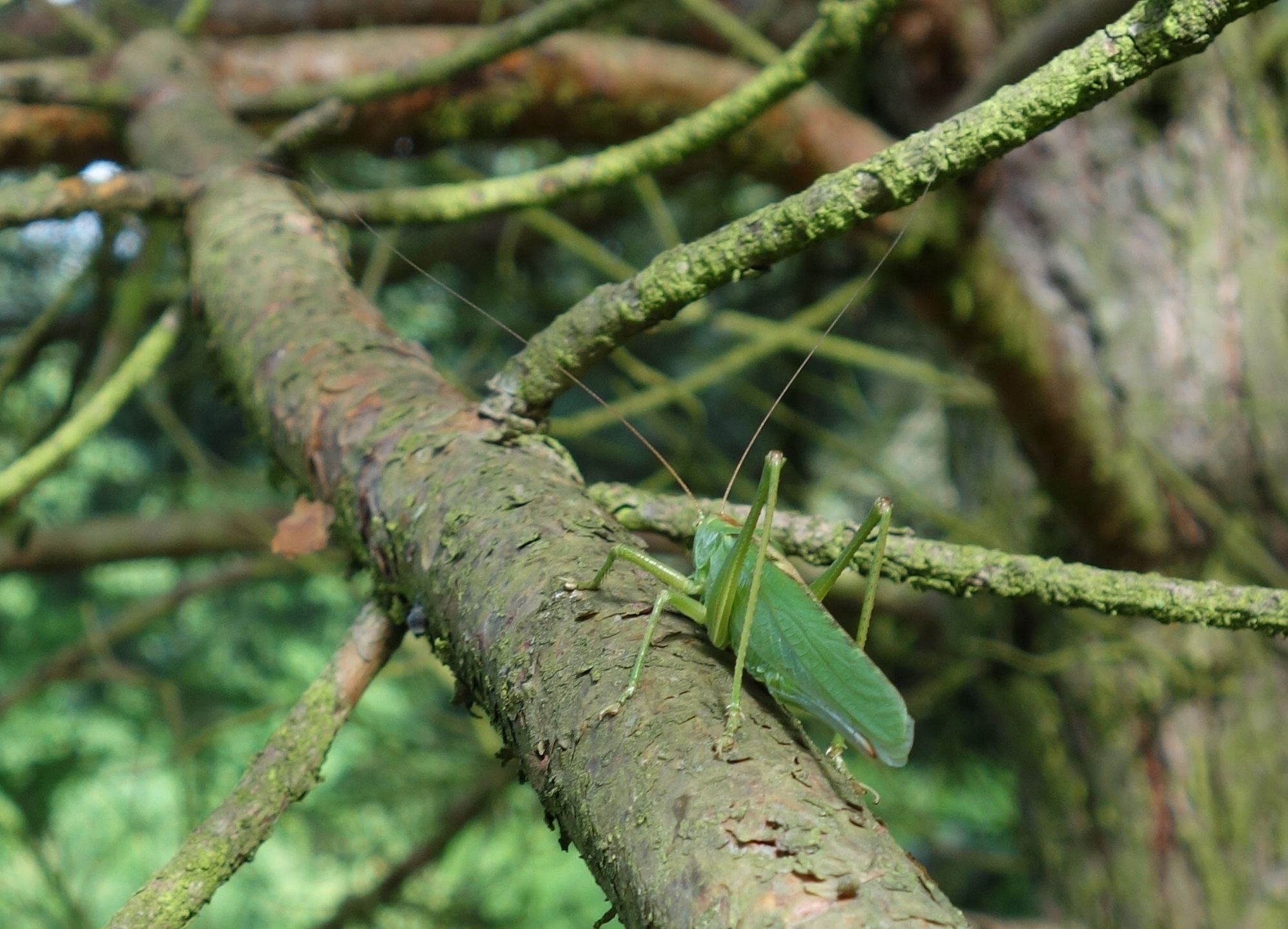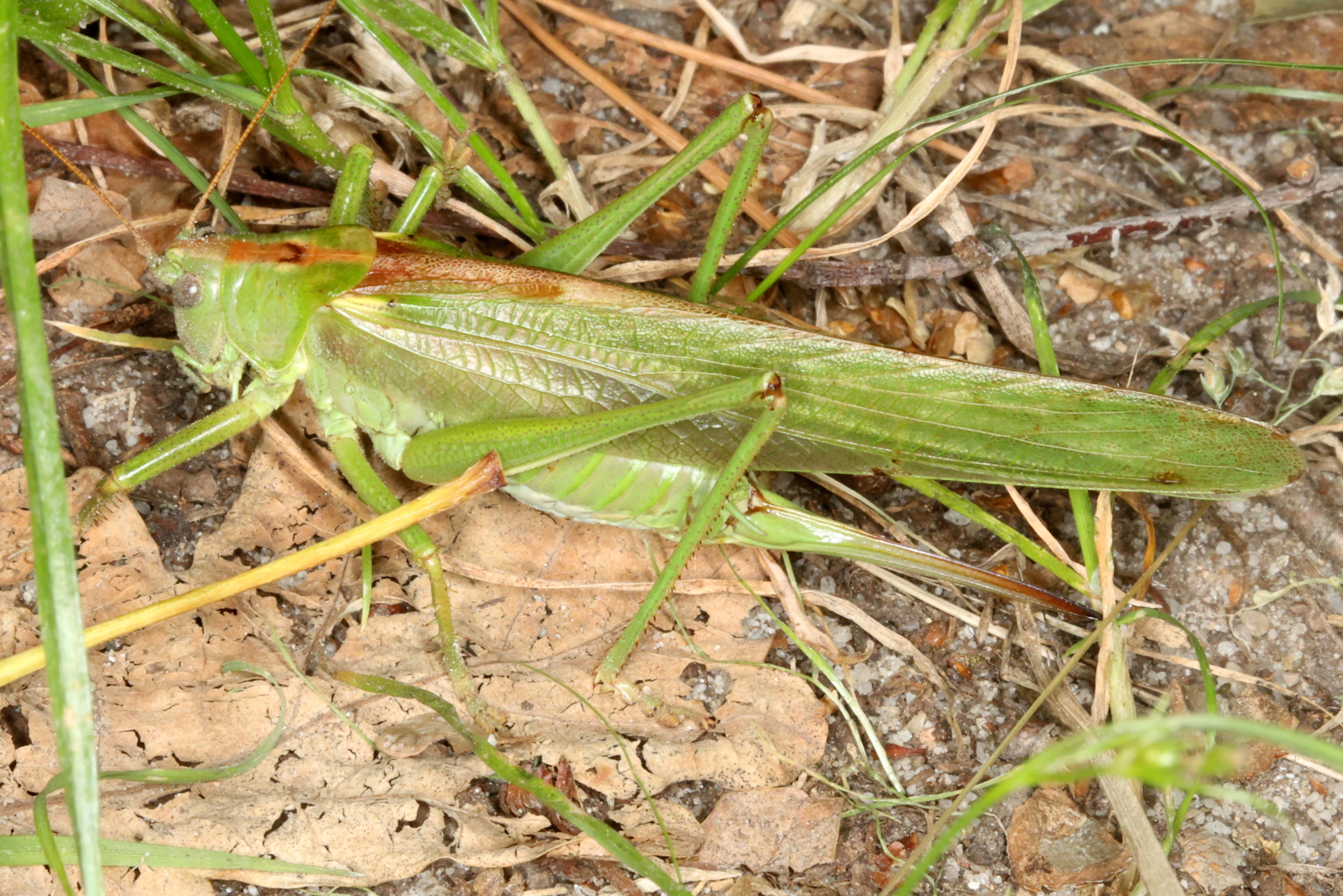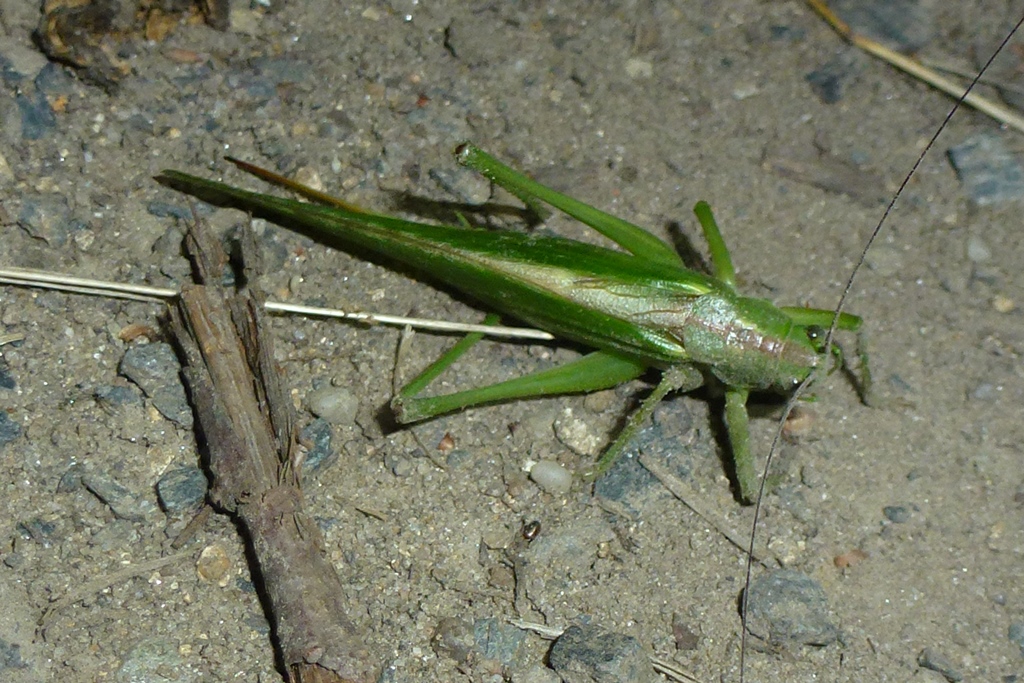 Grünes Heupferd (Tettigonia viridissima (Linnaeus, 1758)), Laue, Rekultivierungsbereich der Tagebaulandschaft Goitzsche östlich vom Seelhausener See, nahe Leipzig, 16. Juni 2019
