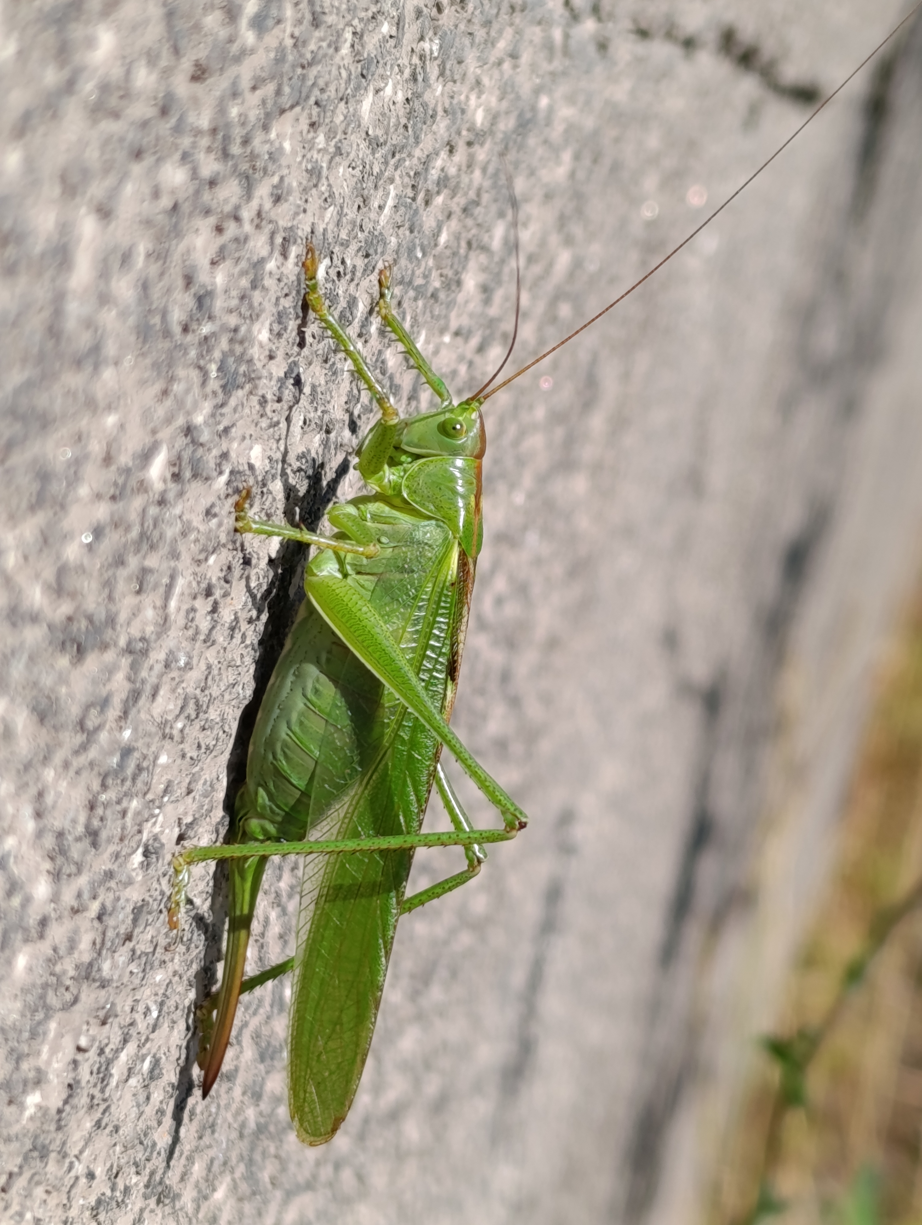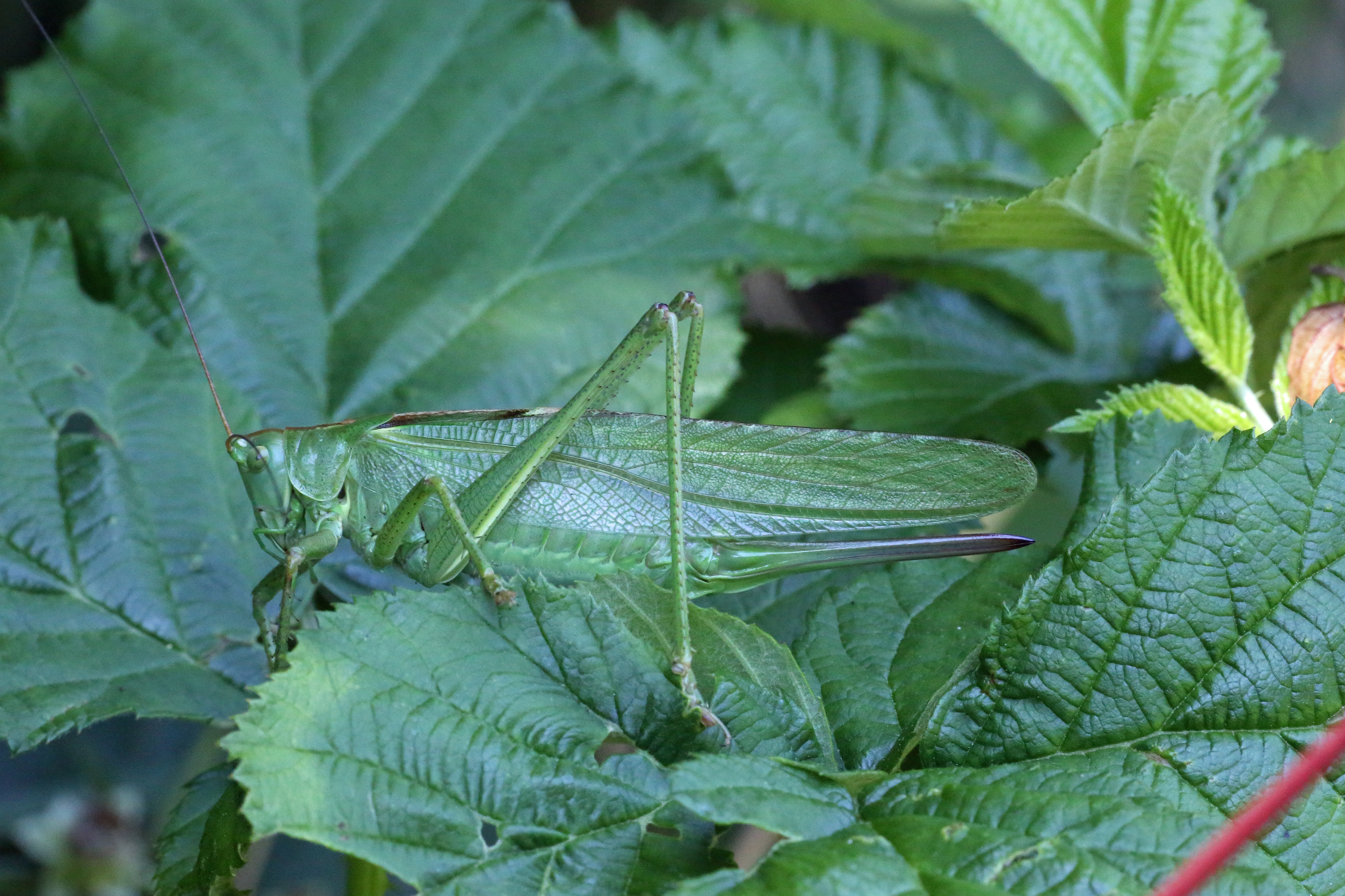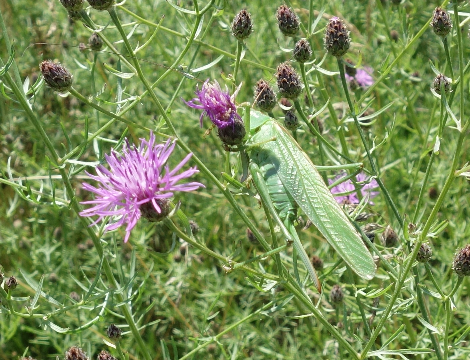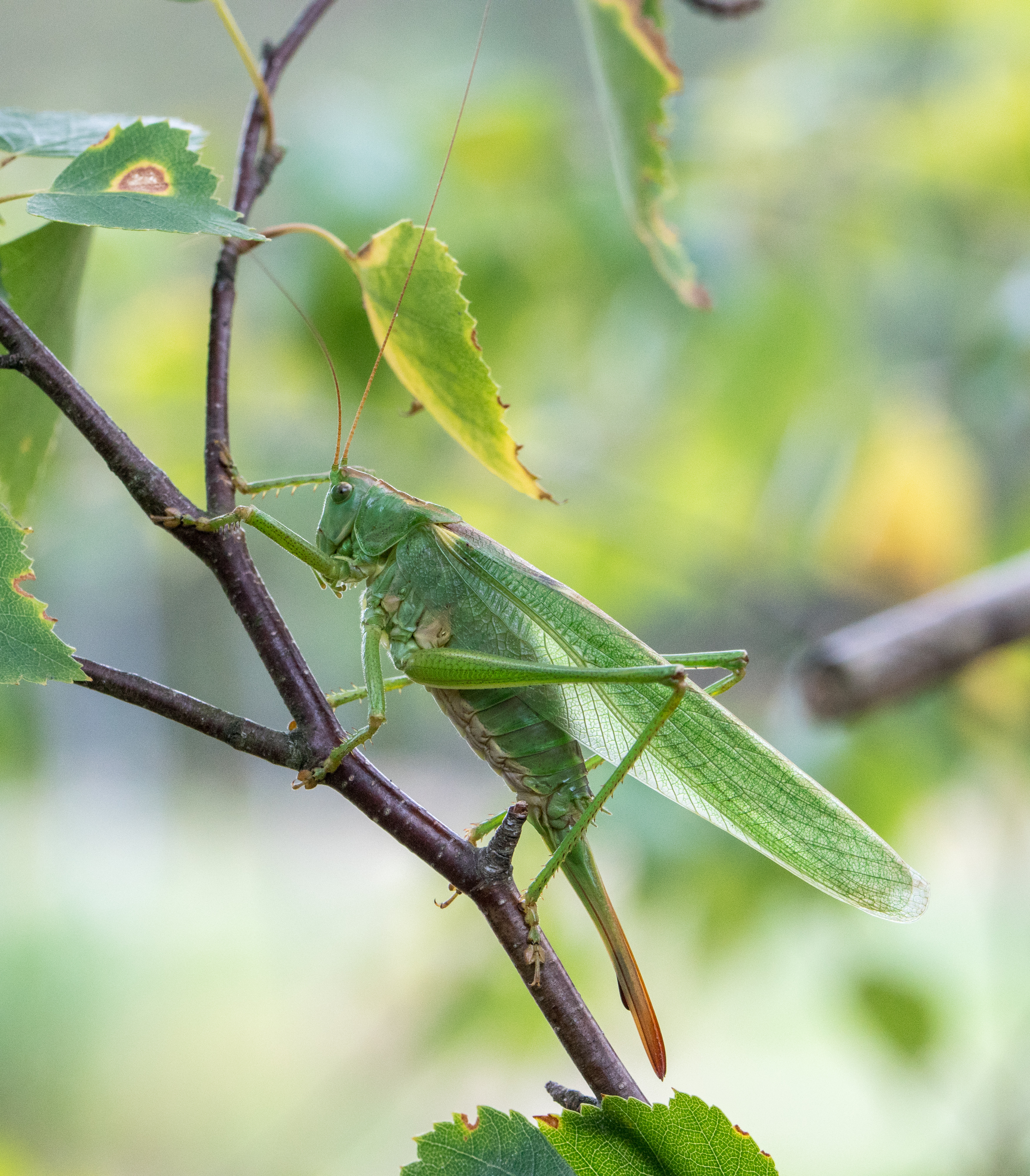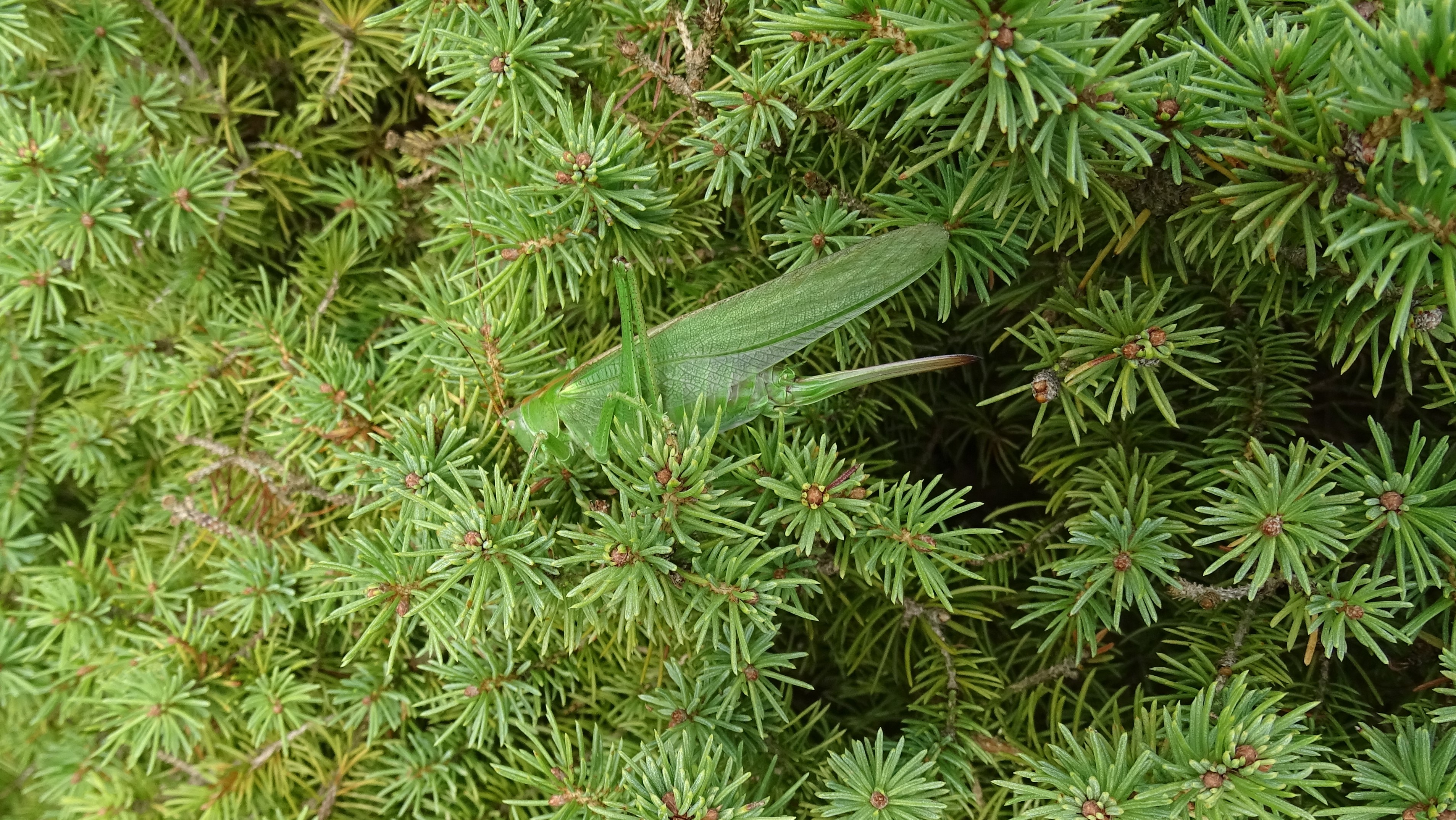 Grünes Heupferd (Tettigonia viridissima (Linnaeus, 1758)), Laue, Rekultivierungsbereich der Tagebaulandschaft Goitzsche östlich vom Seelhausener See, nahe Leipzig, 16. Juni 2019