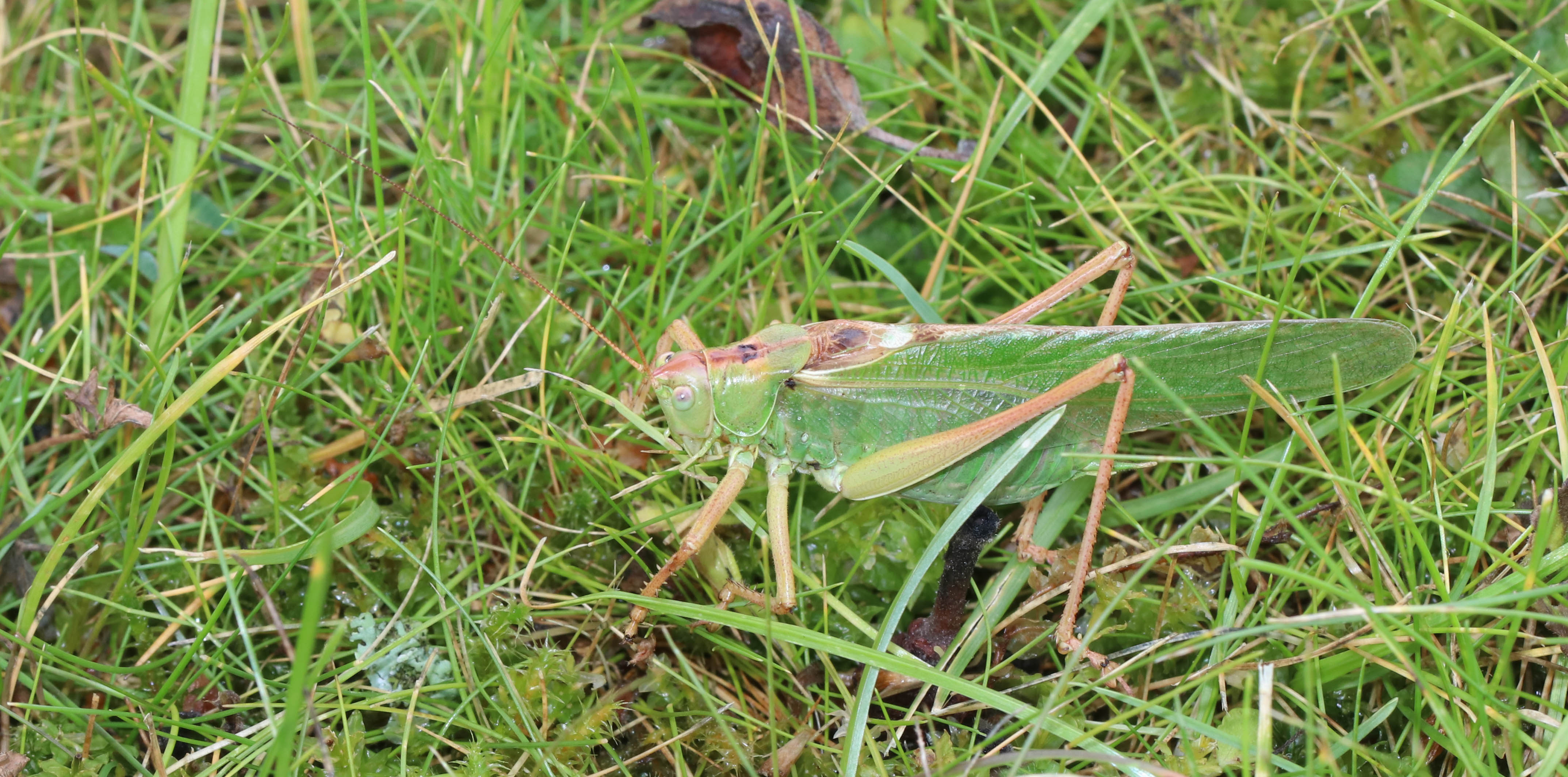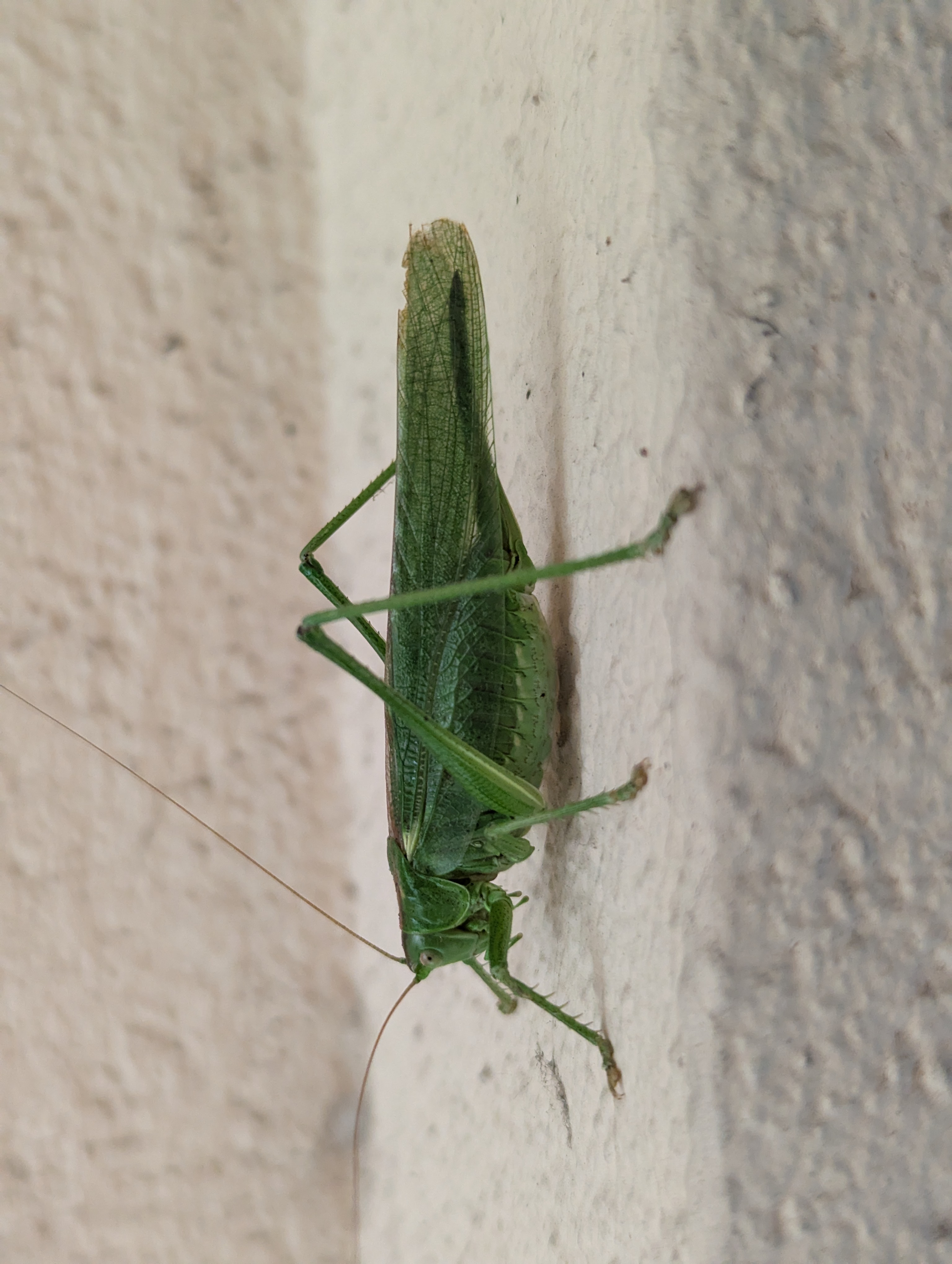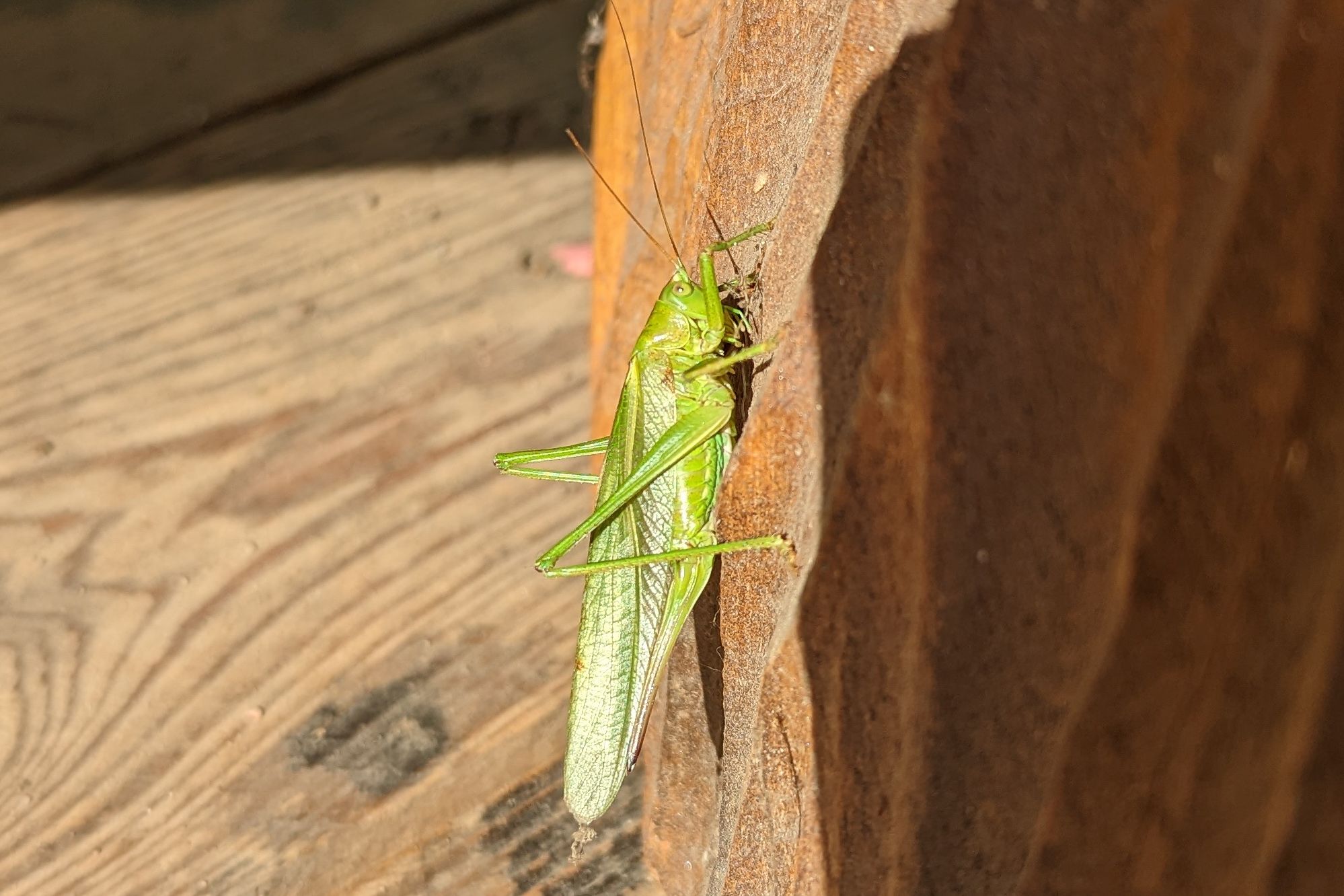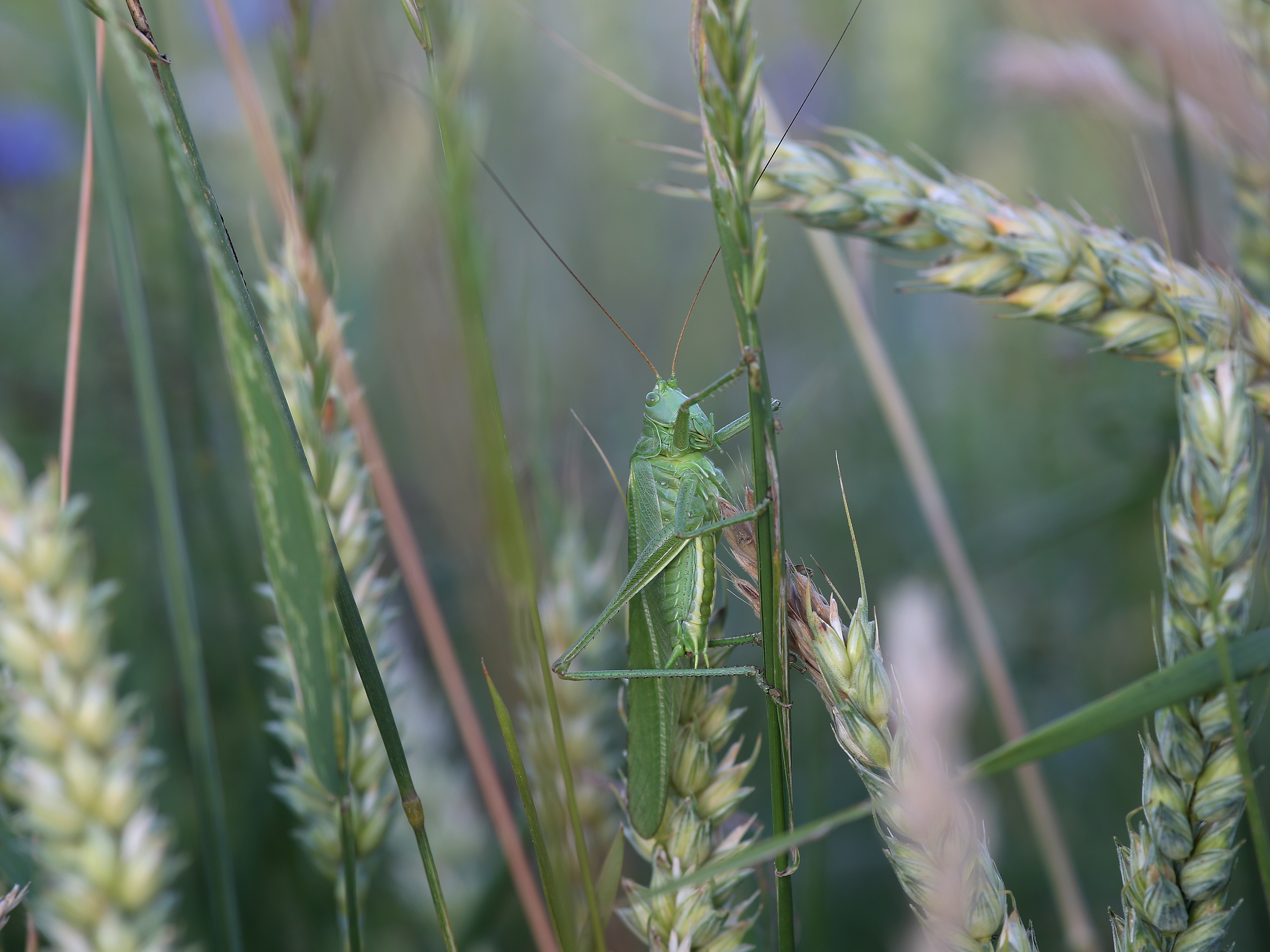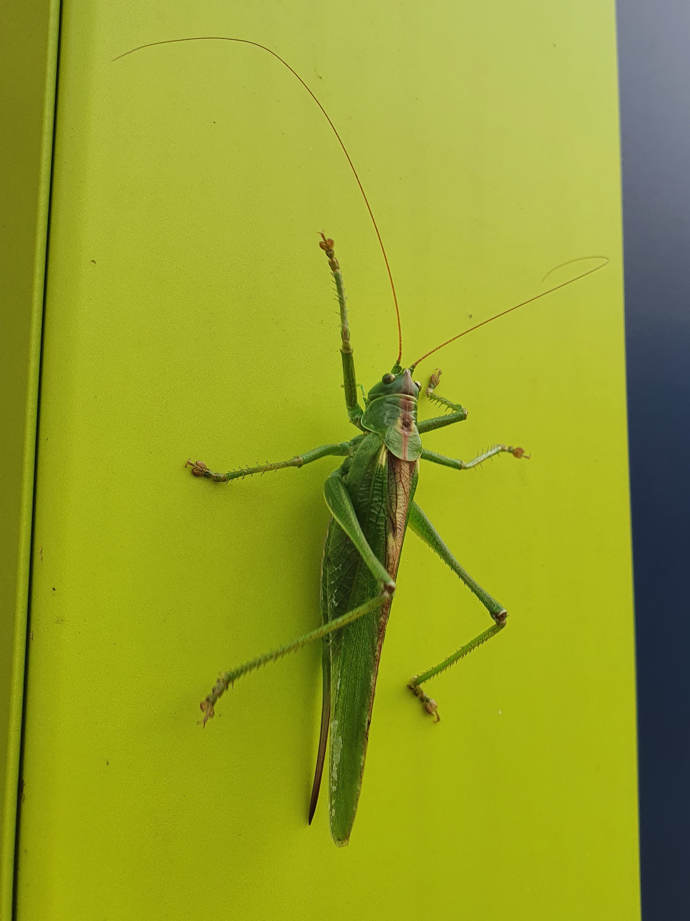 Grünes Heupferd (Tettigonia viridissima (Linnaeus, 1758)), Laue, Rekultivierungsbereich der Tagebaulandschaft Goitzsche östlich vom Seelhausener See, nahe Leipzig, 16. Juni 2019