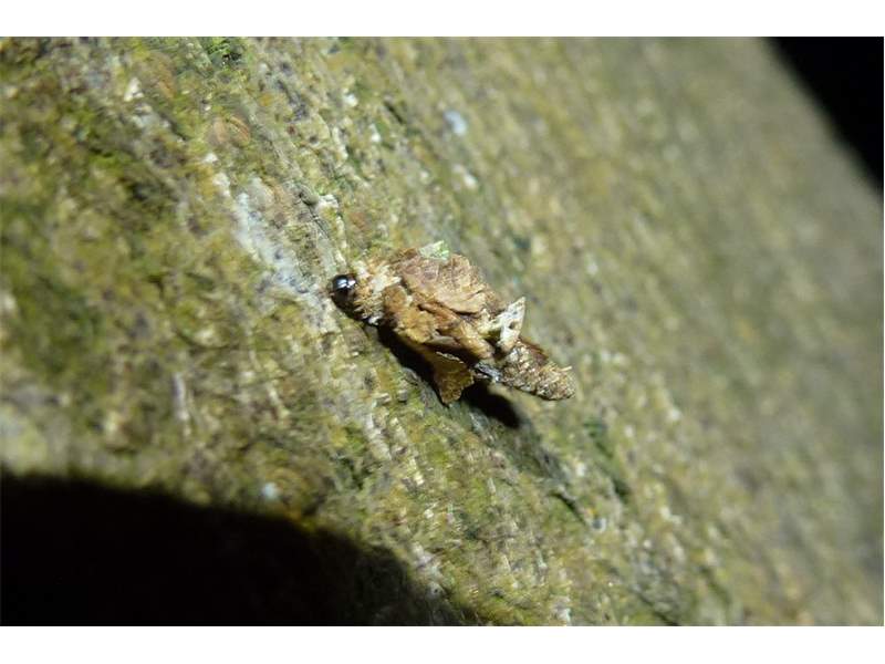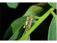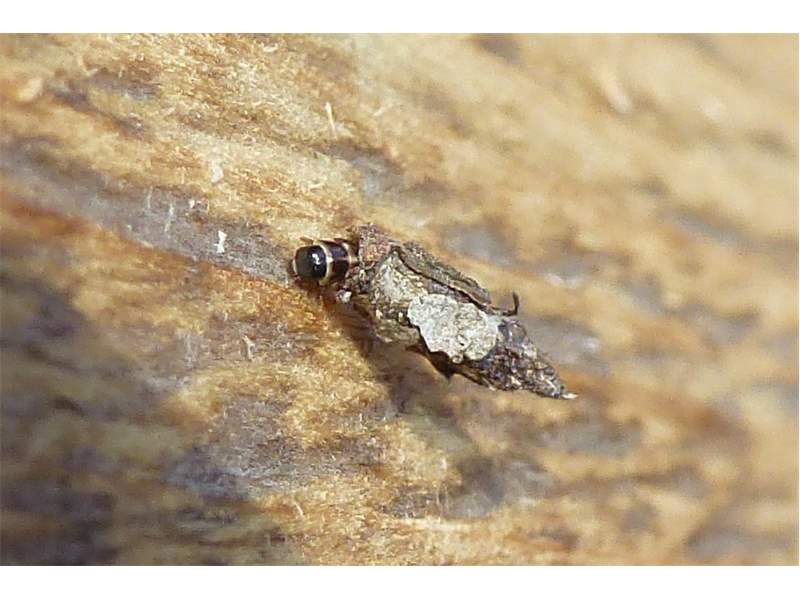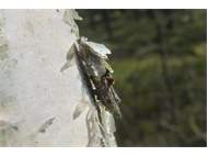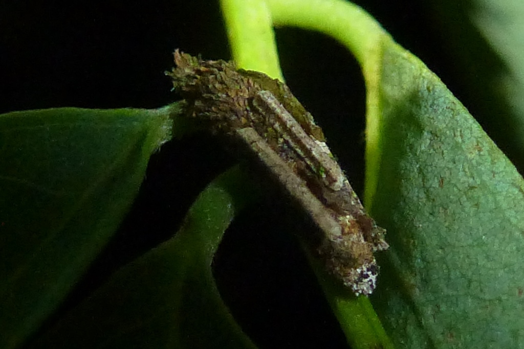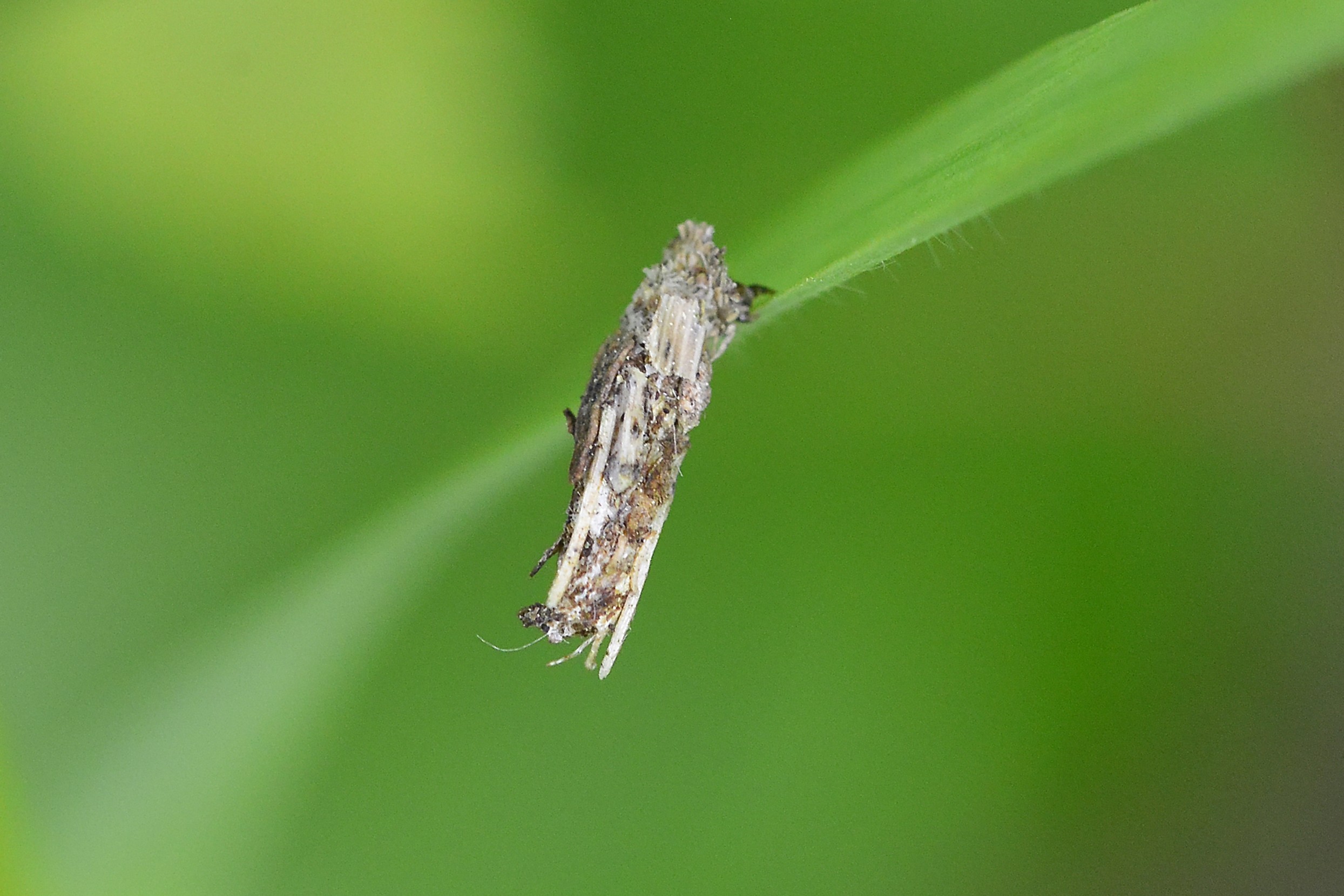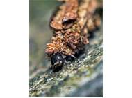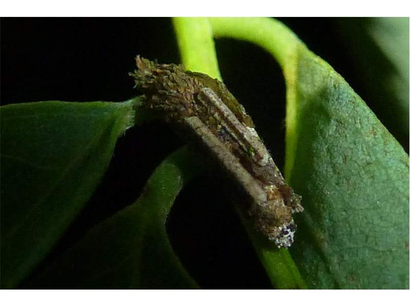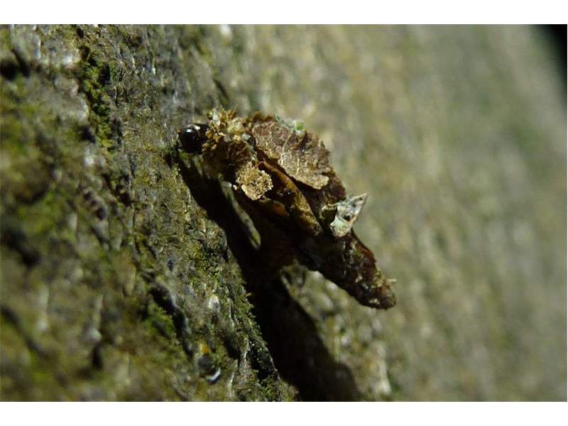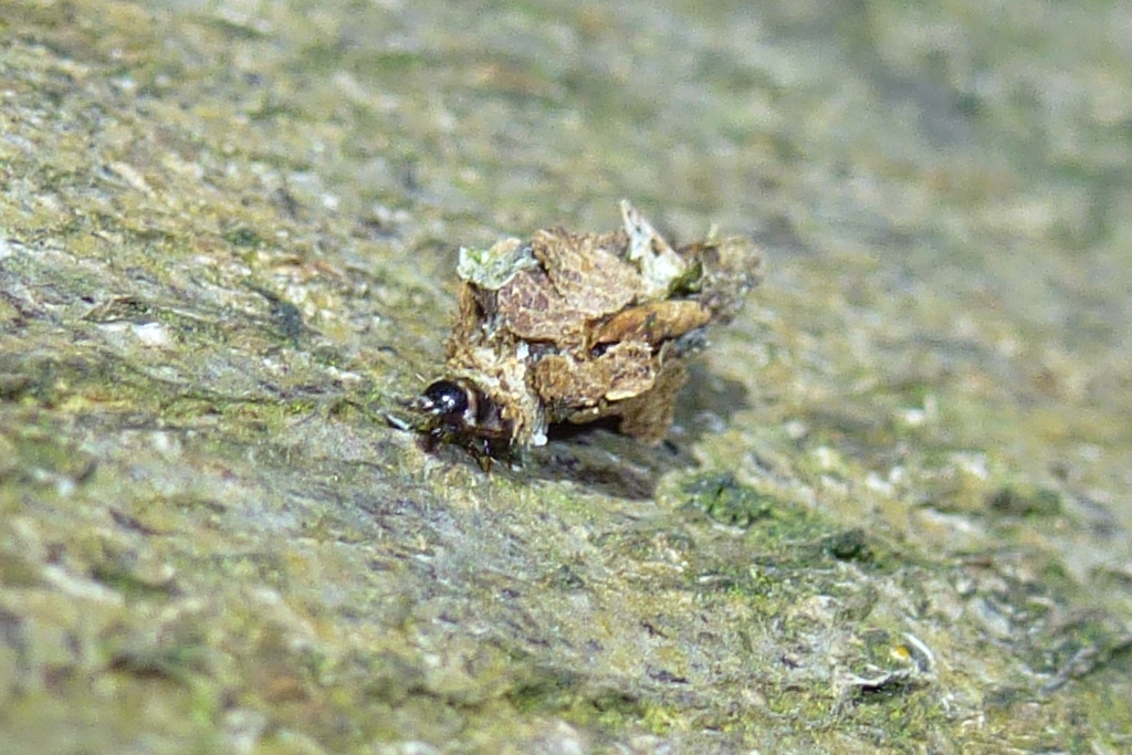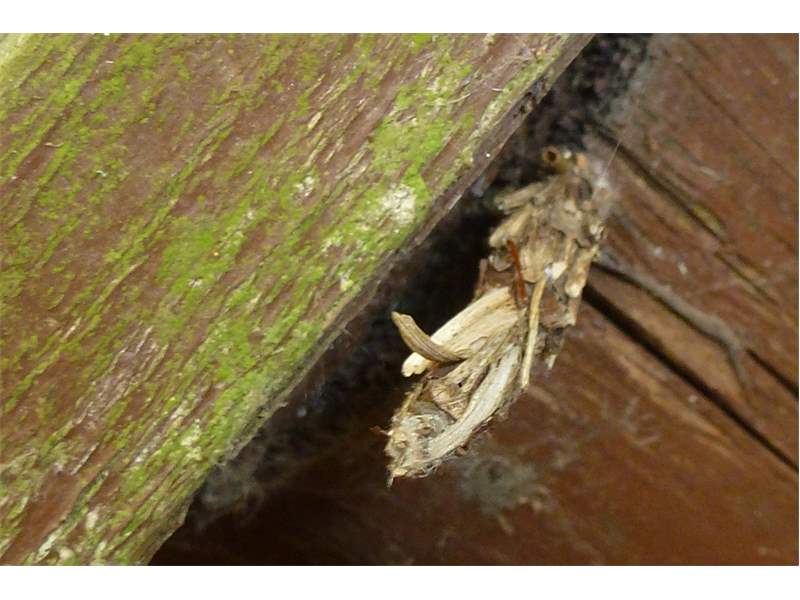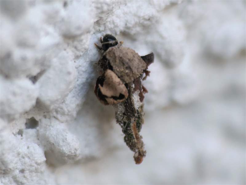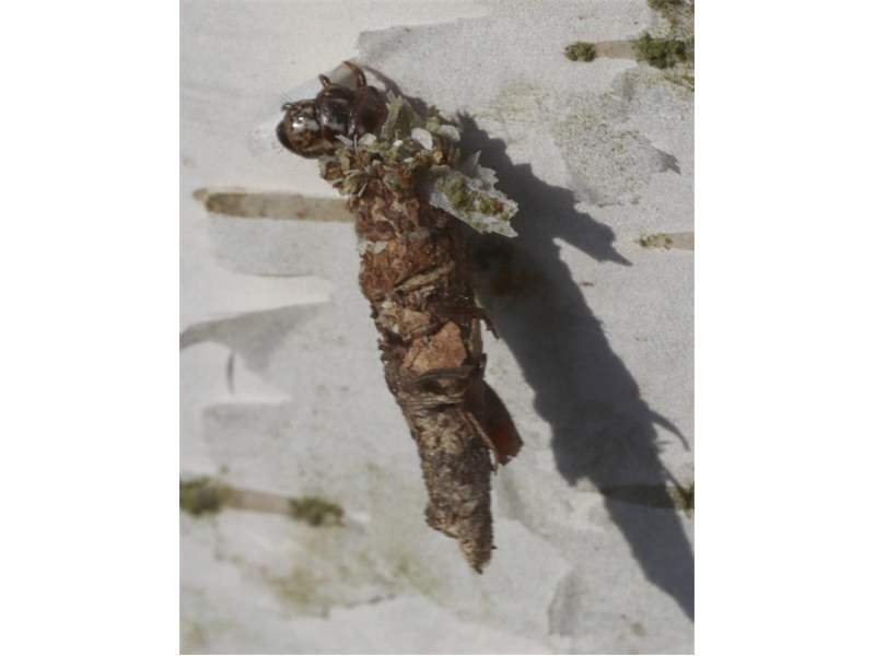 Flügelloses Weibchen des Birken-Sackträgers bei der Eiablage. Hoyerswerda im Juni 2015