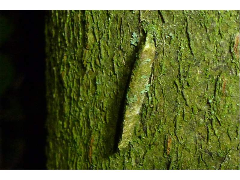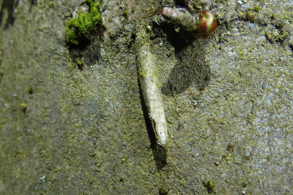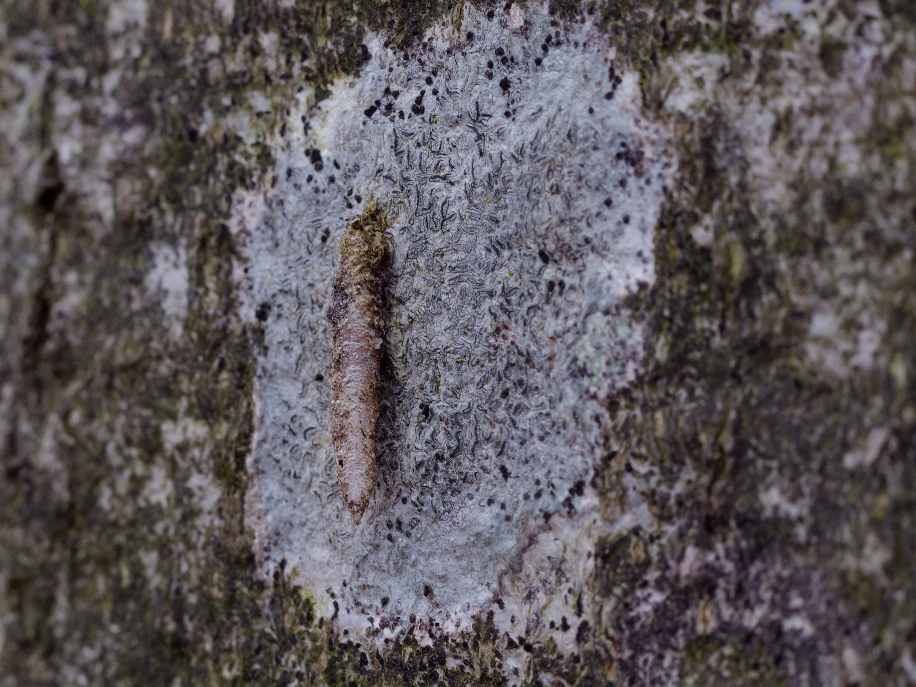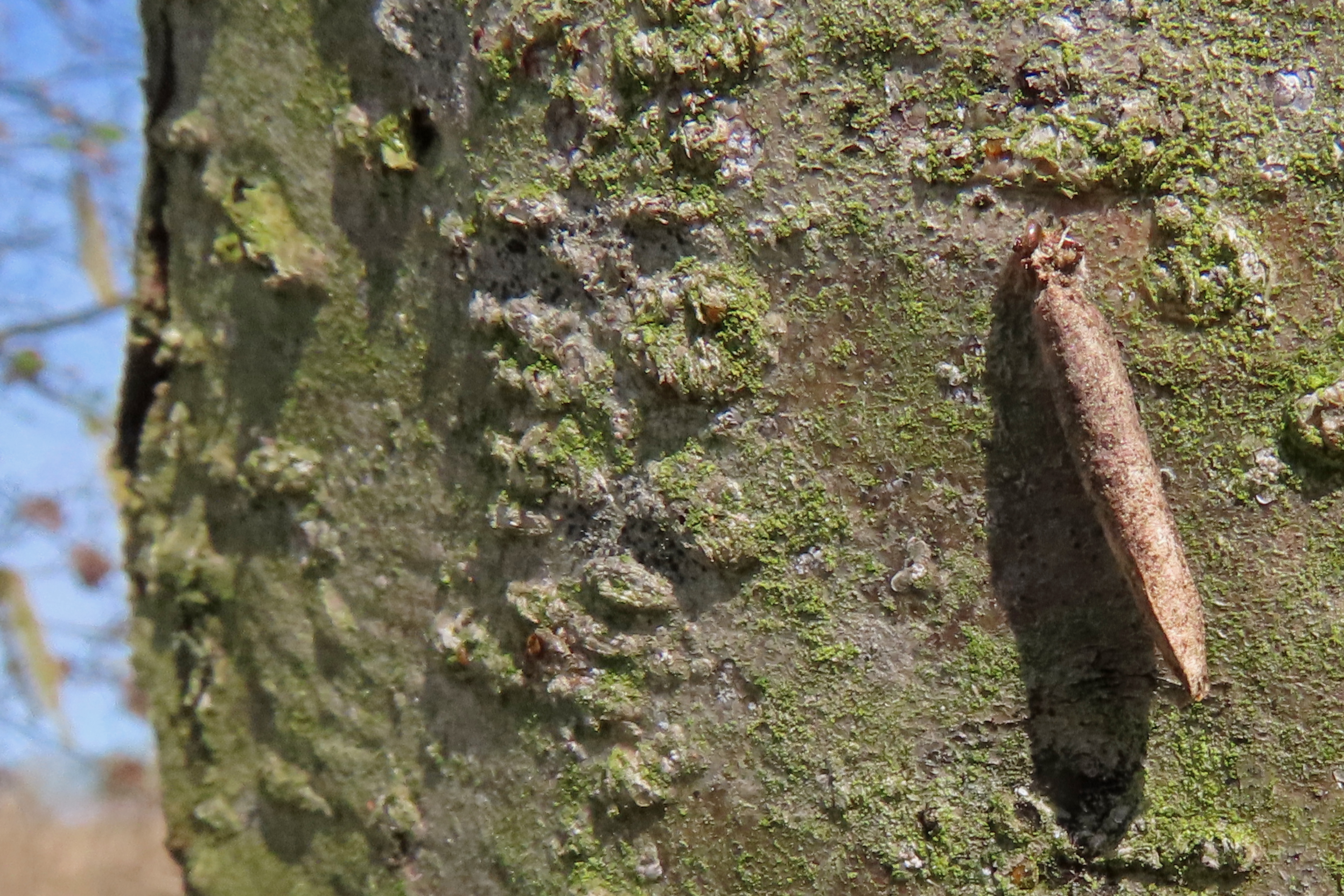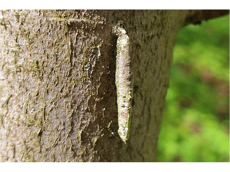 Raupensack, Laubwald bei Hermannshagen-Heide - hier häufig an Stämmen der Rotbuche zu finden, (Landkreis Vorpommern-Rügen), 23.02.2021 (© Martin Feike)( Bild vergrößern)