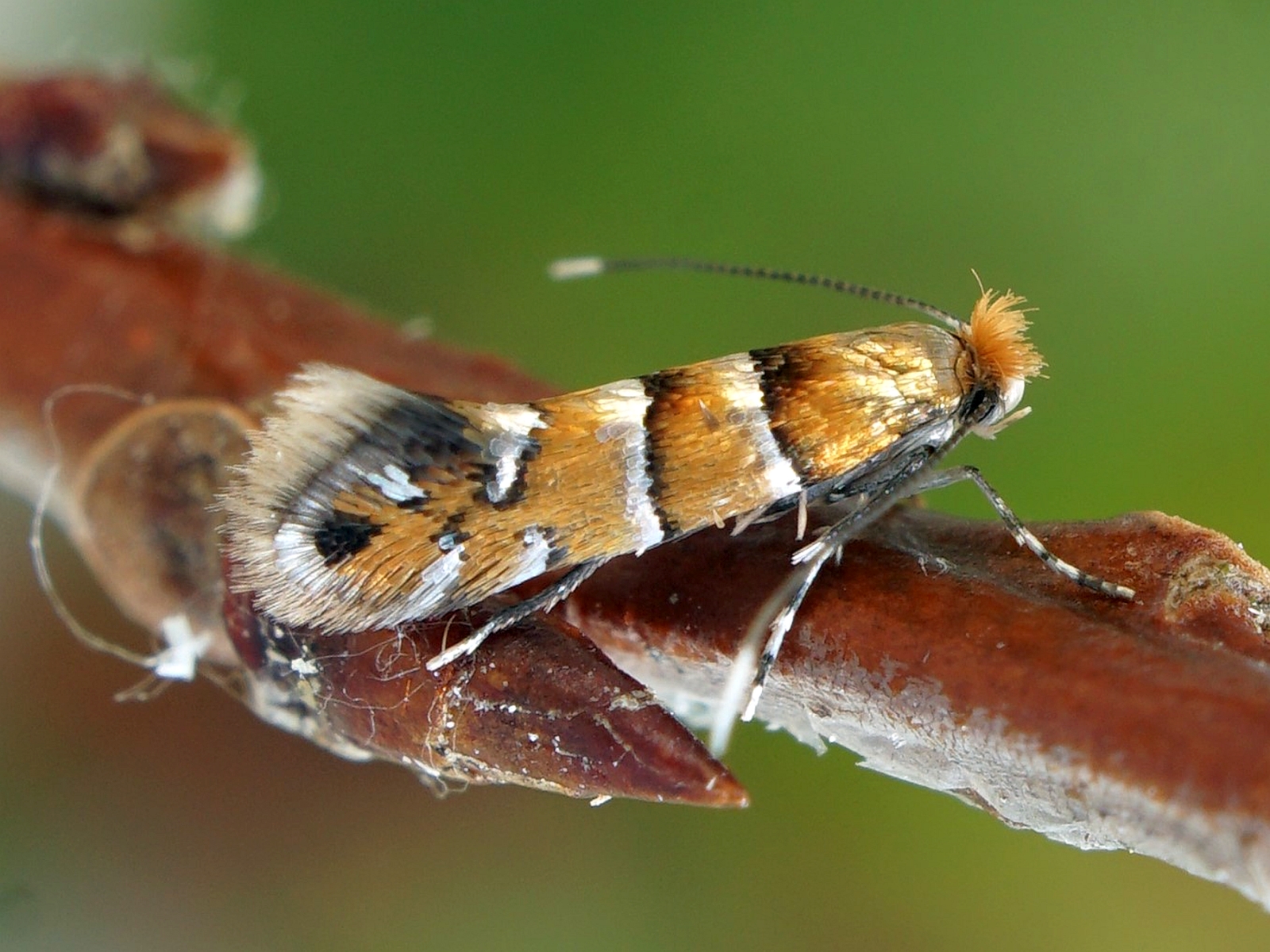 Im Jahresverlauf treten zwei Generationen auf. Die Larven leben in einer Faltenmine an der Blattunterseite von Schwarz-Erle (Alnus glutinosa)