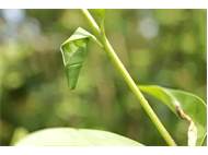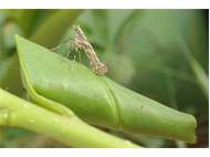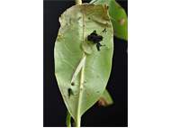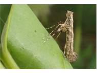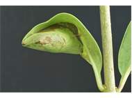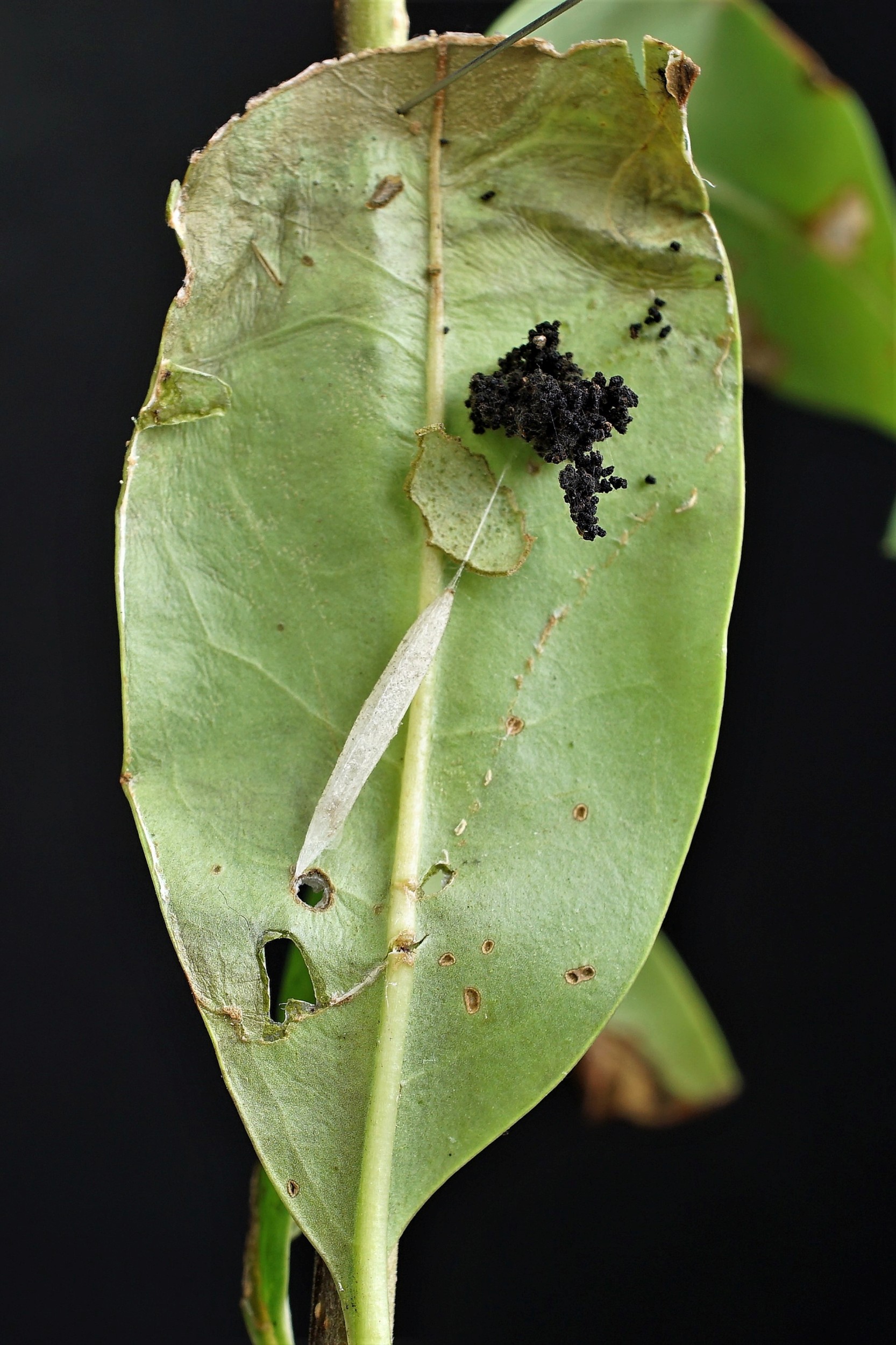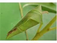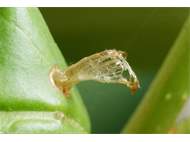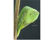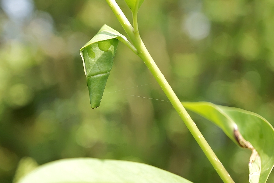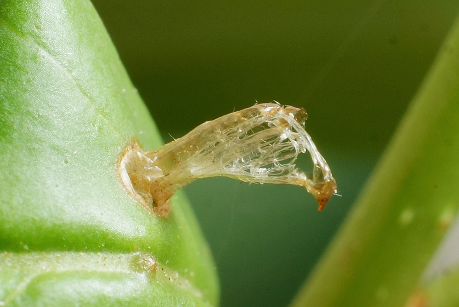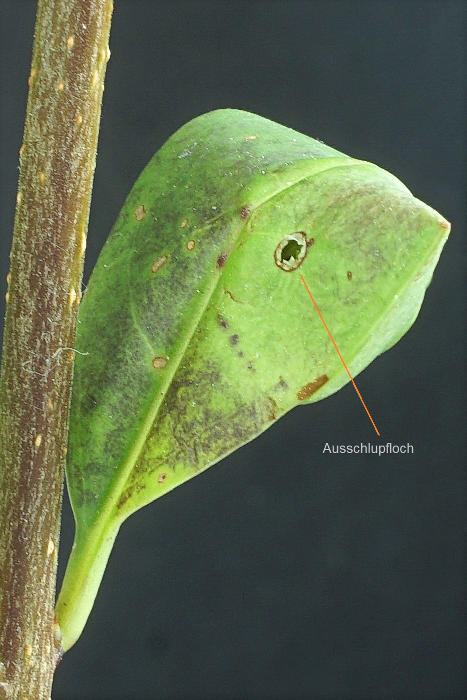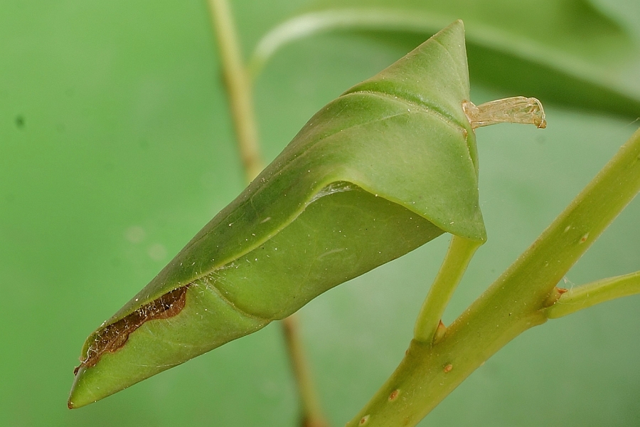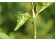 aufgerollte Blattüte von Liguster mit Puppenkokon