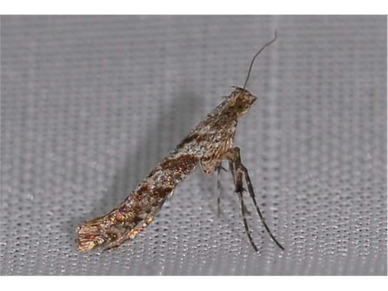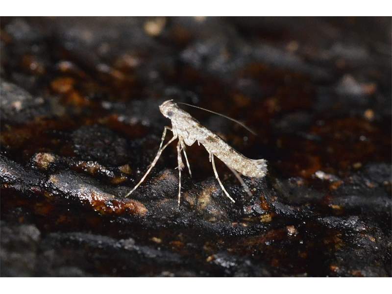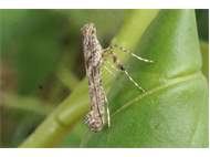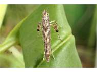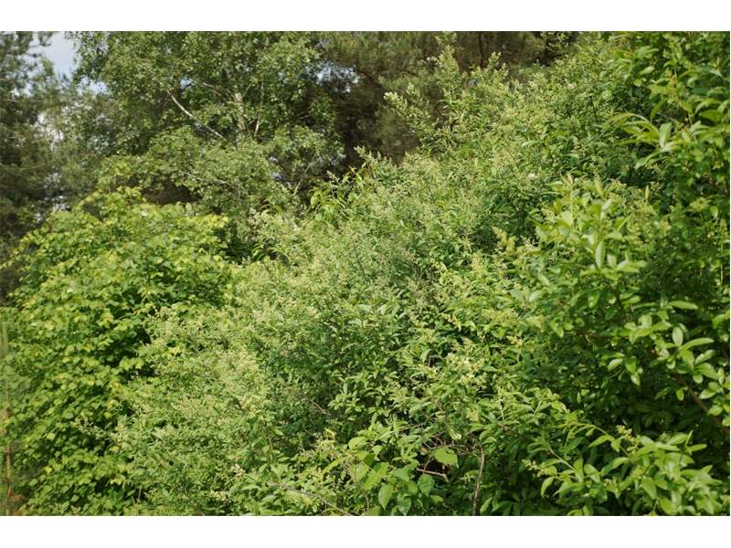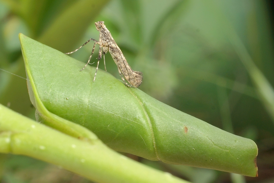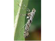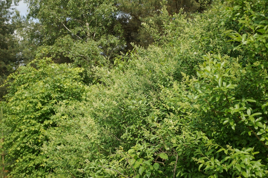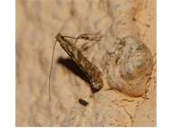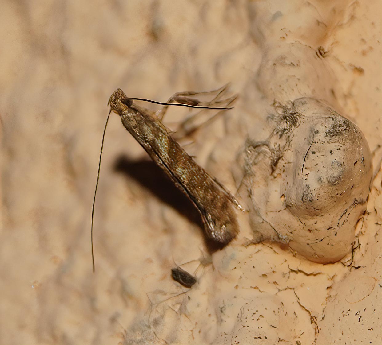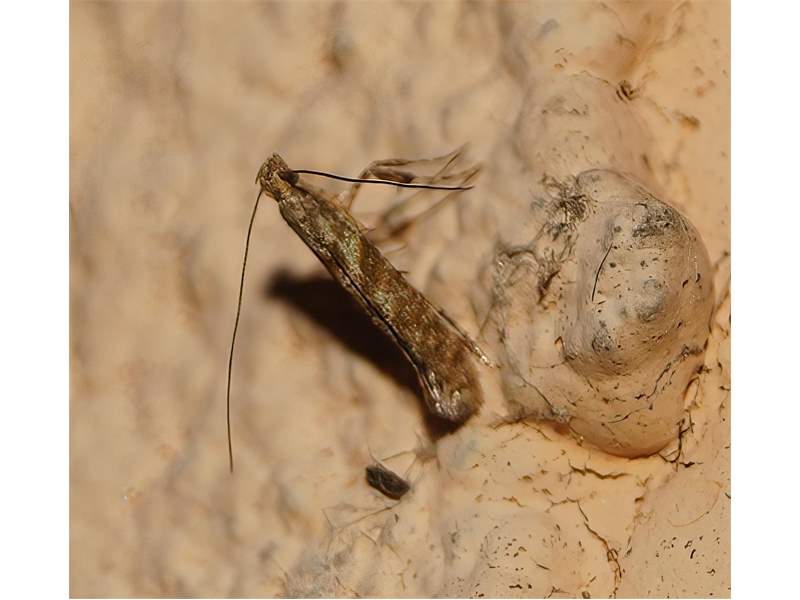 aufgerollte Blattüte von Liguster mit Puppenkokon