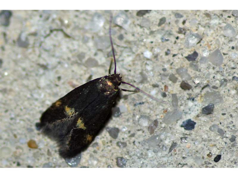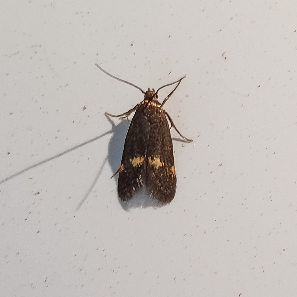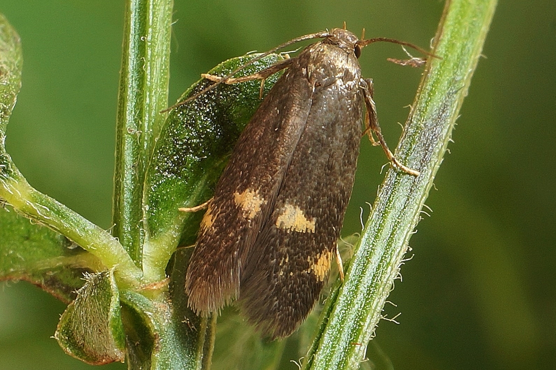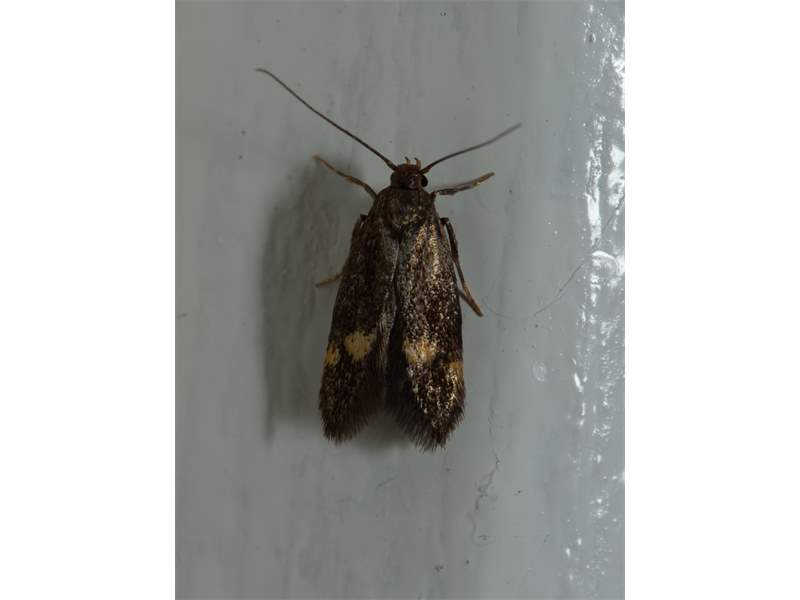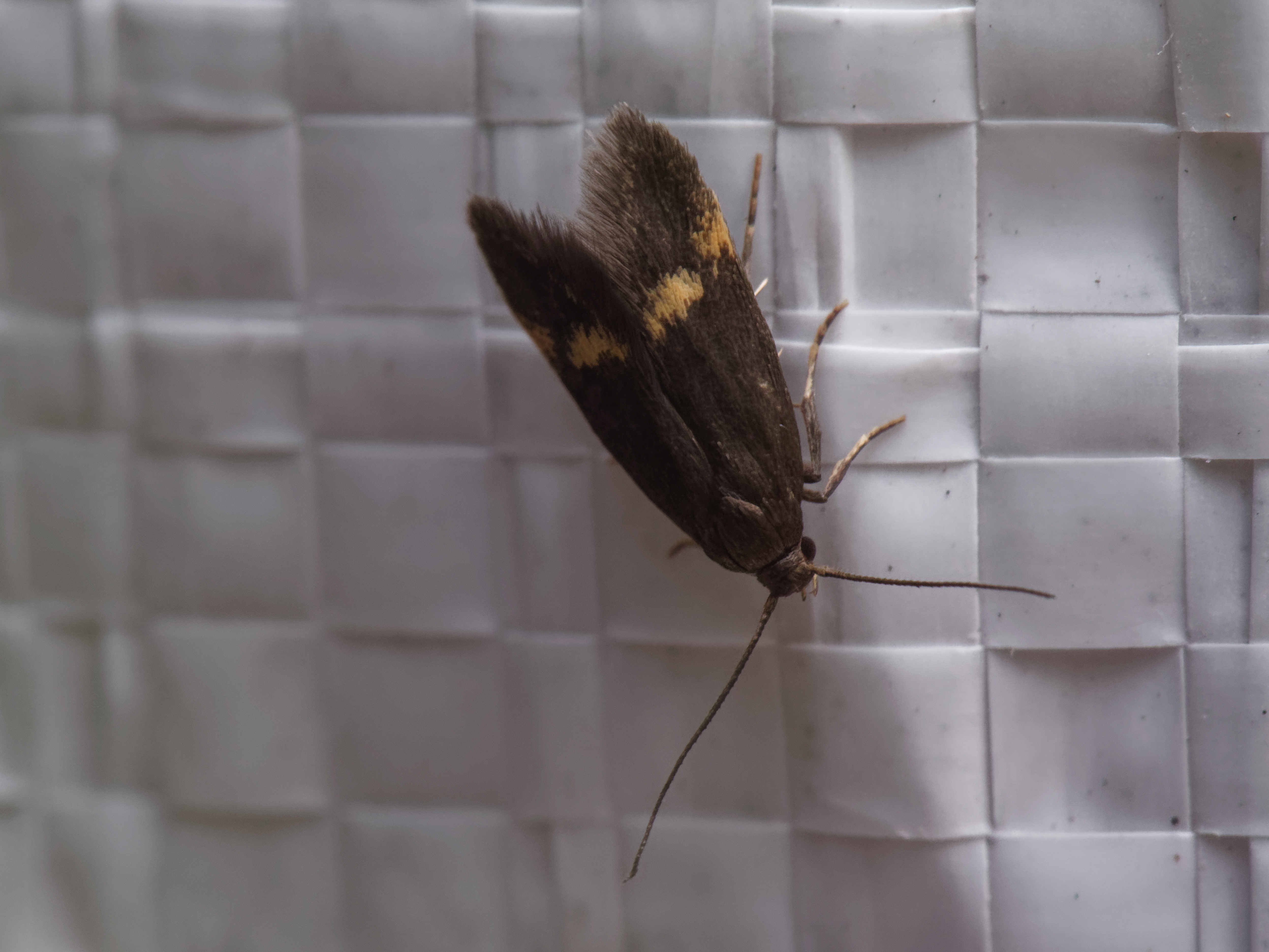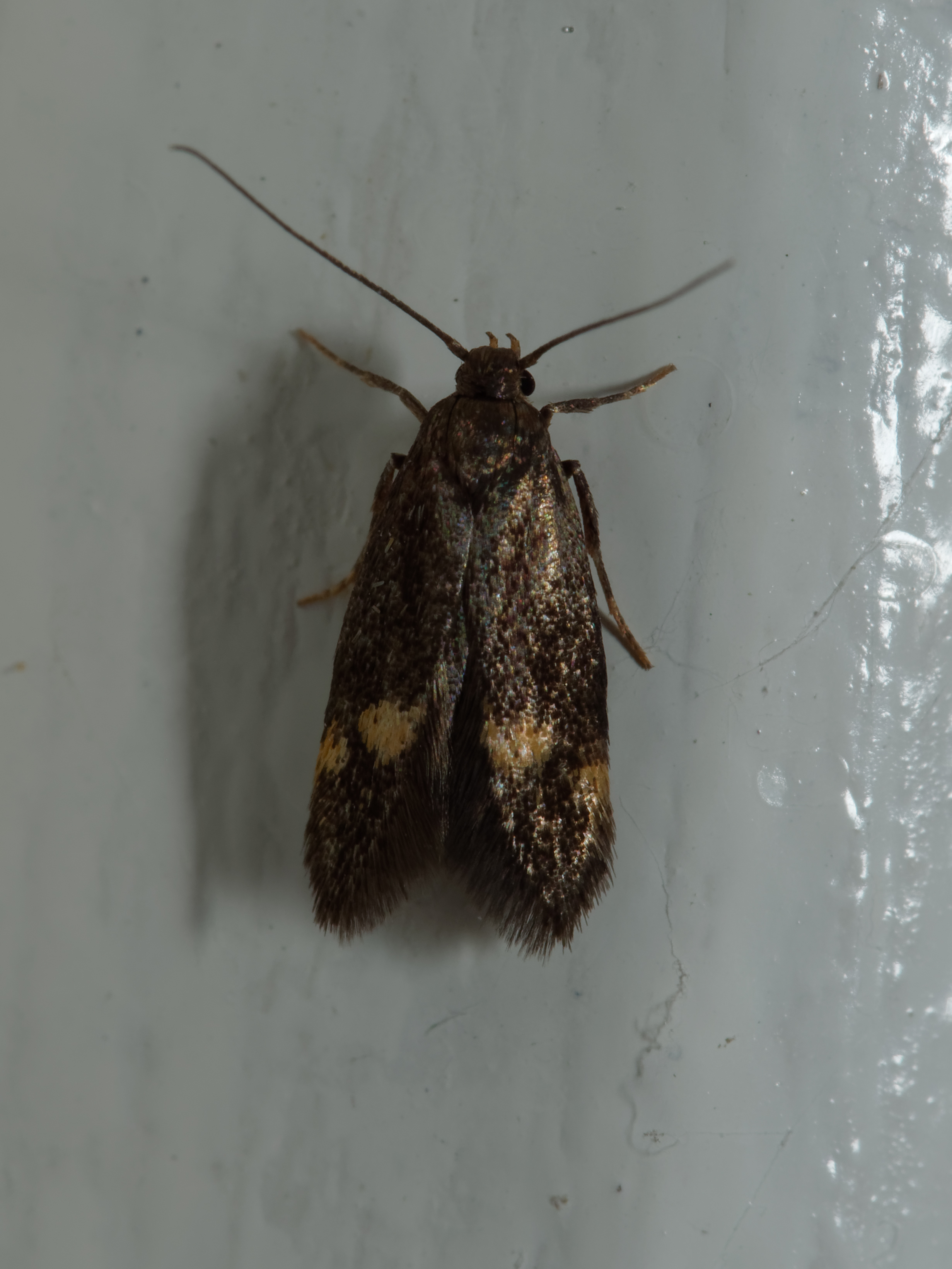 Borkhausenia minutella (Linnaeus, 1758), Gartengrundstück bei Bad Düben, am Rande der Dübener Heide, bei Licht an der Wand, am 08.06.2010
