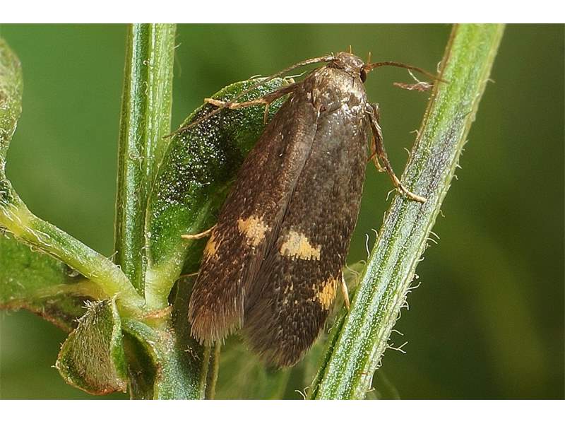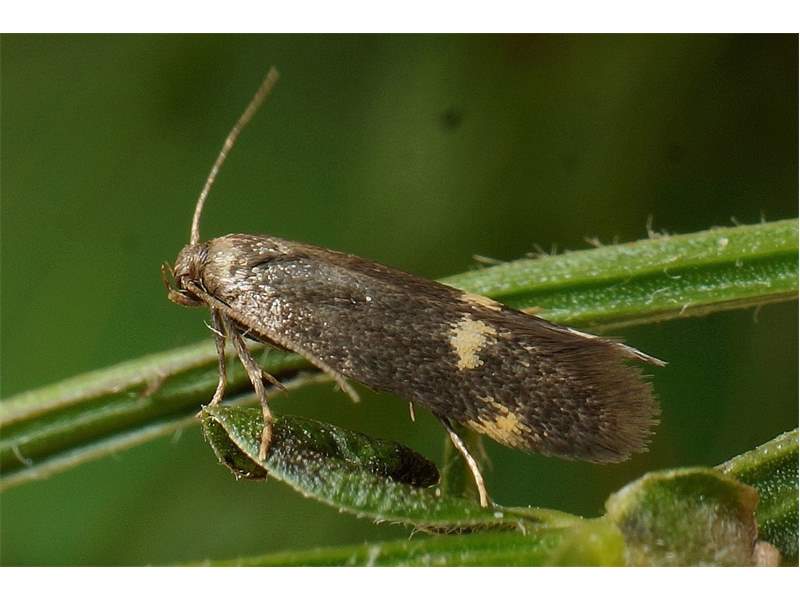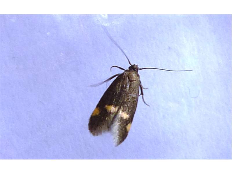 Borkhausenia minutella (Linnaeus, 1758), Gartengrundstück bei Bad Düben, am Rande der Dübener Heide, bei Licht an der Wand, am 08.06.2010 (© R. Papenfuß)( Bild vergrößern)
