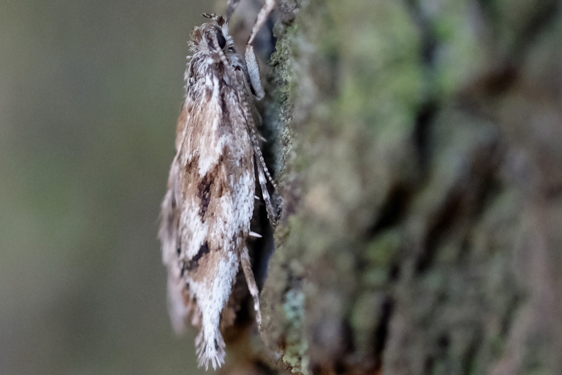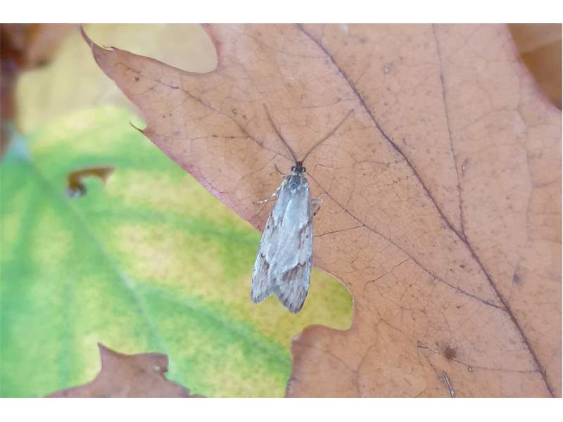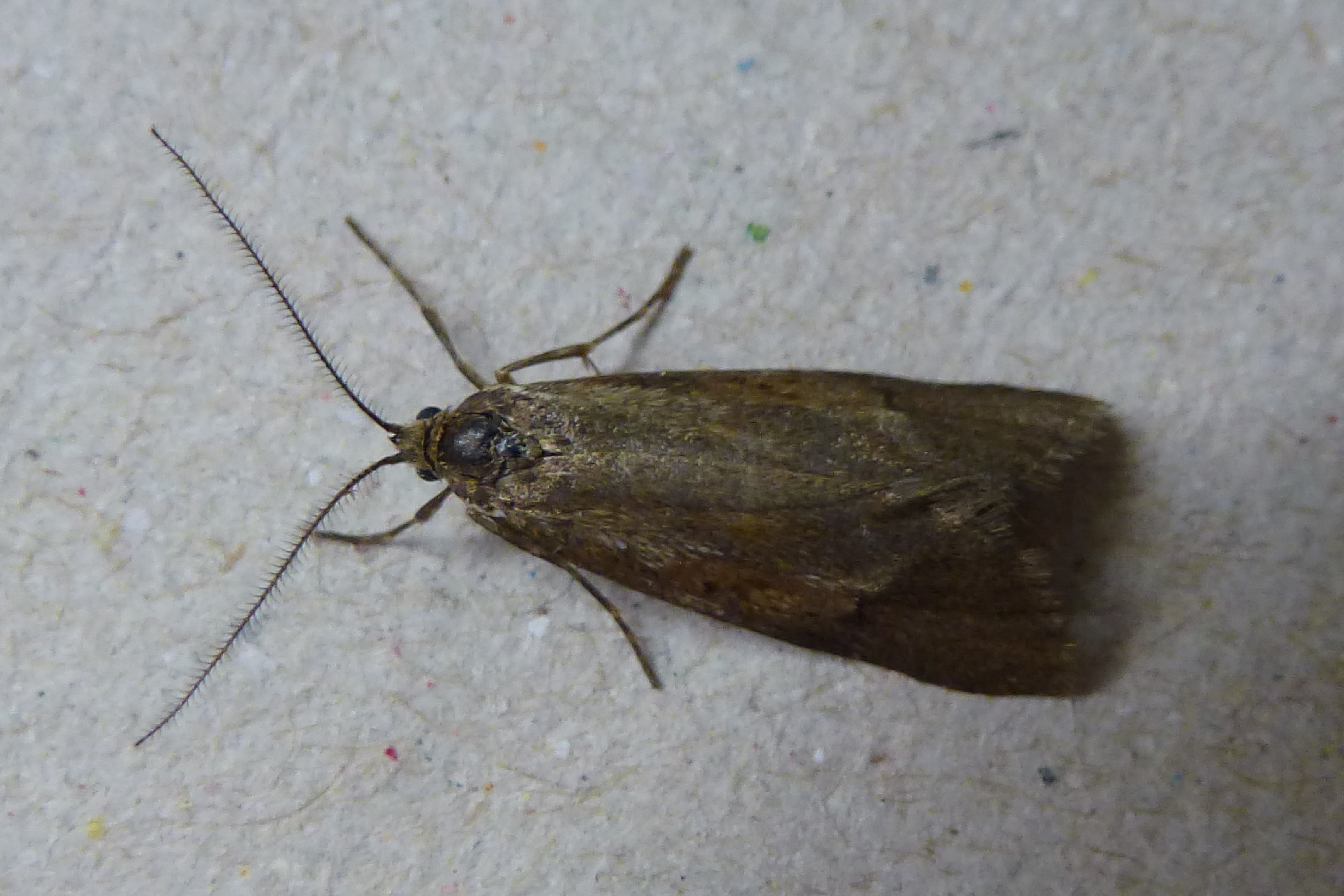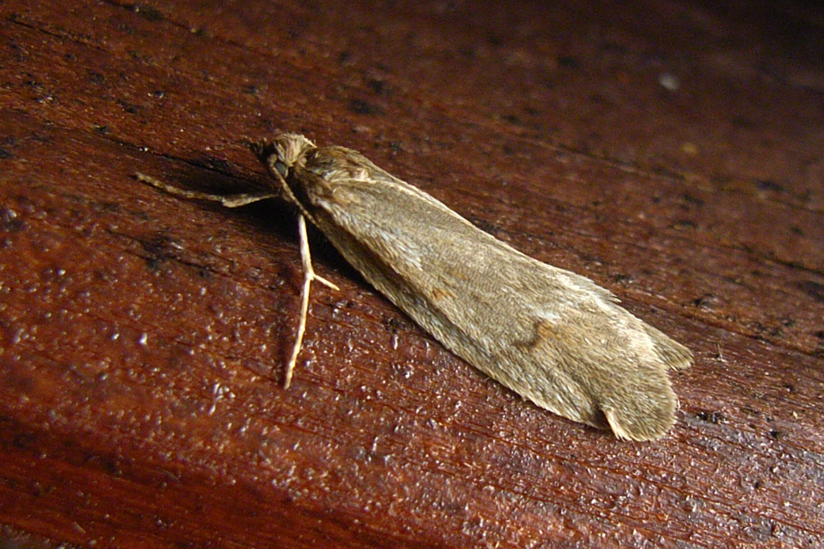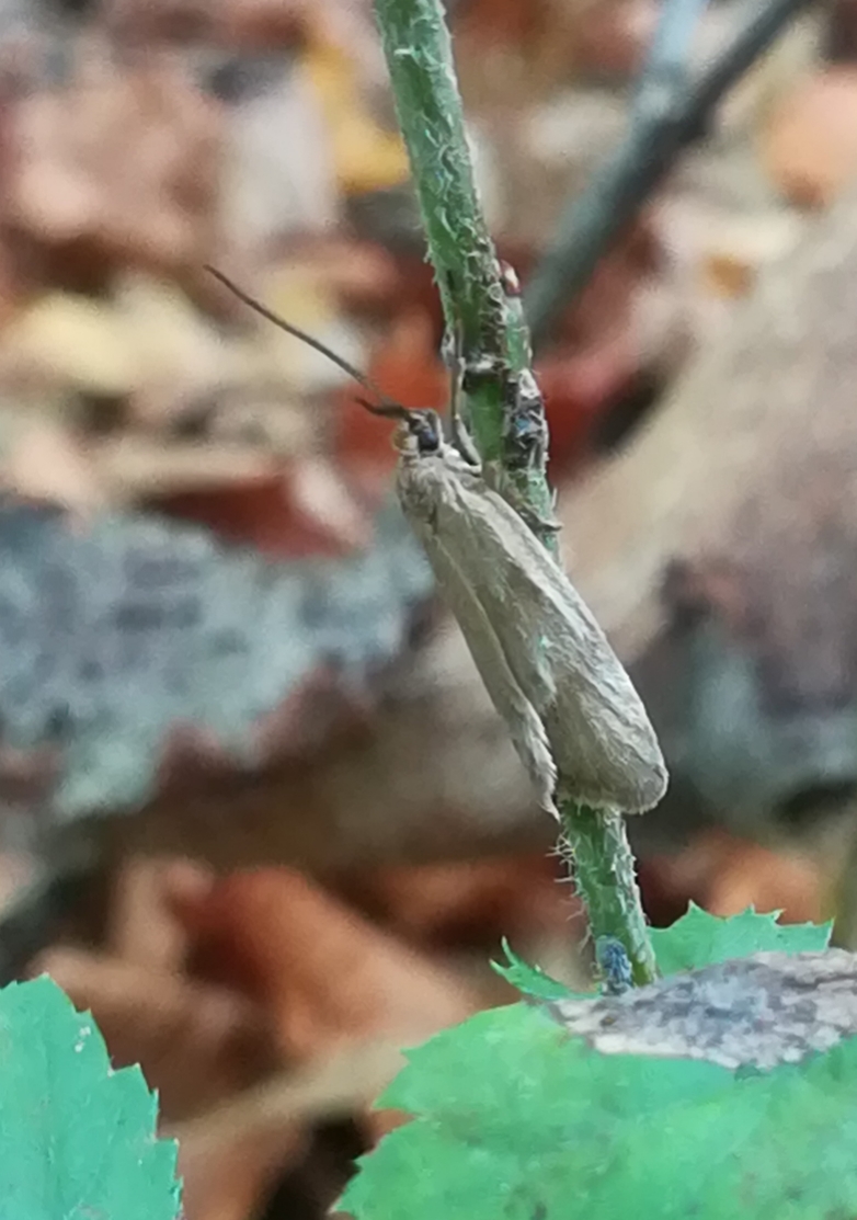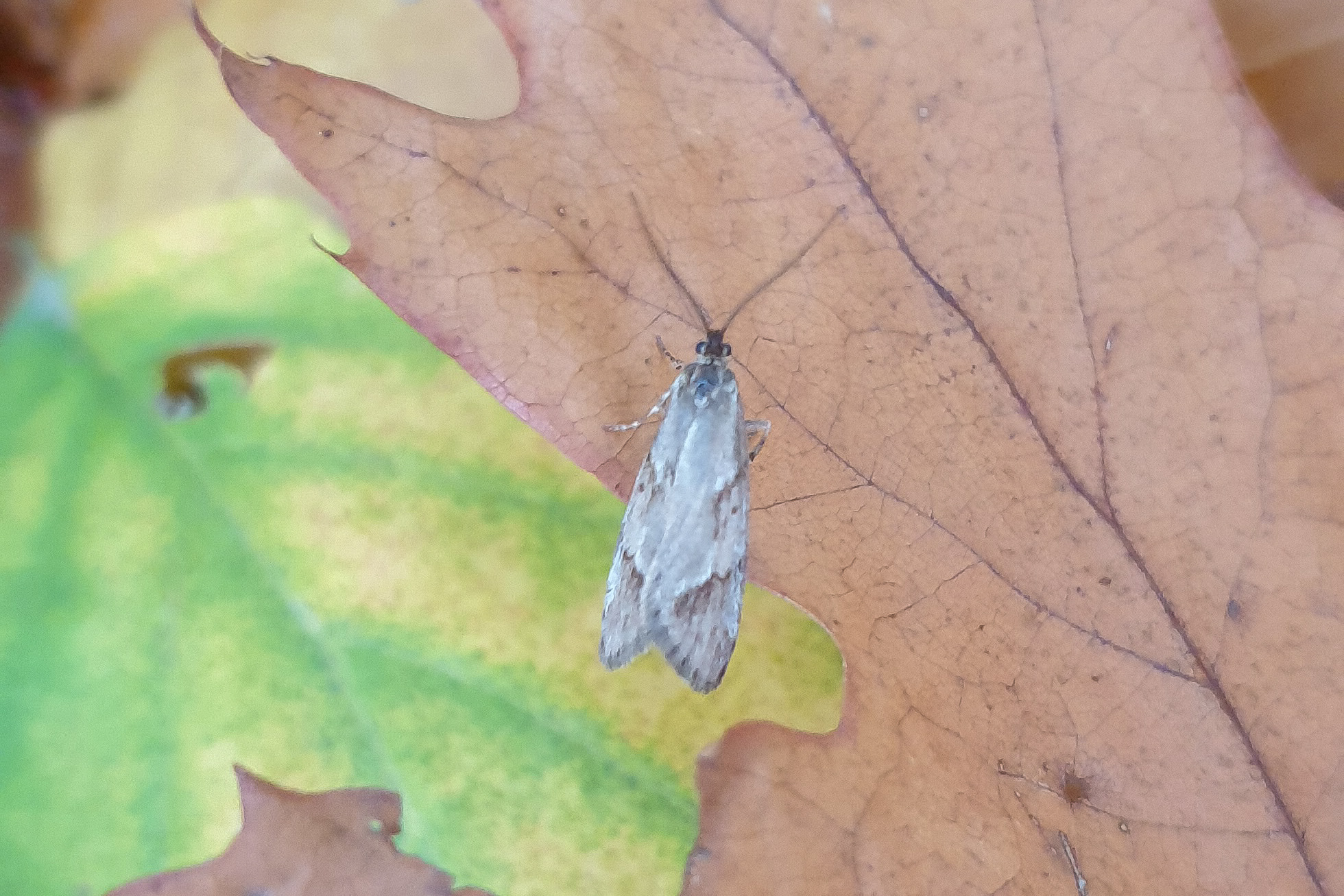 Herbstbuchenmotte (Diurnea lipsiella (Denis & Schiffermüller, 1775)), Chemnitz Zeisigwald-Planitzwiese, Nachts am angestrahlten Gebäude, 30.10.2018, Laboraufnahme
