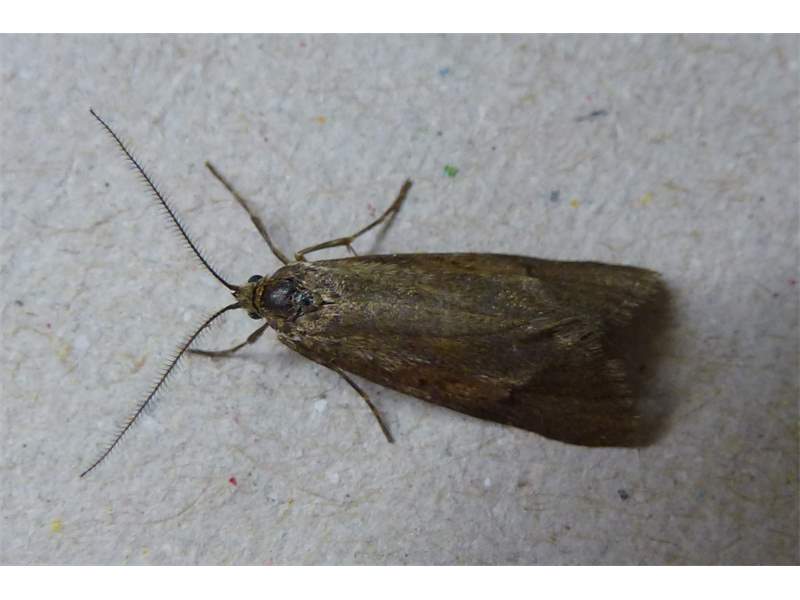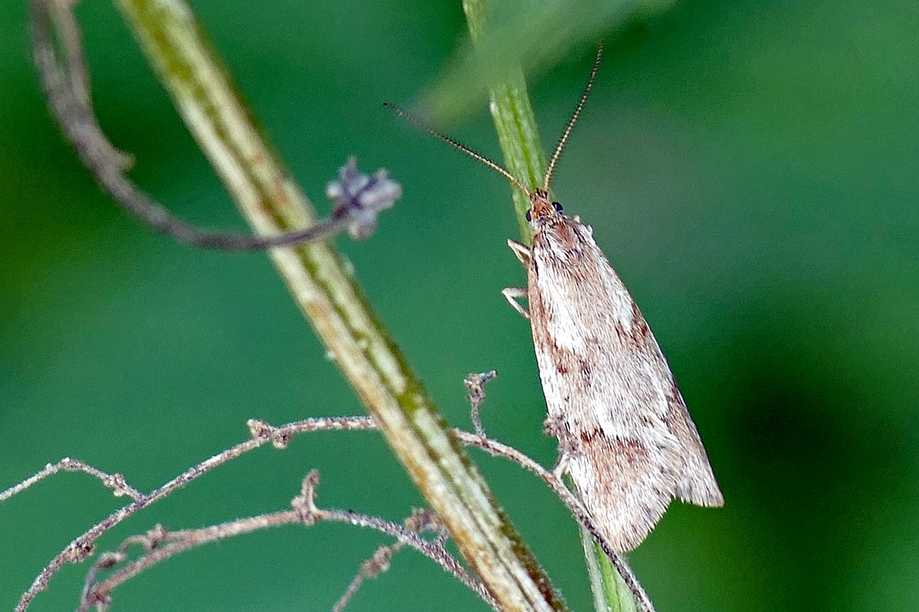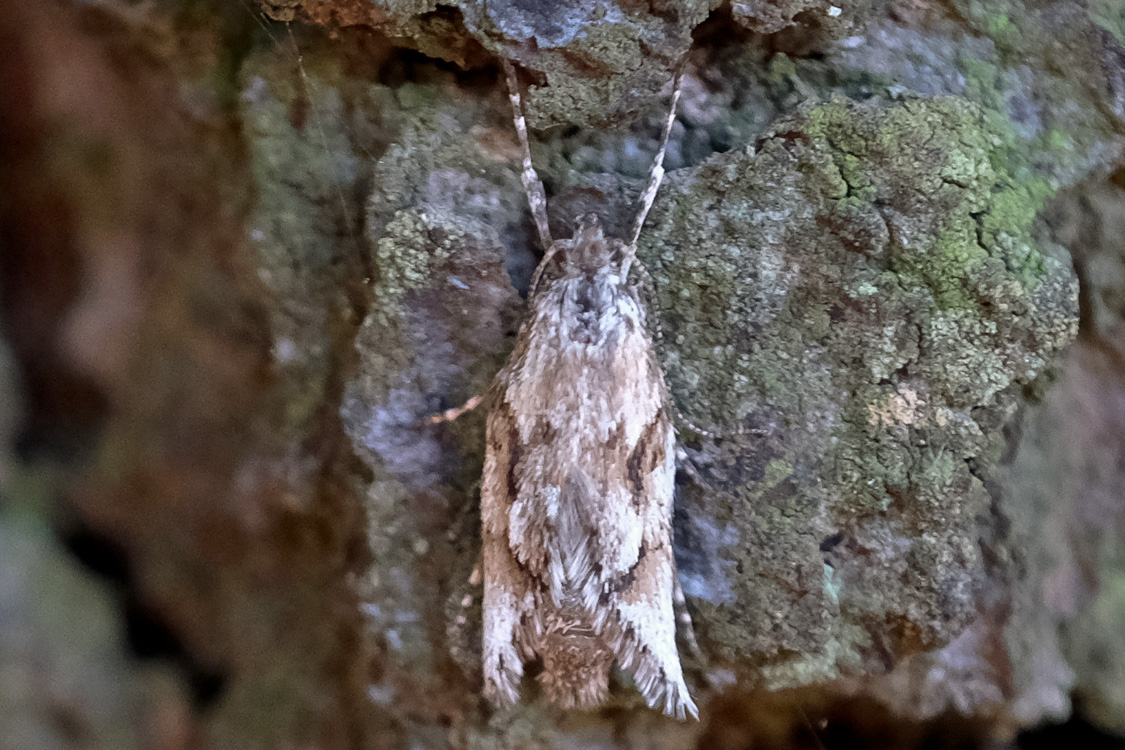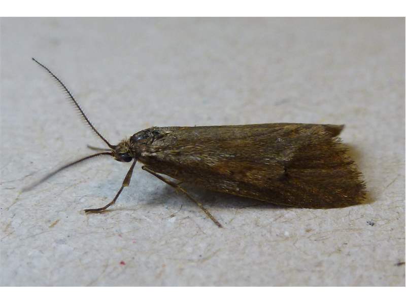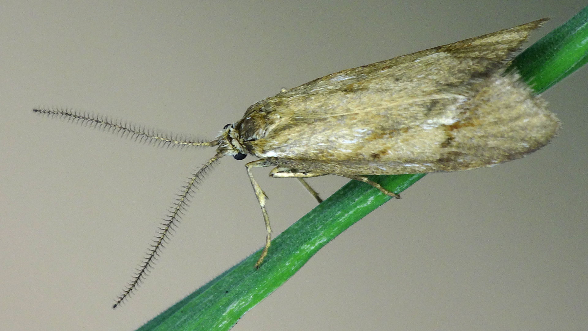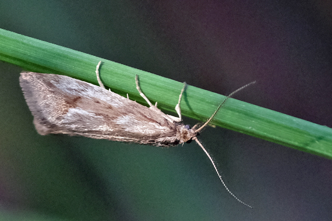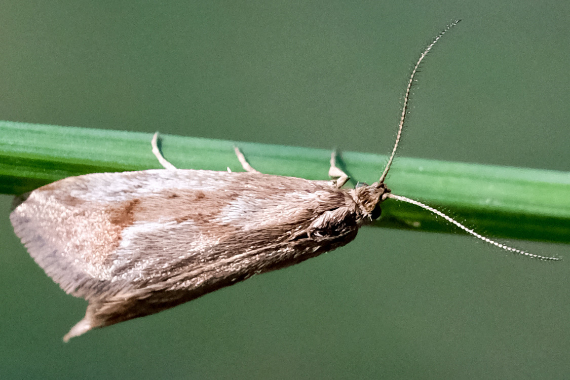 Herbstbuchenmotte (Diurnea lipsiella (Denis & Schiffermüller, 1775)), Chemnitz Zeisigwald-Planitzwiese, Nachts am angestrahlten Gebäude, 30.10.2018, Laboraufnahme
